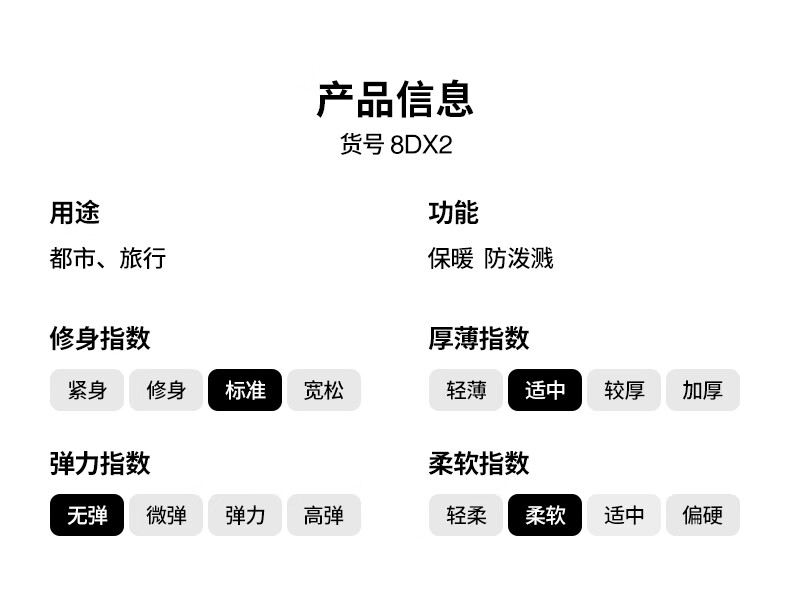 China (cm) 165 / 88-90 170 / 96-98 175 / 108-110 180 / 118-122 185 / 126-130