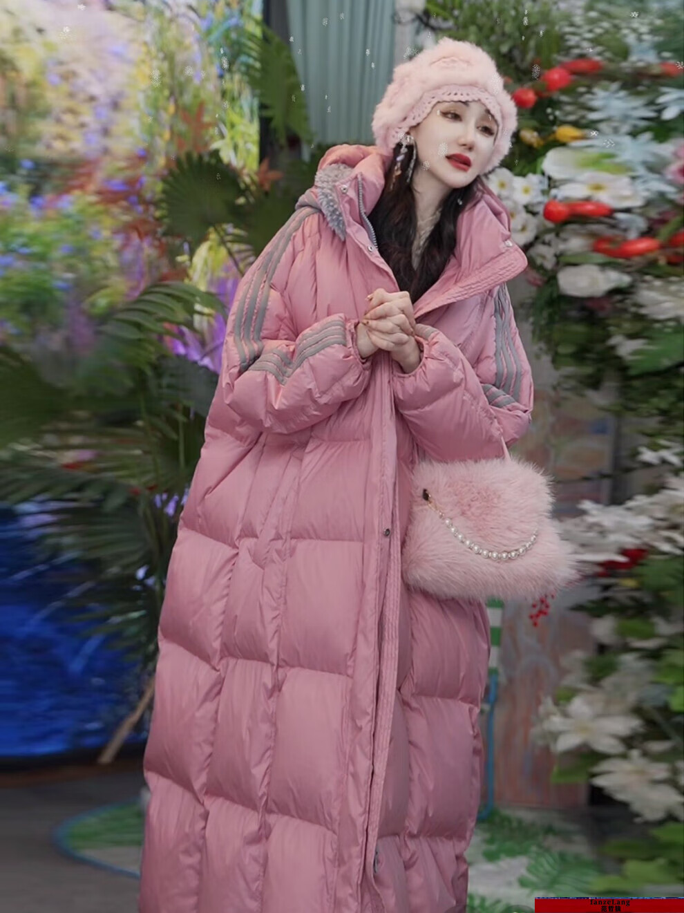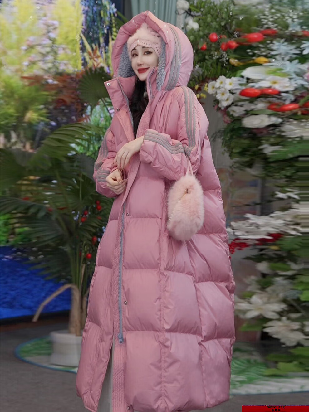 FanzELANG (FANZELANG) 400g down thickened cold-resistant 30-degree warm white duck down extreme cold down jacket for women 2026 winter long outdoor jacket leather powder M 101-120Jin Jin equal to 0.5 kg (prepared)