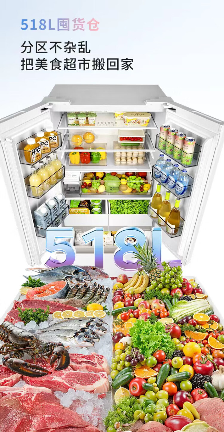 Hualing Shenji 518 Little Zeus Midea's French multi-door refrigerator ultra-thin embedded household large-capacity automatic ice making dual system frequency conversion first-level energy efficiency HR-518WUFIPZ Hualing Shenji flagship Xinhuang French ice making