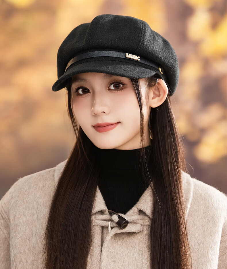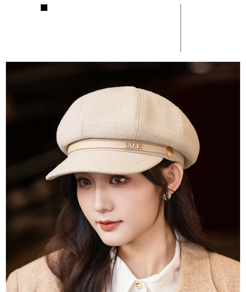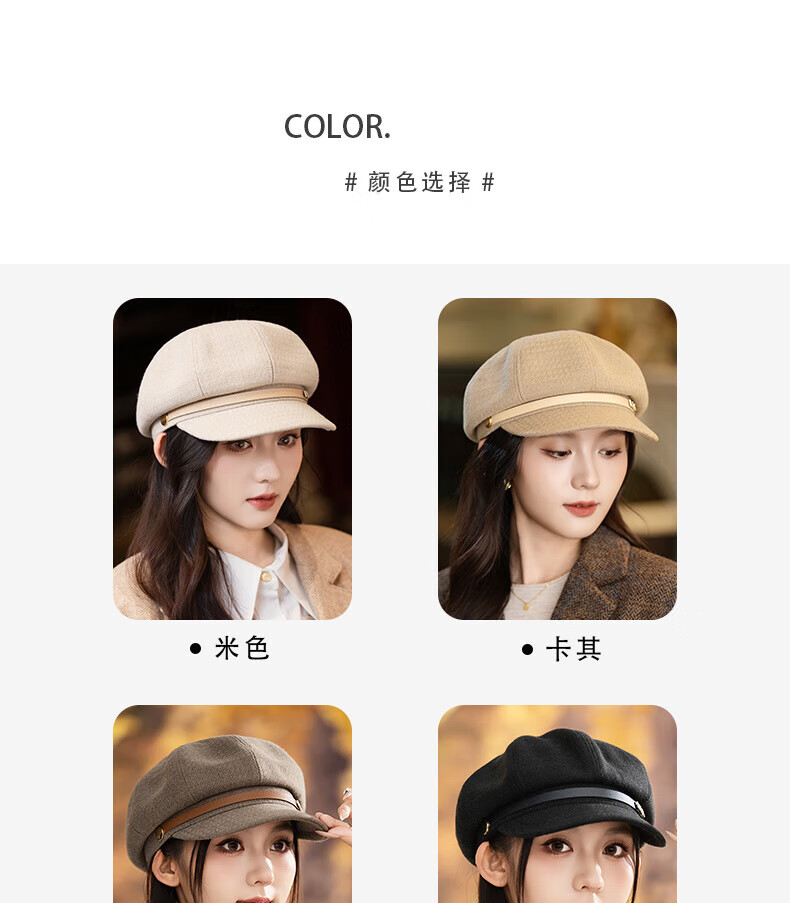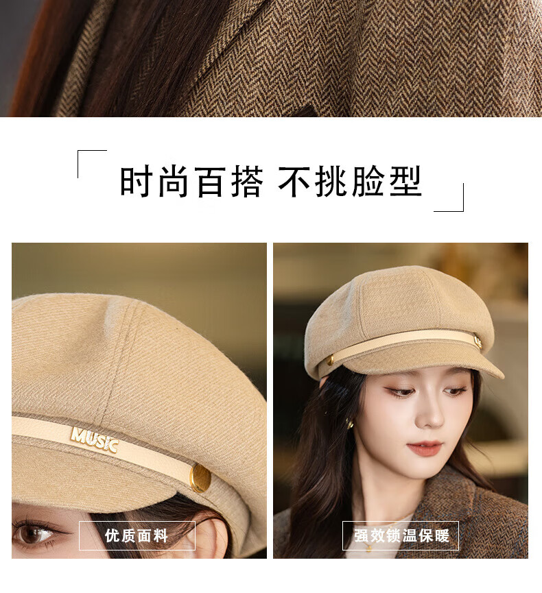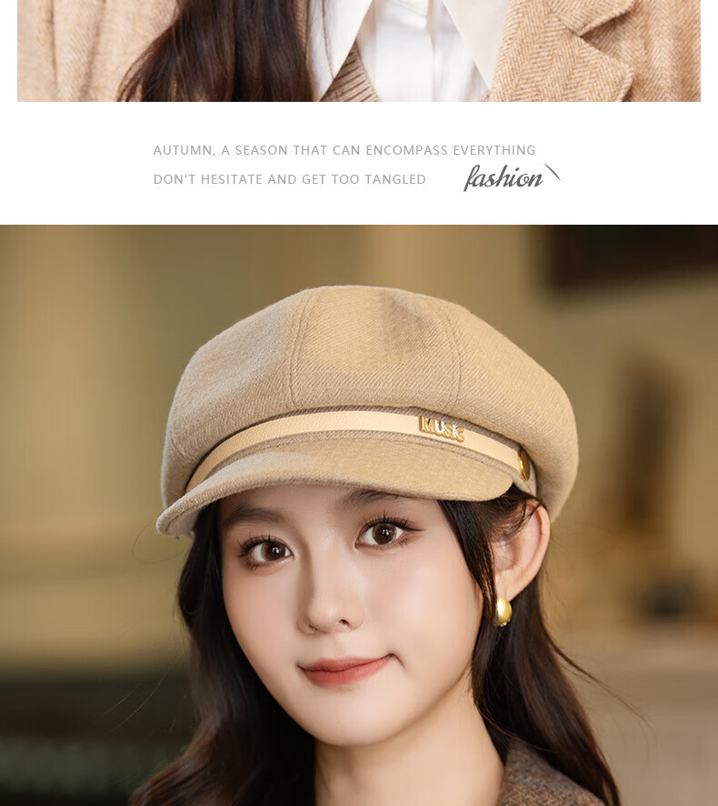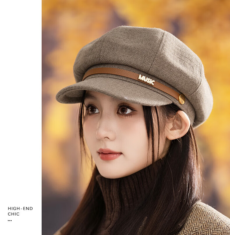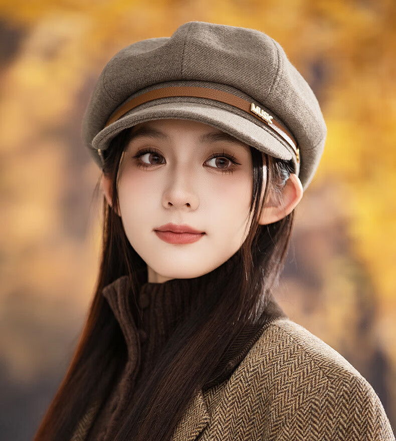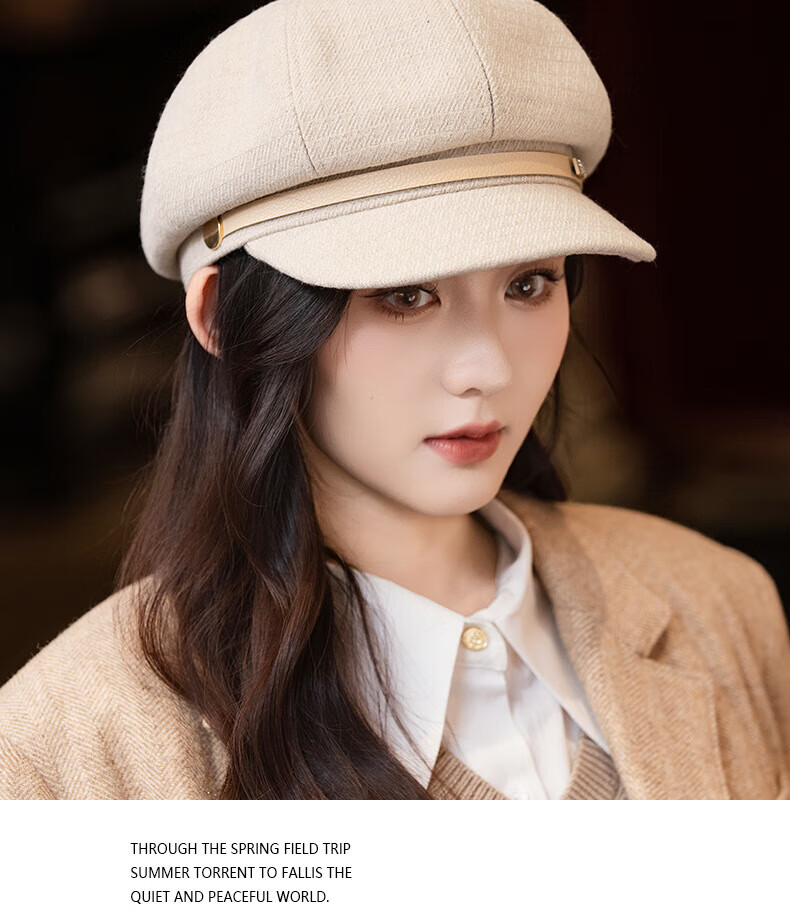 Jimmy Leaf Beret Autumn and Winter Hat Women's Versatile Face-Showing Small Octagonal Hat Outdoor Leisure Windproof Newsboy Hat Coffee One Size Head Circumference 55-58CM