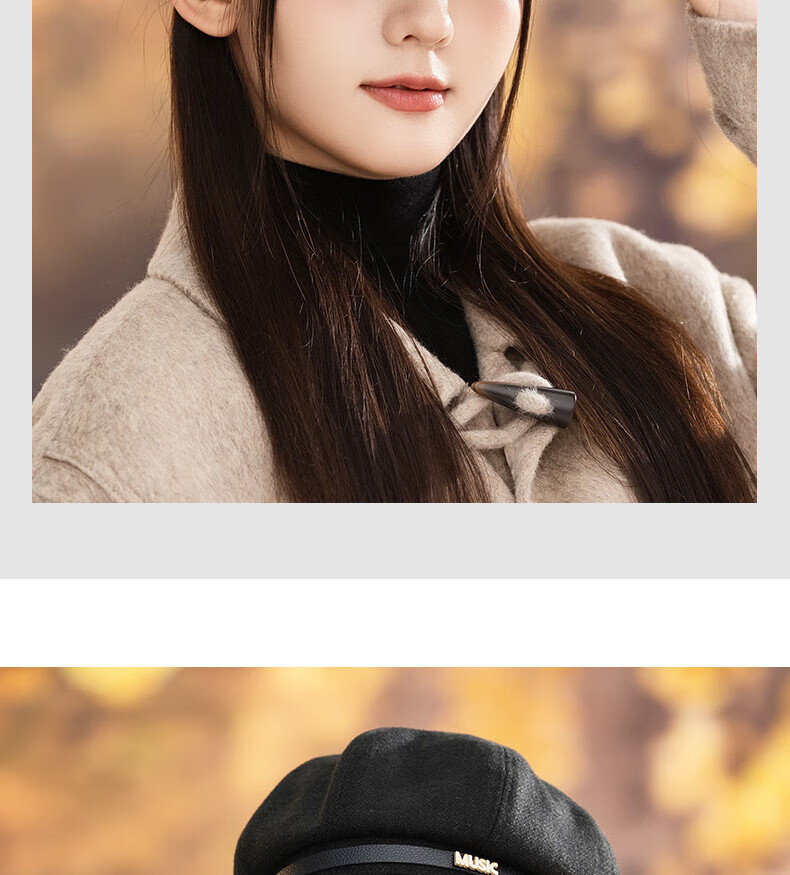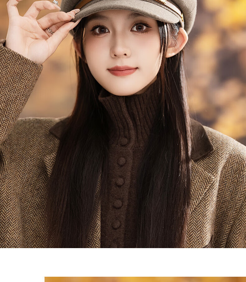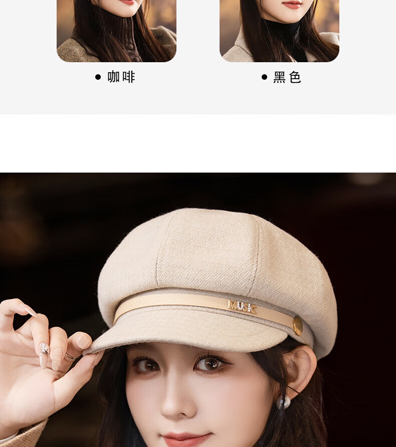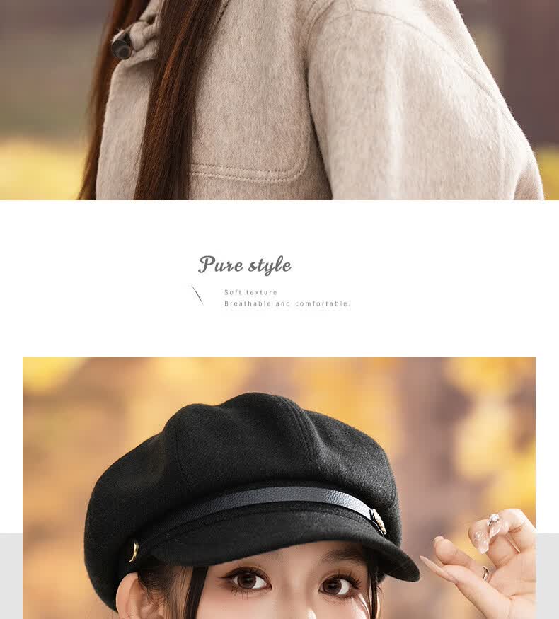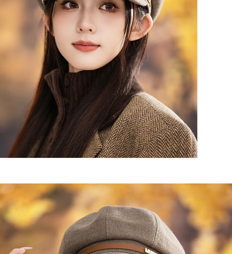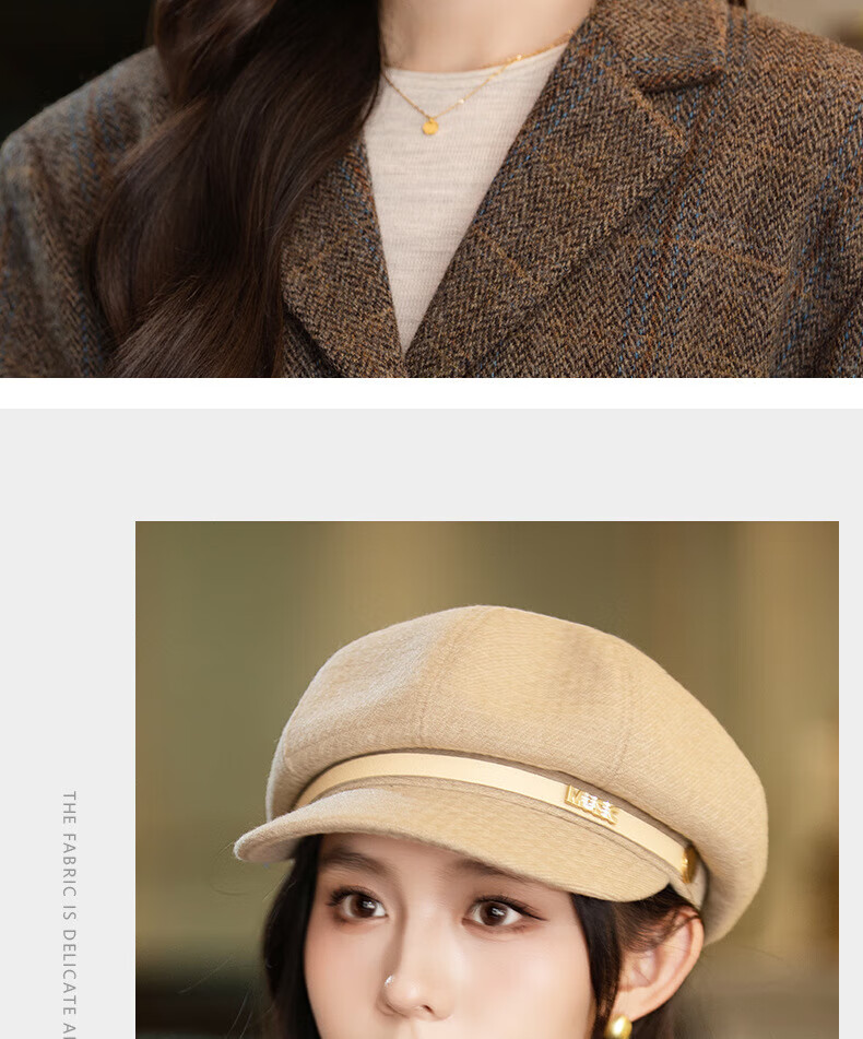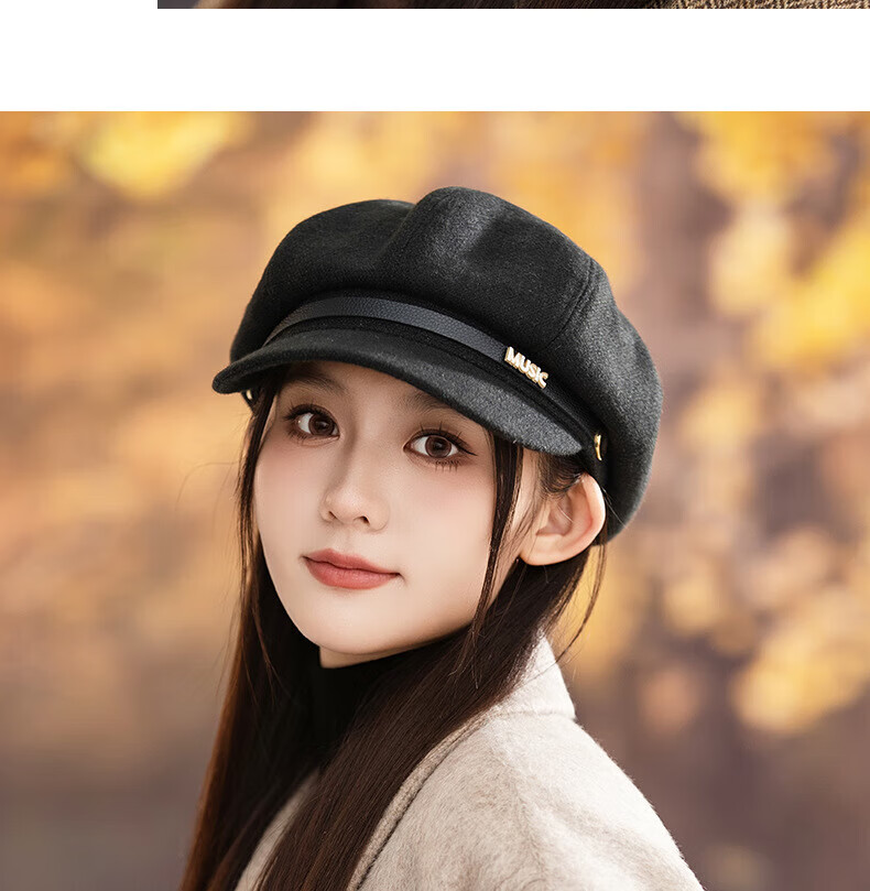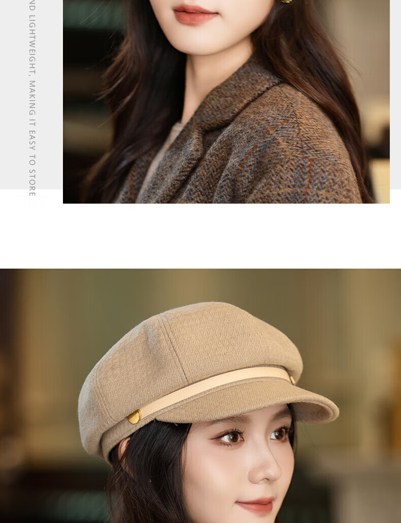 Jimmy Leaf Beret Autumn and Winter Hat Women's Versatile Face-Showing Small Octagonal Hat Outdoor Leisure Windproof Newsboy Hat Coffee One Size Head Circumference 55-58CM