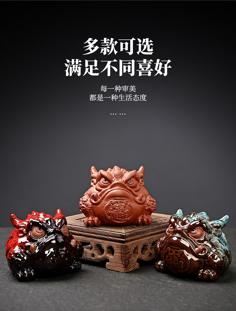 High-quality purple sand lucky golden toad tea pet ornaments ceramic kiln transformed tea pet ornaments tea set accessories office living room ornaments lucky golden toad - purple sand