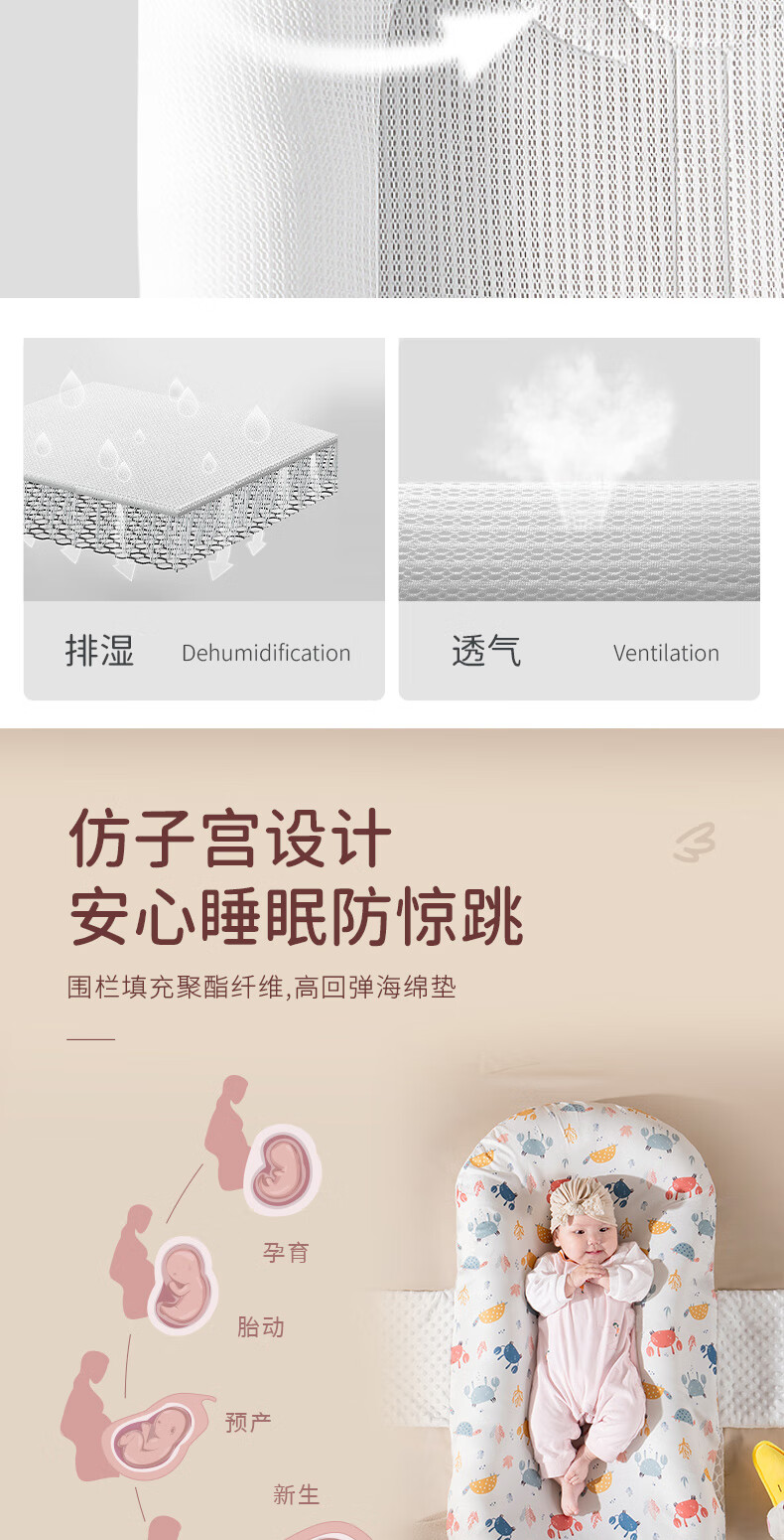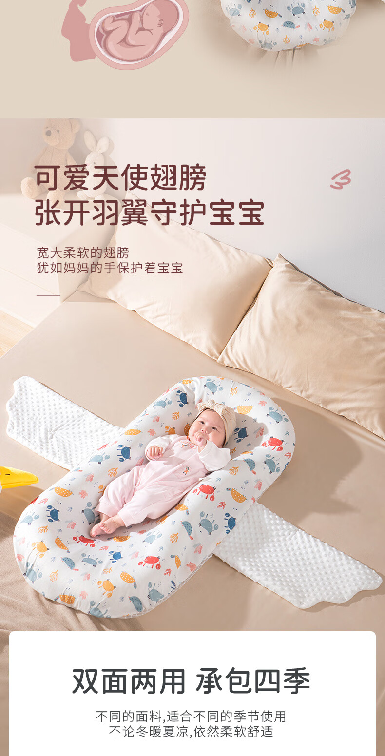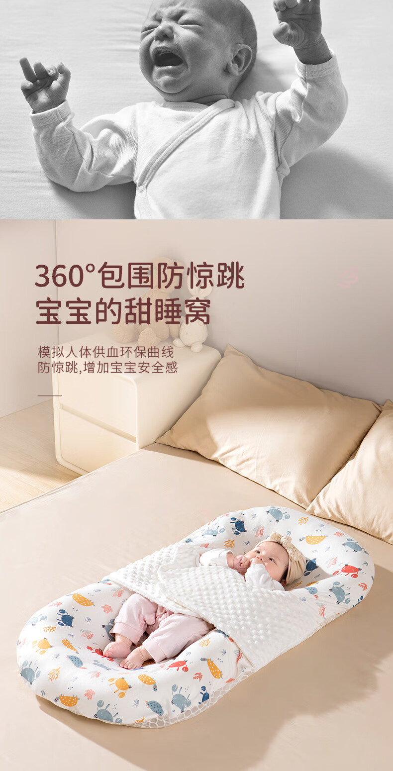 Mars Tiger Wu's bed-in-bed crib for newborns to sleep, prevent jumps and vomiting, uterine bionic bed, prevent pressure and comfort during sleep, Class A quality - Cooling Cloud Mousse - Ocean (0-15 months)