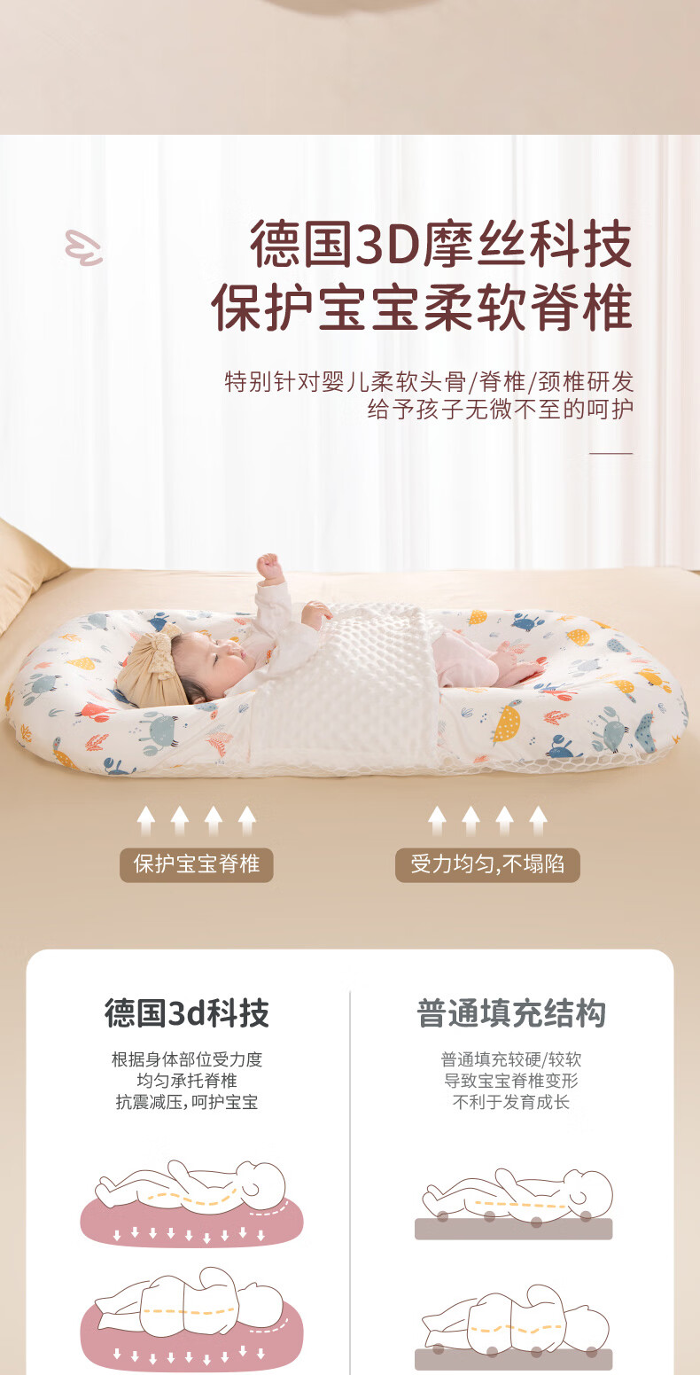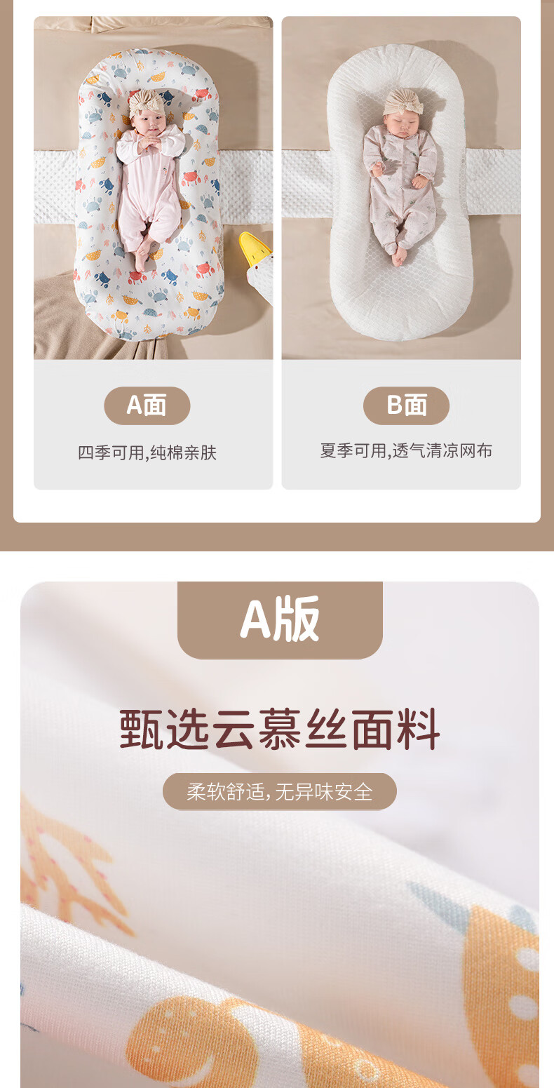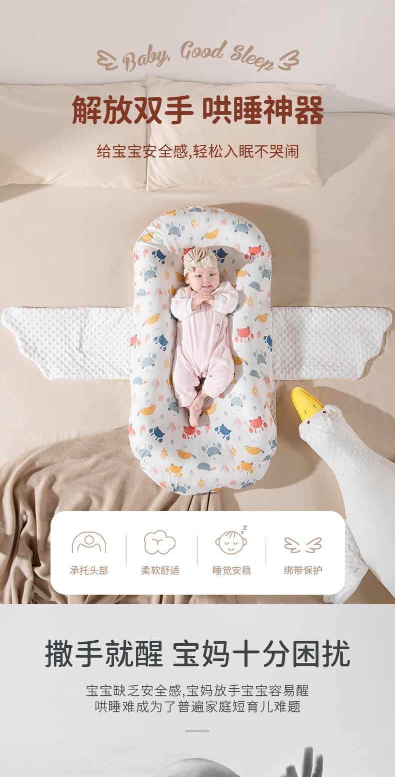 Mars Tiger Wu's bed-in-bed crib for newborns to sleep, prevent jumps and vomiting, uterine bionic bed, prevent pressure and comfort during sleep, Class A quality - Cooling Cloud Mousse - Ocean (0-15 months)