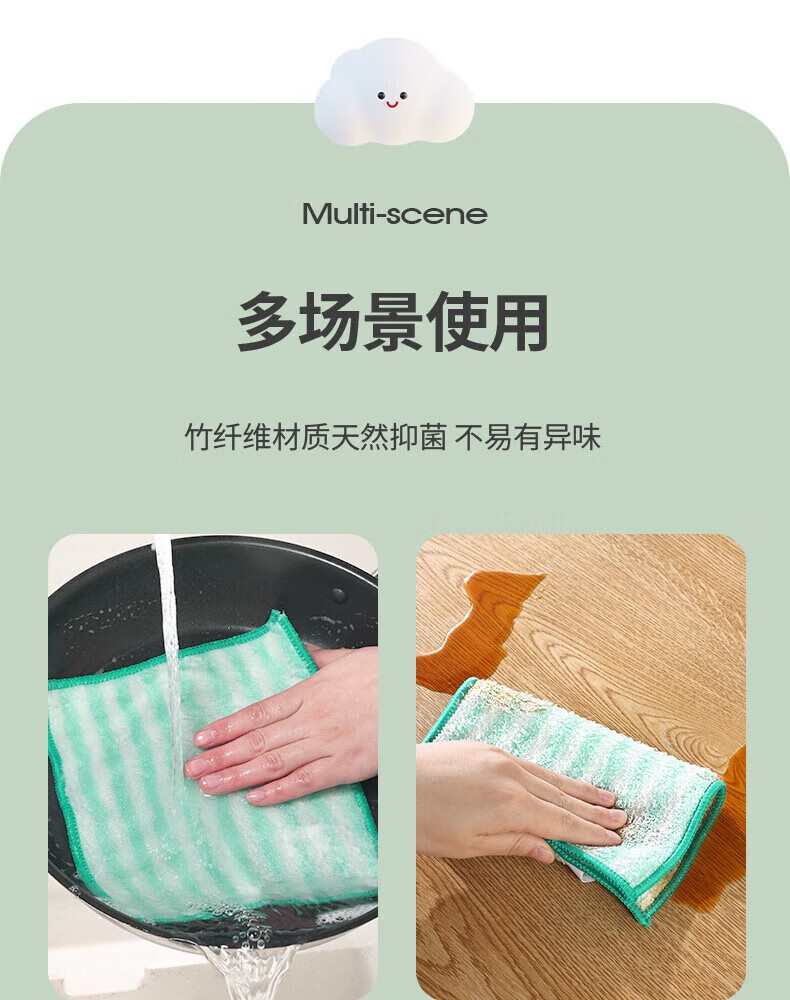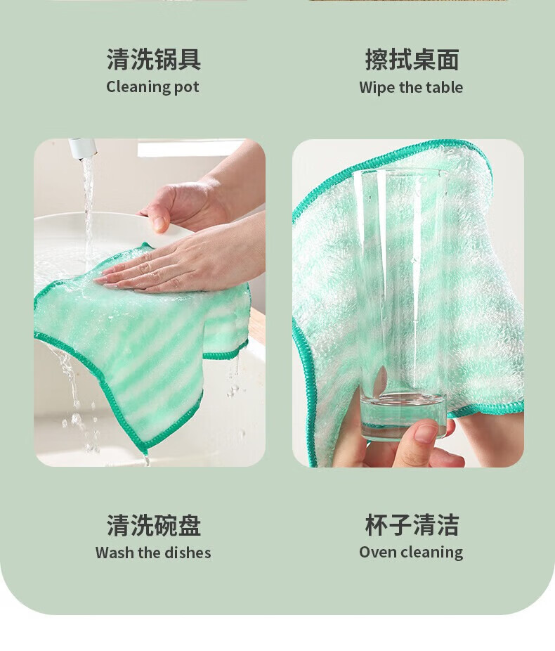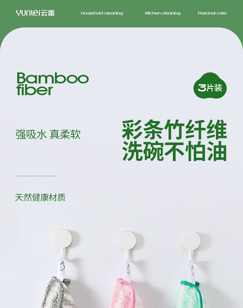 Yun Lei striped bamboo fiber dishcloth, not easy to get oily and not easy to shed, household kitchen absorbent thickened cleaning cloth, color terms, 23*18cm, large size, 3 pieces