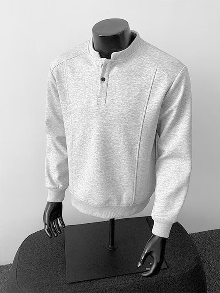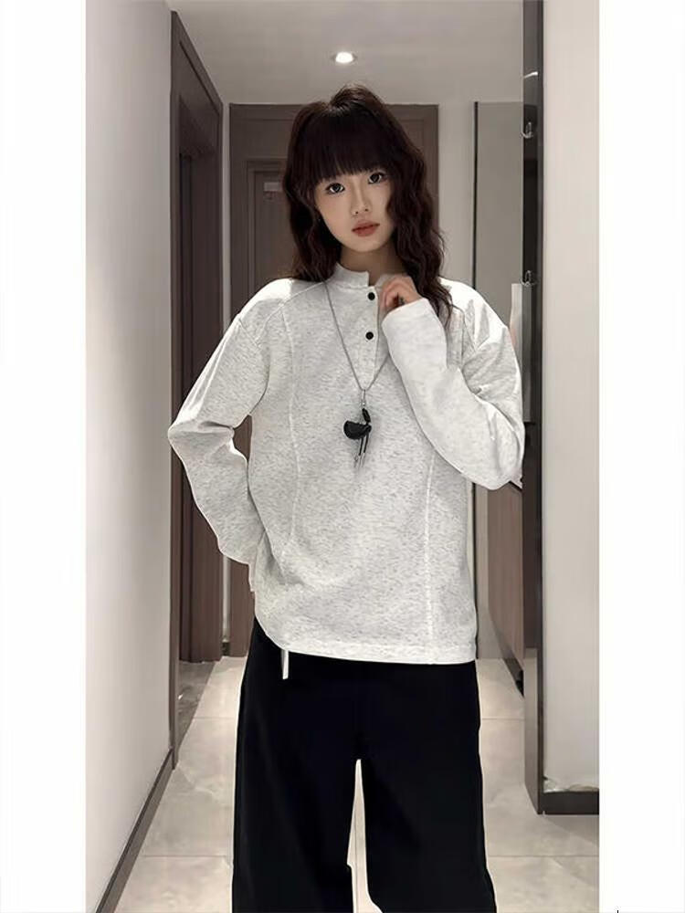 Katuchi Henry collar long-sleeved polo shirt for men in autumn American deconstructed splicing right shoulder sweatshirt boxy version inner base light gray L