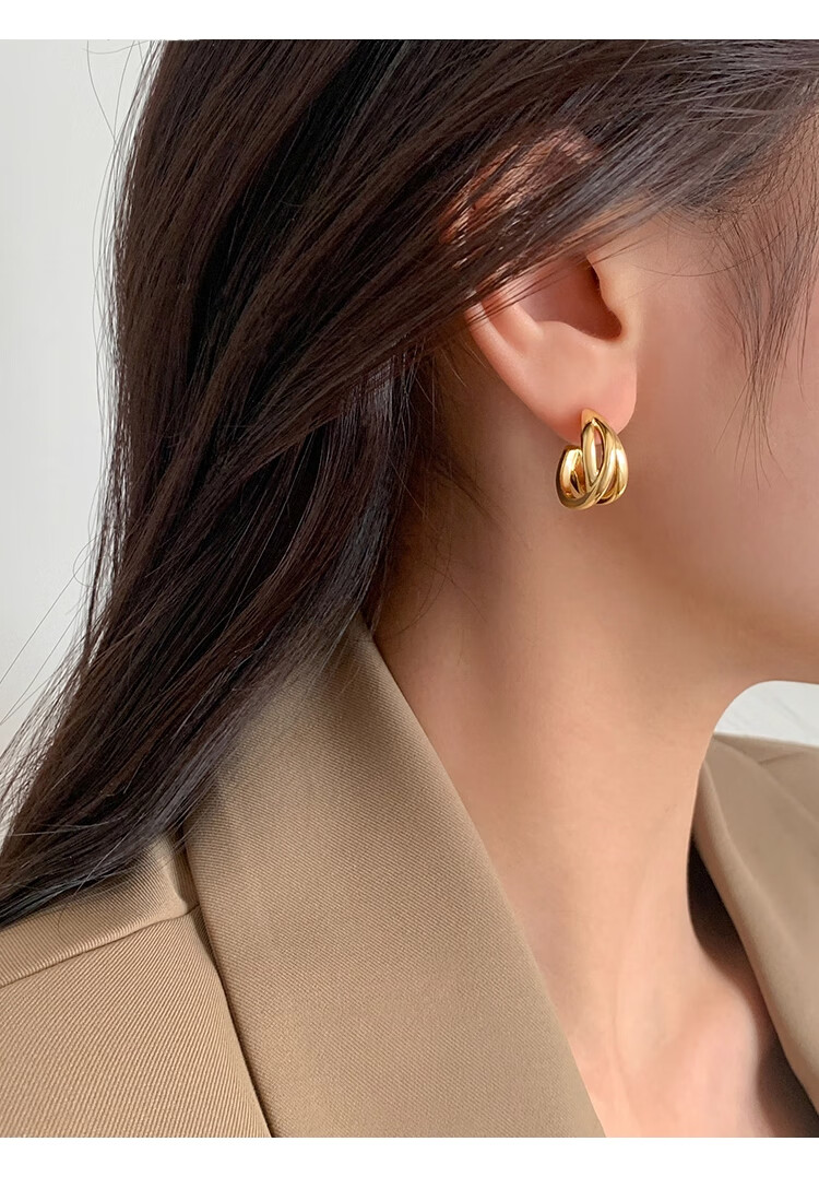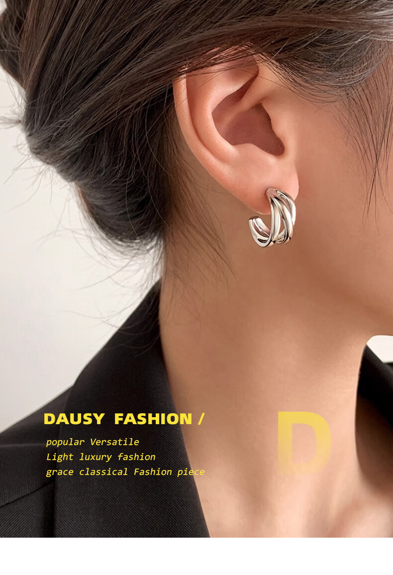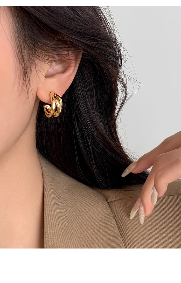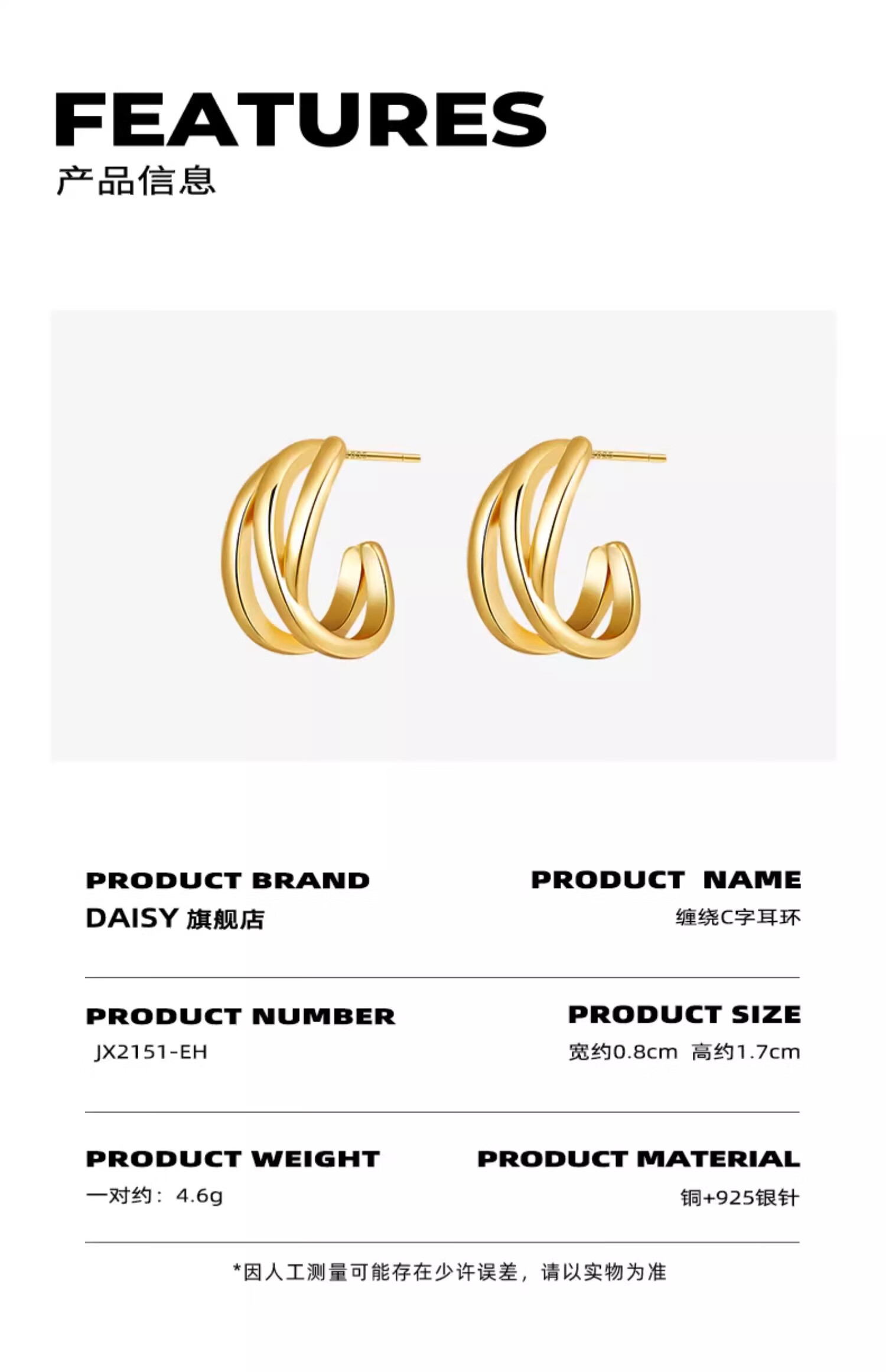 DAISY DREAM925 silver needle gold C-shaped earrings women's high-end earrings 2025 new popular multi-layer plain circle retro earrings gold wrapped C-shaped earrings 925 silver needle