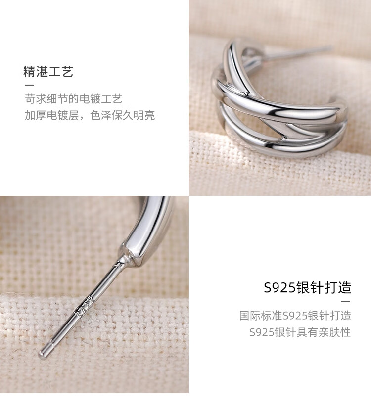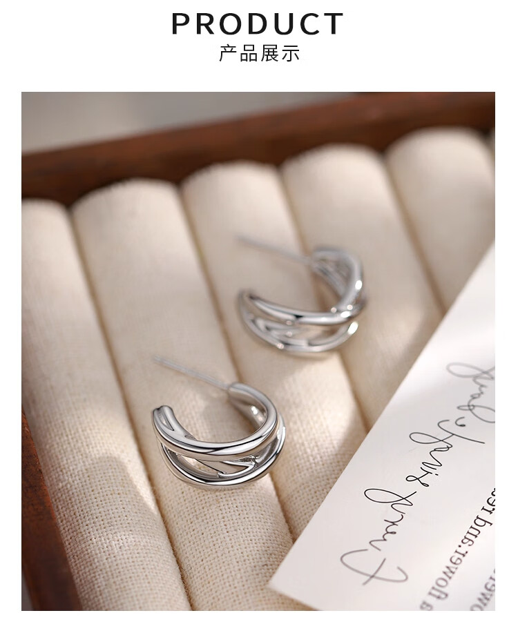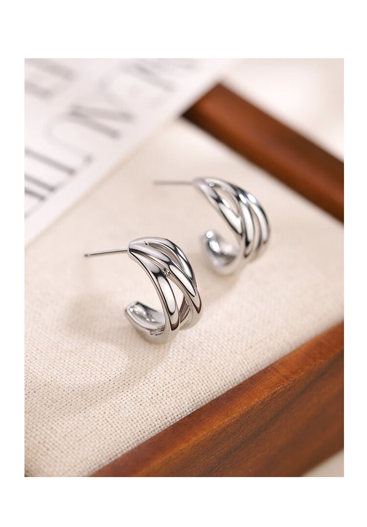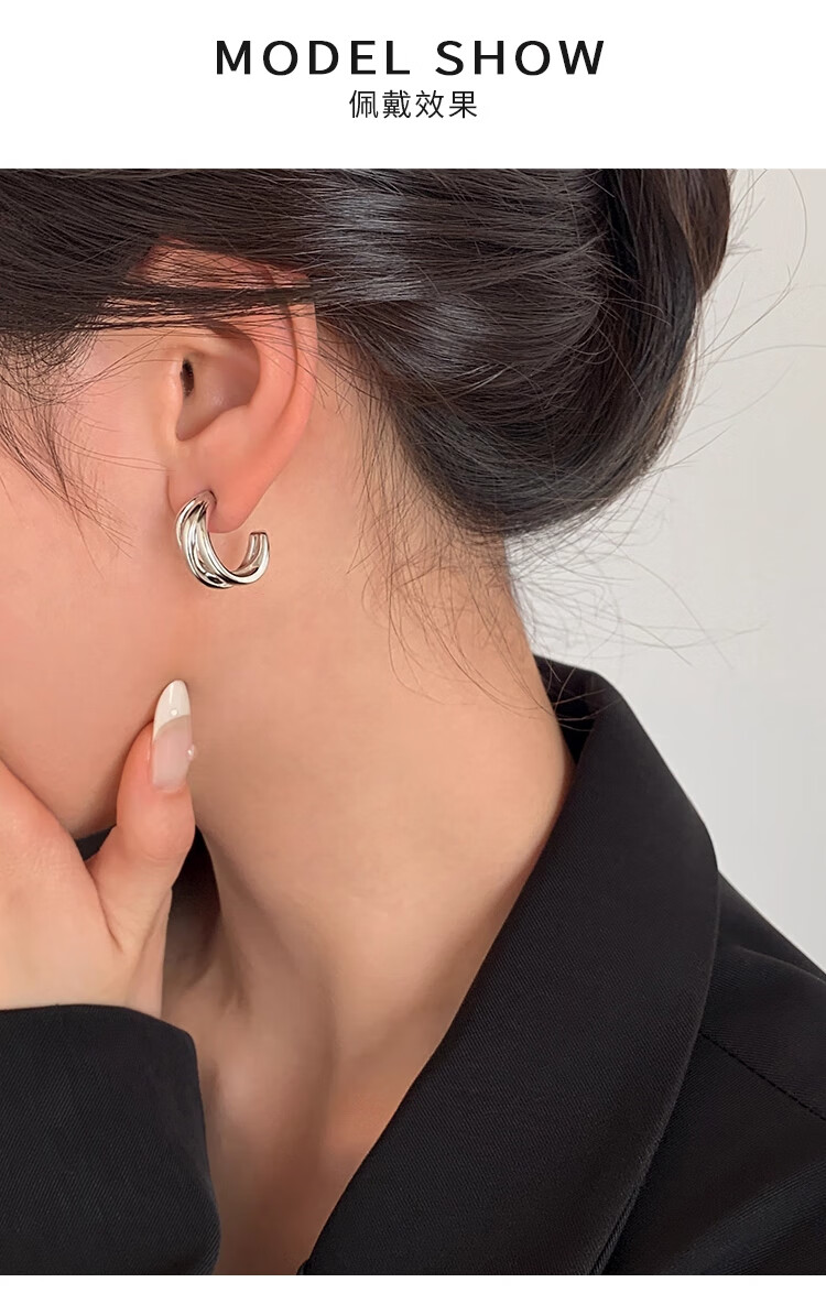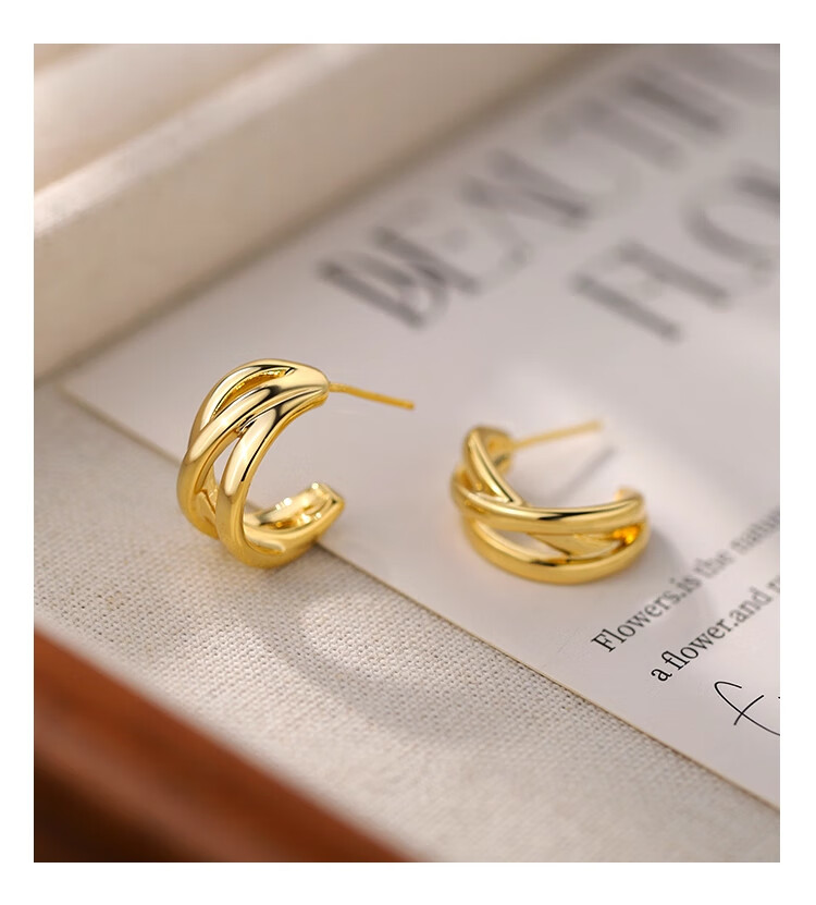 DAISY DREAM925 silver needle gold C-shaped earrings women's high-end earrings 2025 new popular multi-layer plain circle retro earrings gold wrapped C-shaped earrings 925 silver needle