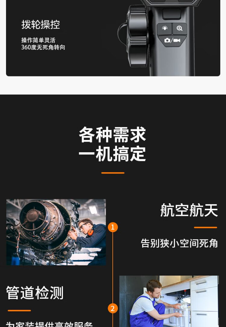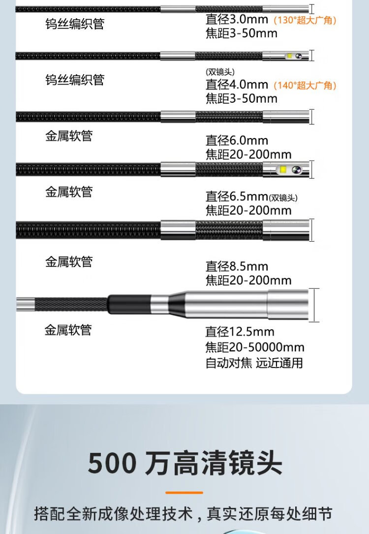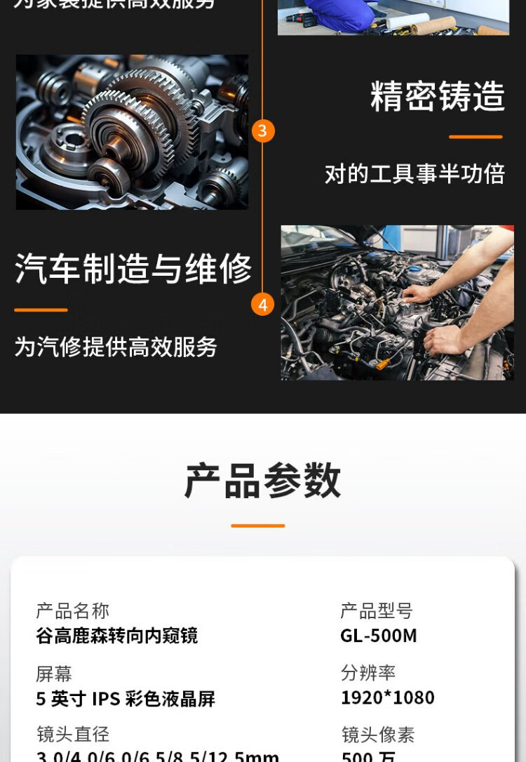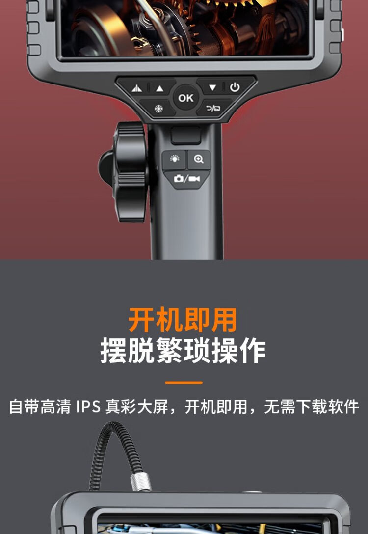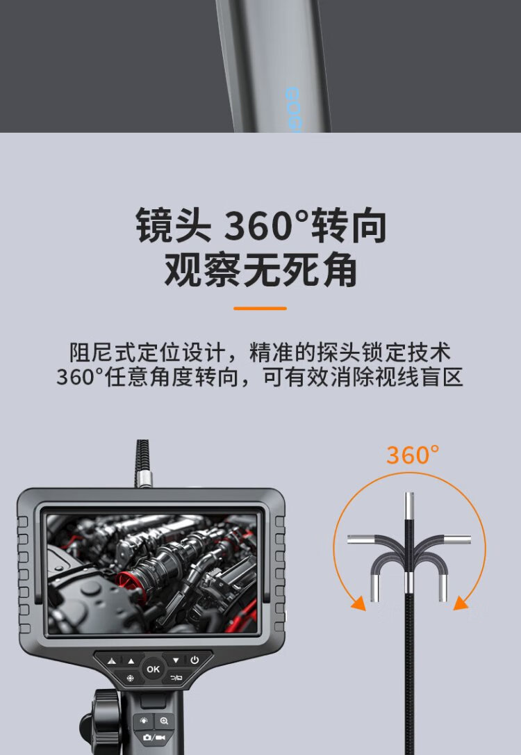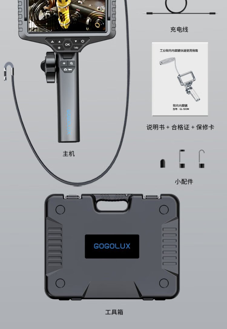 Gugao Lusen 360-degree turning endoscope high-definition camera dual-lens industrial pipeline inspection vehicle maintenance GL-500M new high-definition dual-lens 6.5mm + snake tube 5 meters