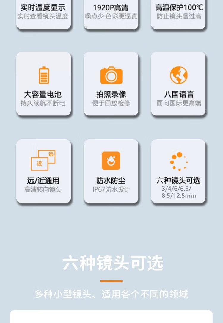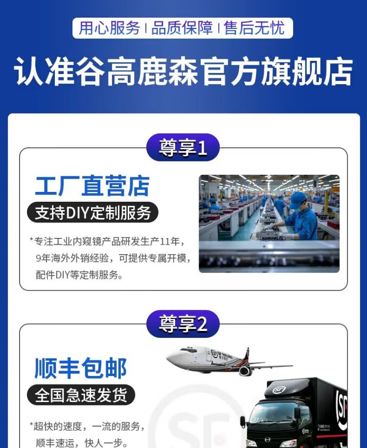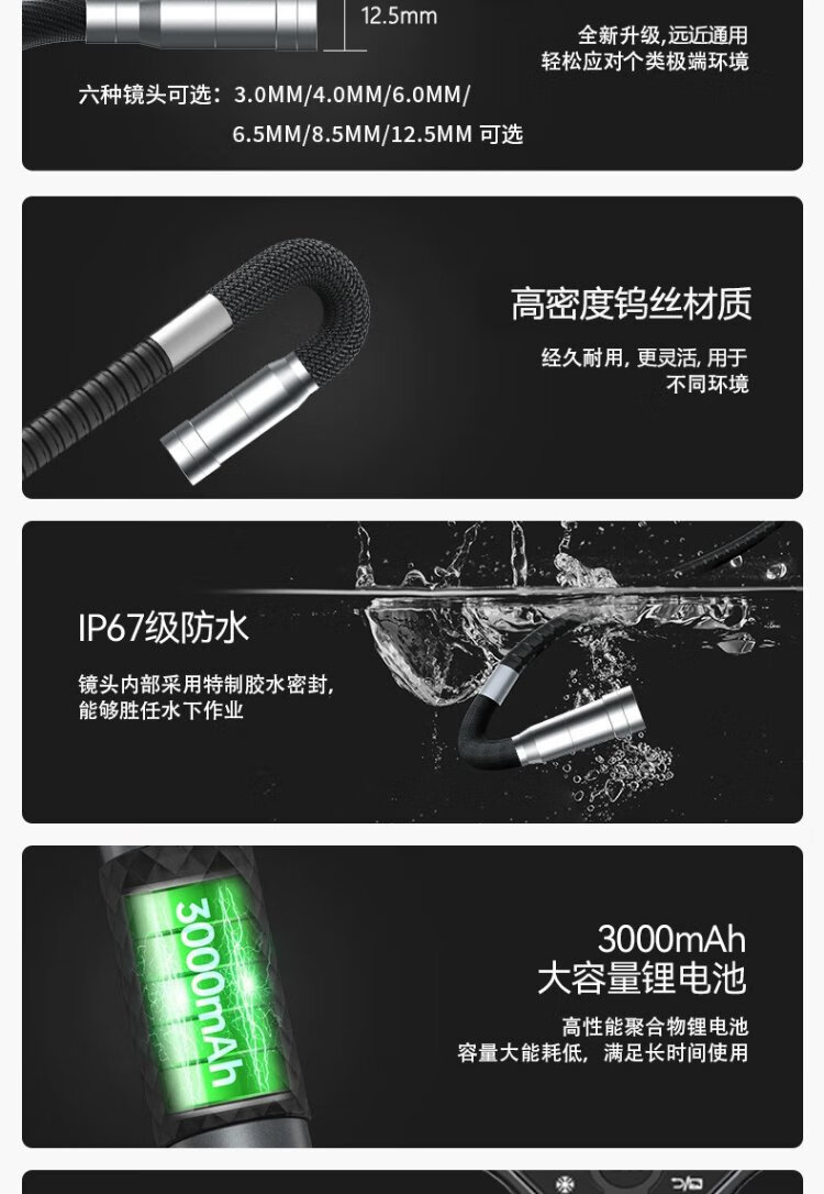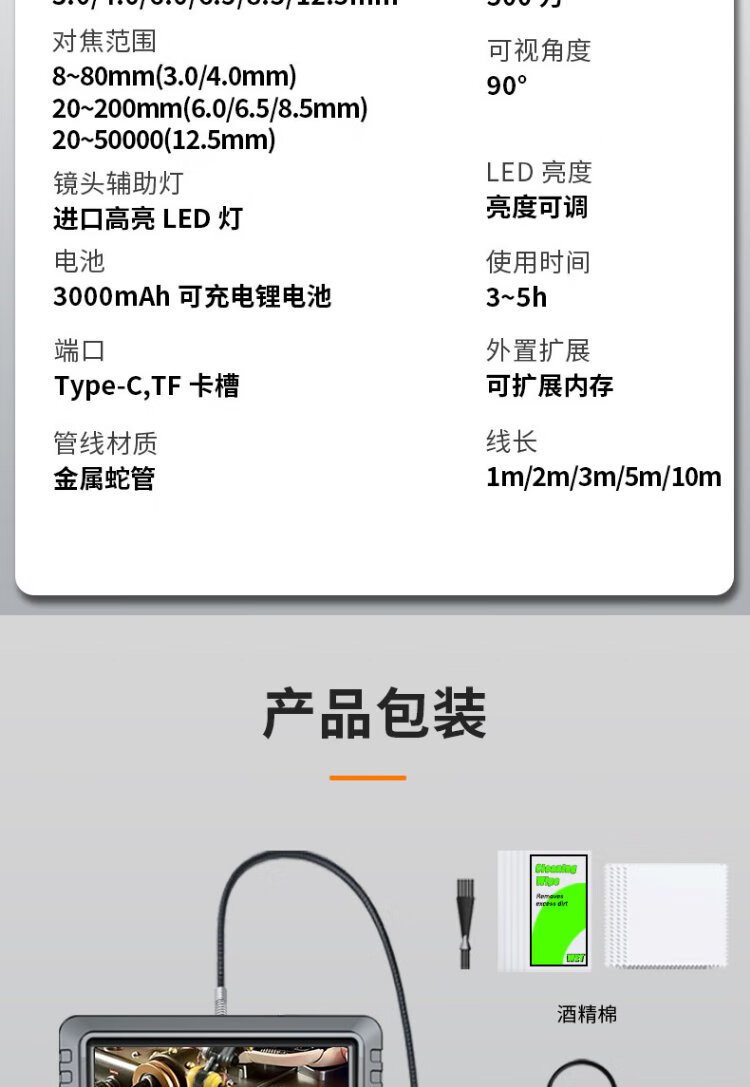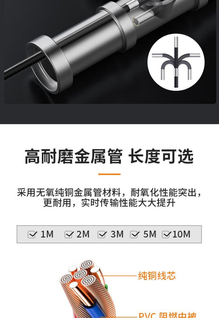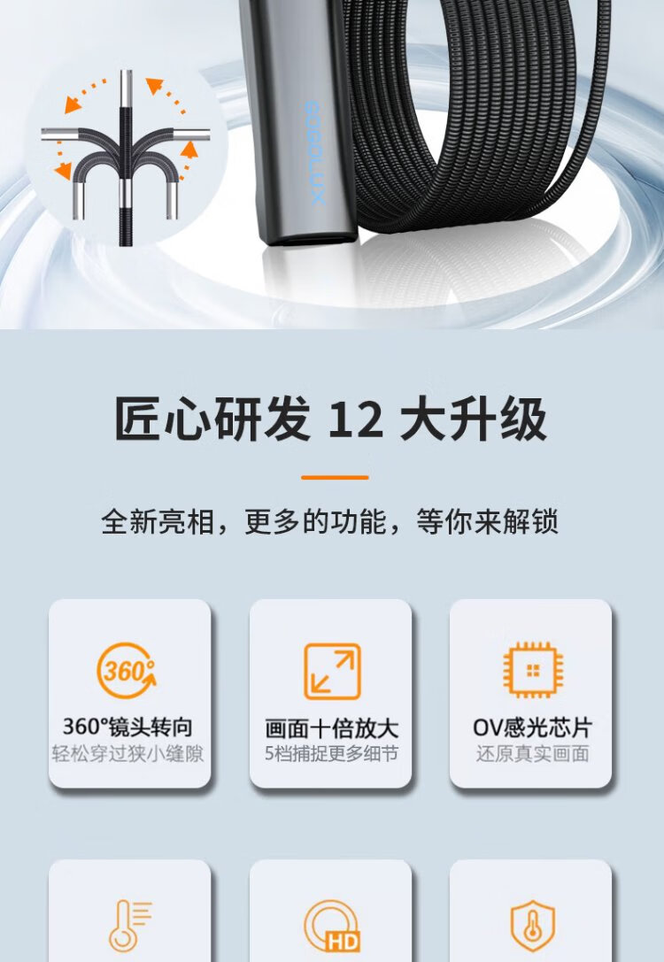 Gugao Lusen 360-degree turning endoscope high-definition camera dual-lens industrial pipeline inspection vehicle maintenance GL-500M new high-definition dual-lens 6.5mm + snake tube 5 meters