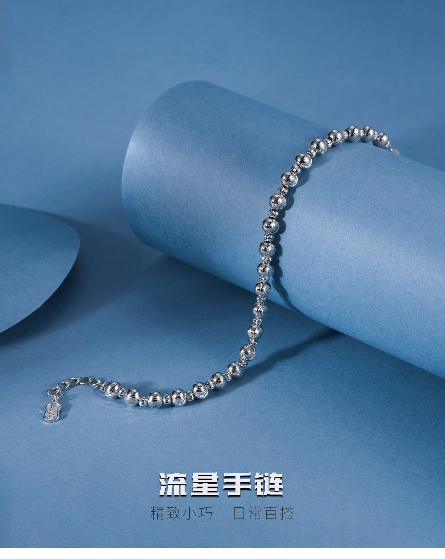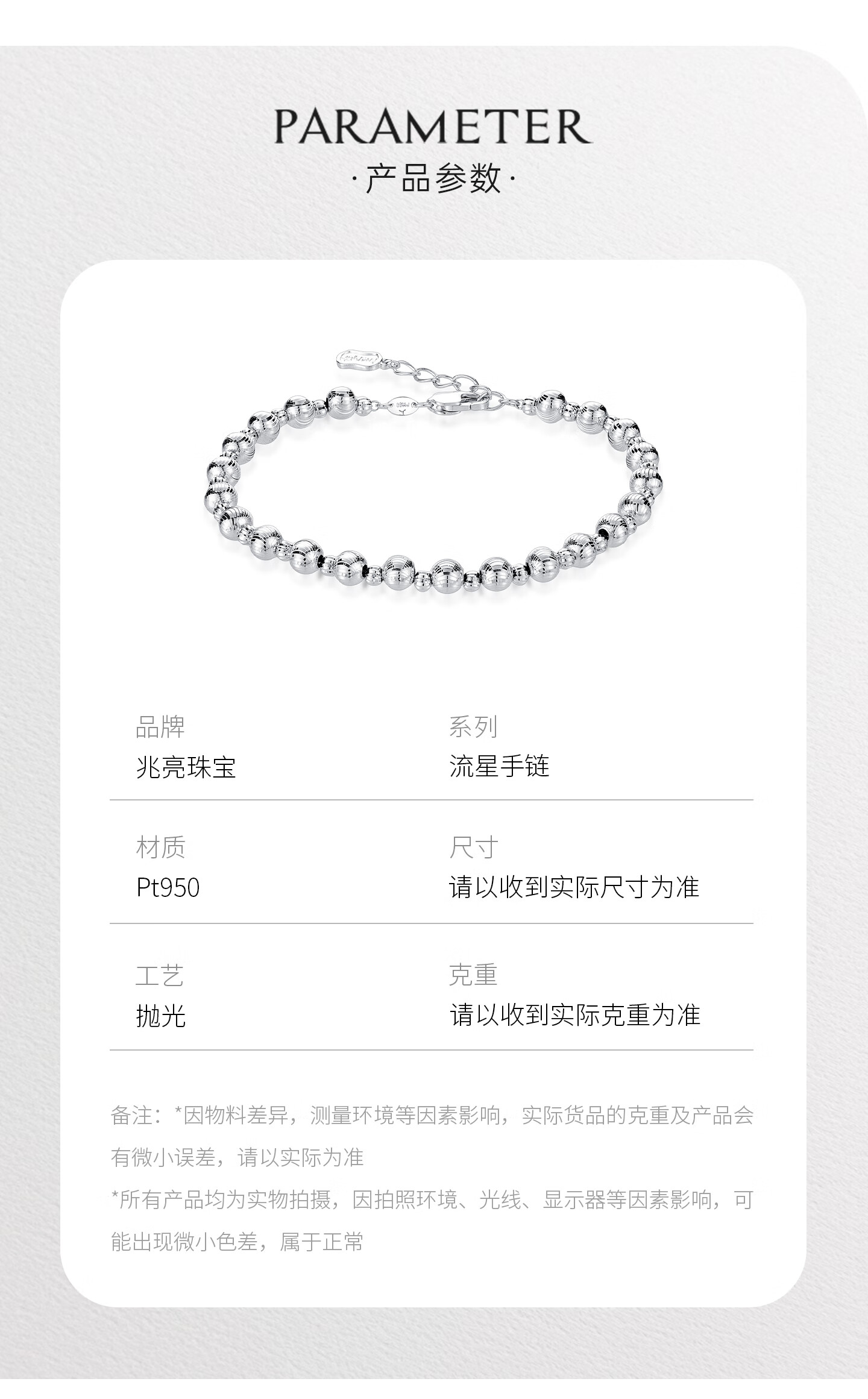 Zhaoliang PT950 Platinum Meteor Laser Bead Bracelet Women's Platinum Bracelet Gold Bead Bracelet Versatile Chinese Valentine's Day Gift 12.54g
