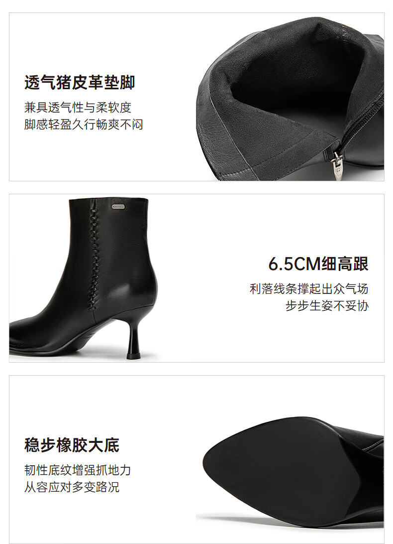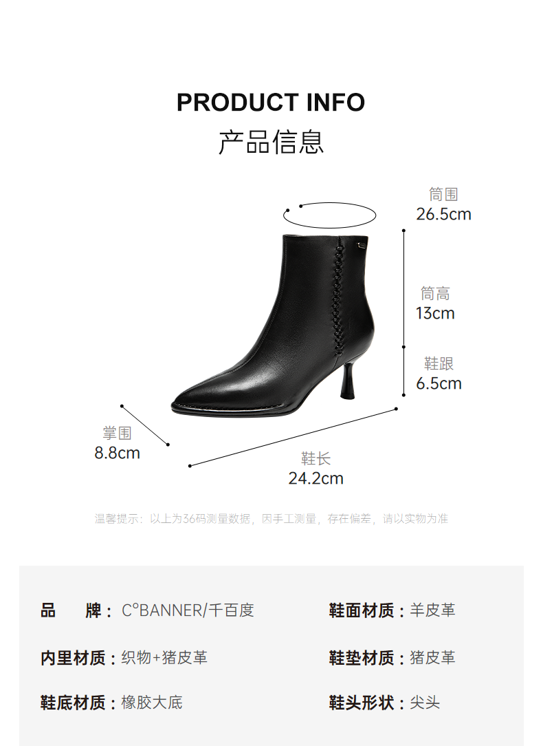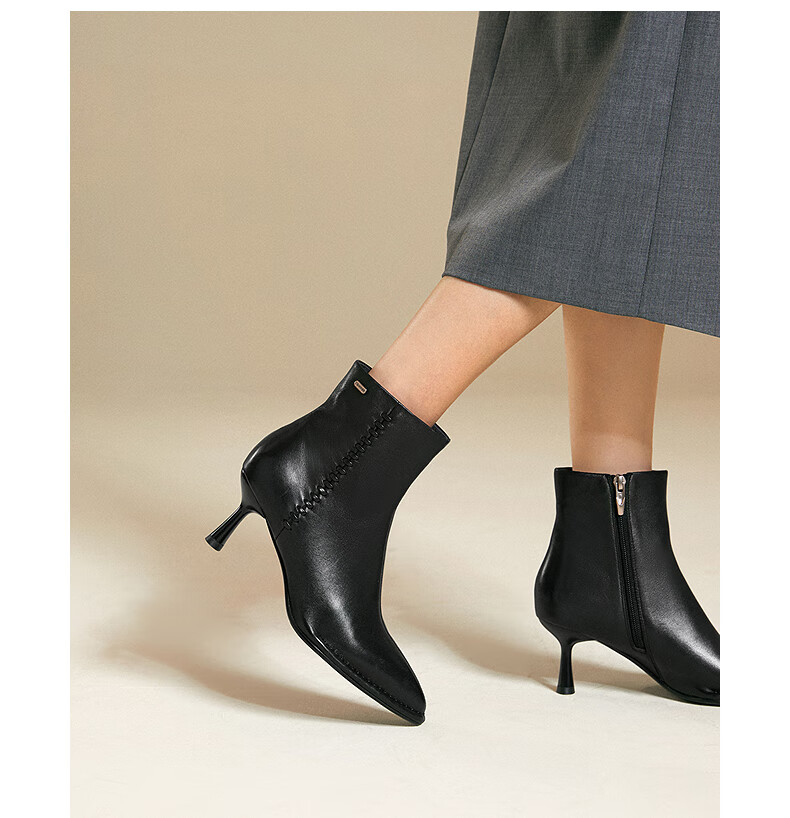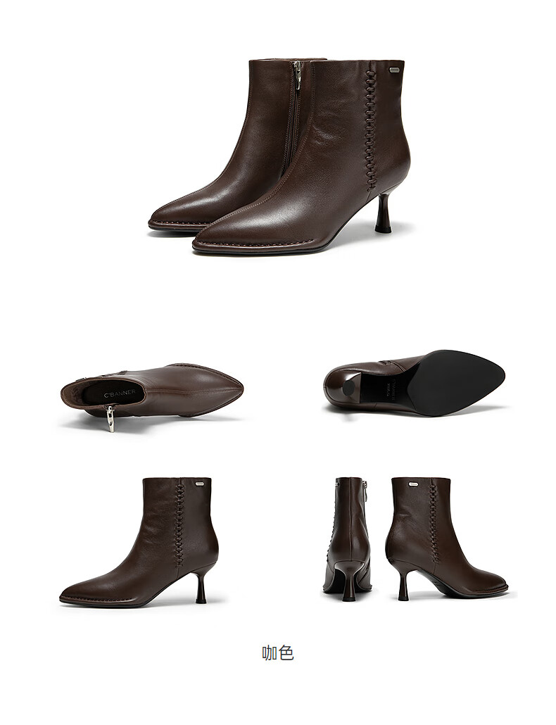 Qianbaidu Stiletto Sheepskin Boots Women's Winter Ankle Boots Fashion Short Boots Fashion Boots Brown 36 (230mm)