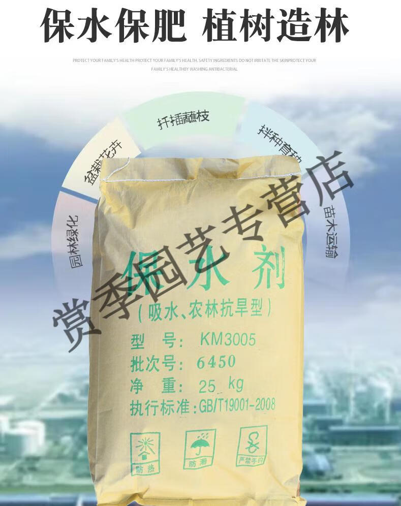 Agricultural and forestry water-retaining agent, drought-resistant water-retaining agent, fruit forest, crop soil, water-saving, gardening and greening moisturizing agent, 1000 times water-retaining agent 25 kg