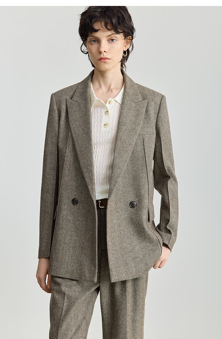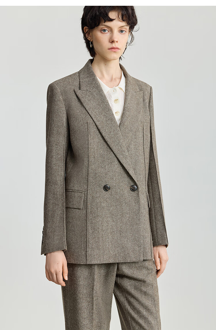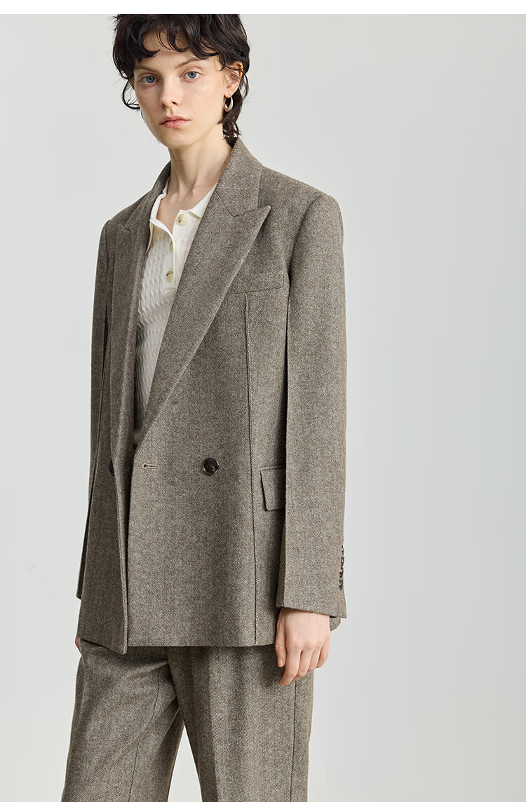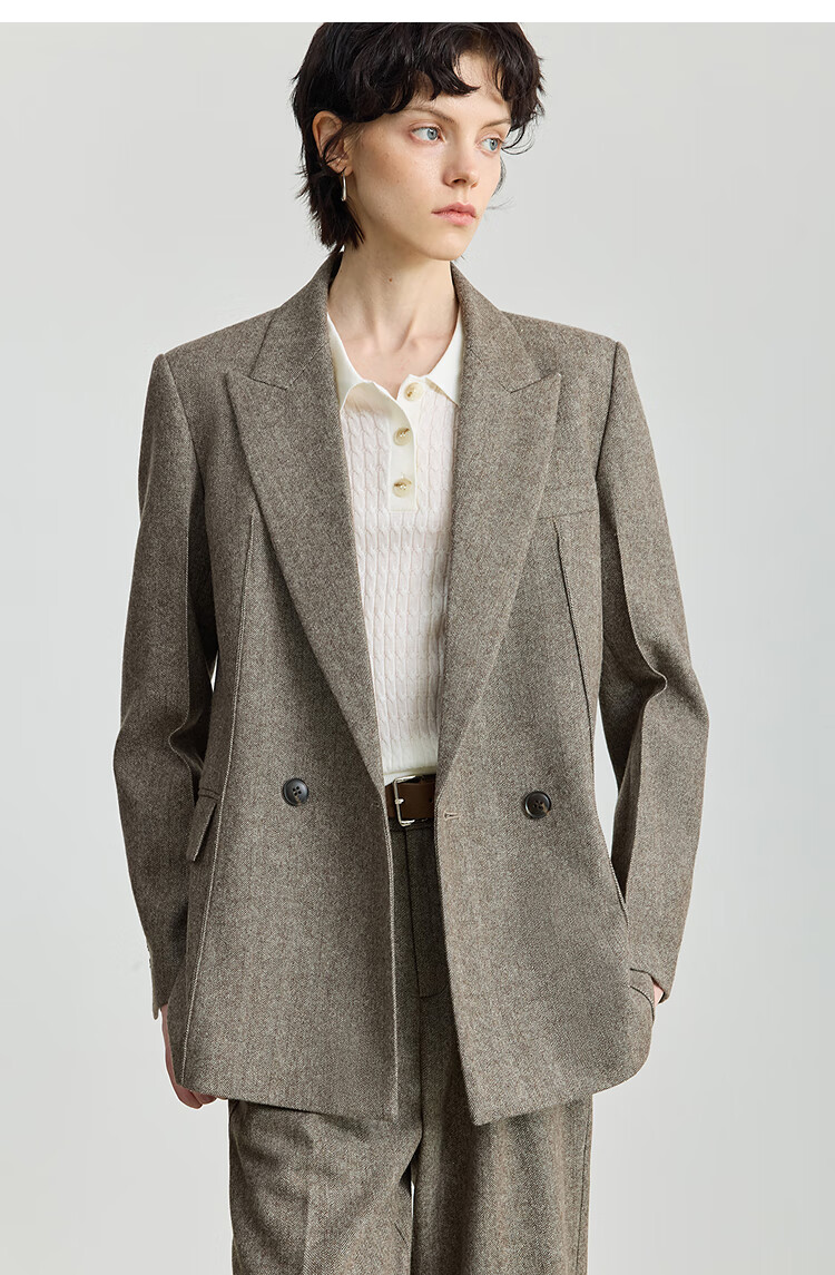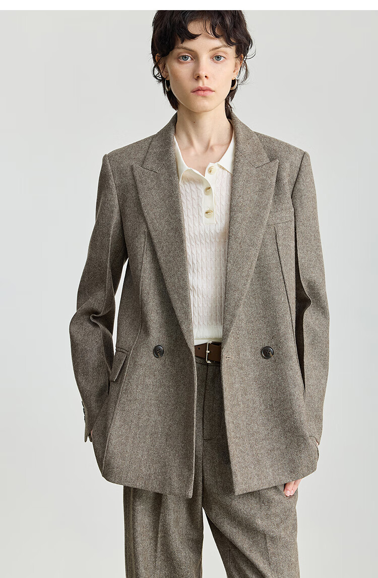 LILY2025 new winter women's wool blended old money style herringbone pattern commuter khaki suit jacket 717 Khaki M