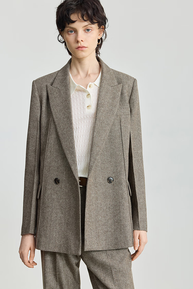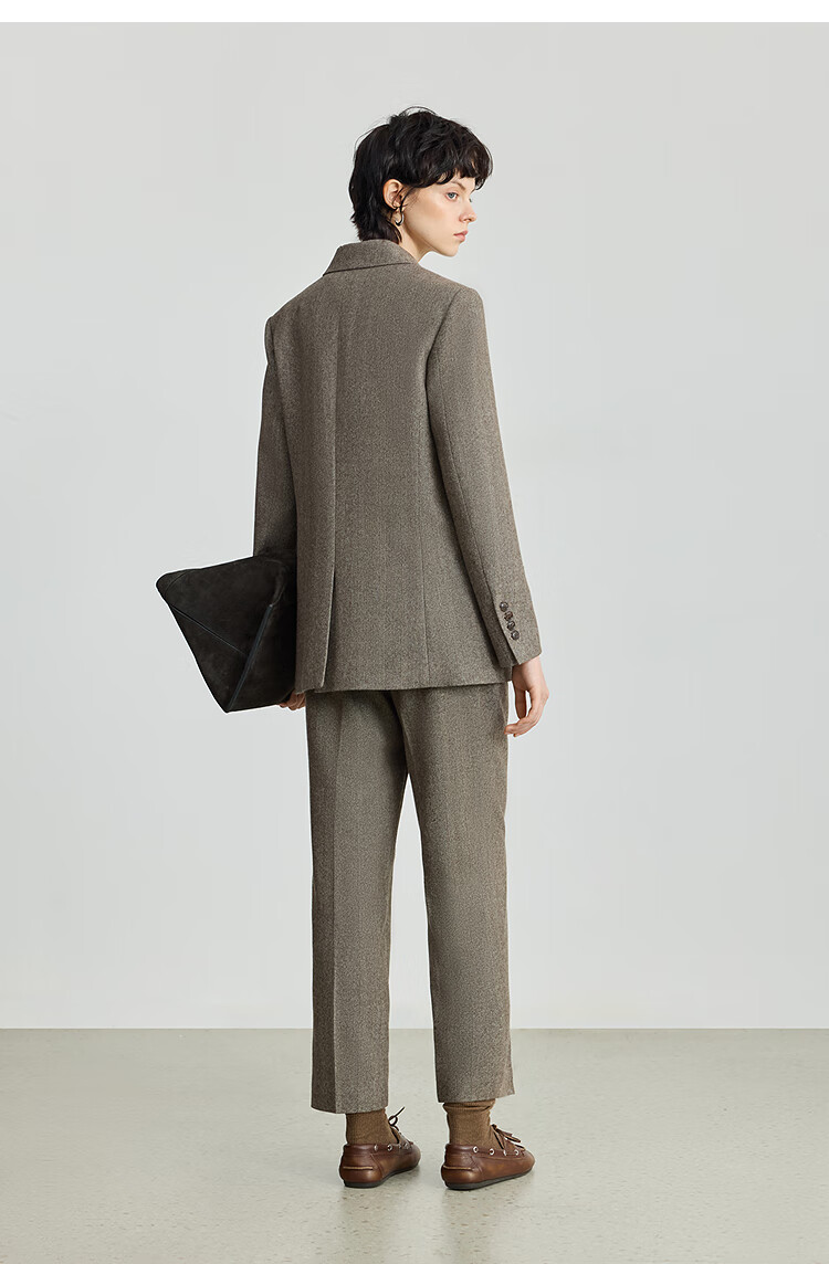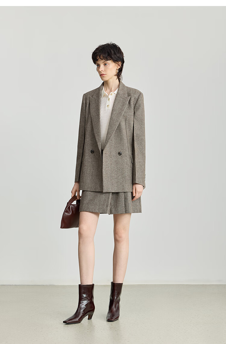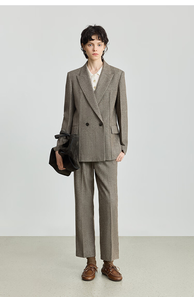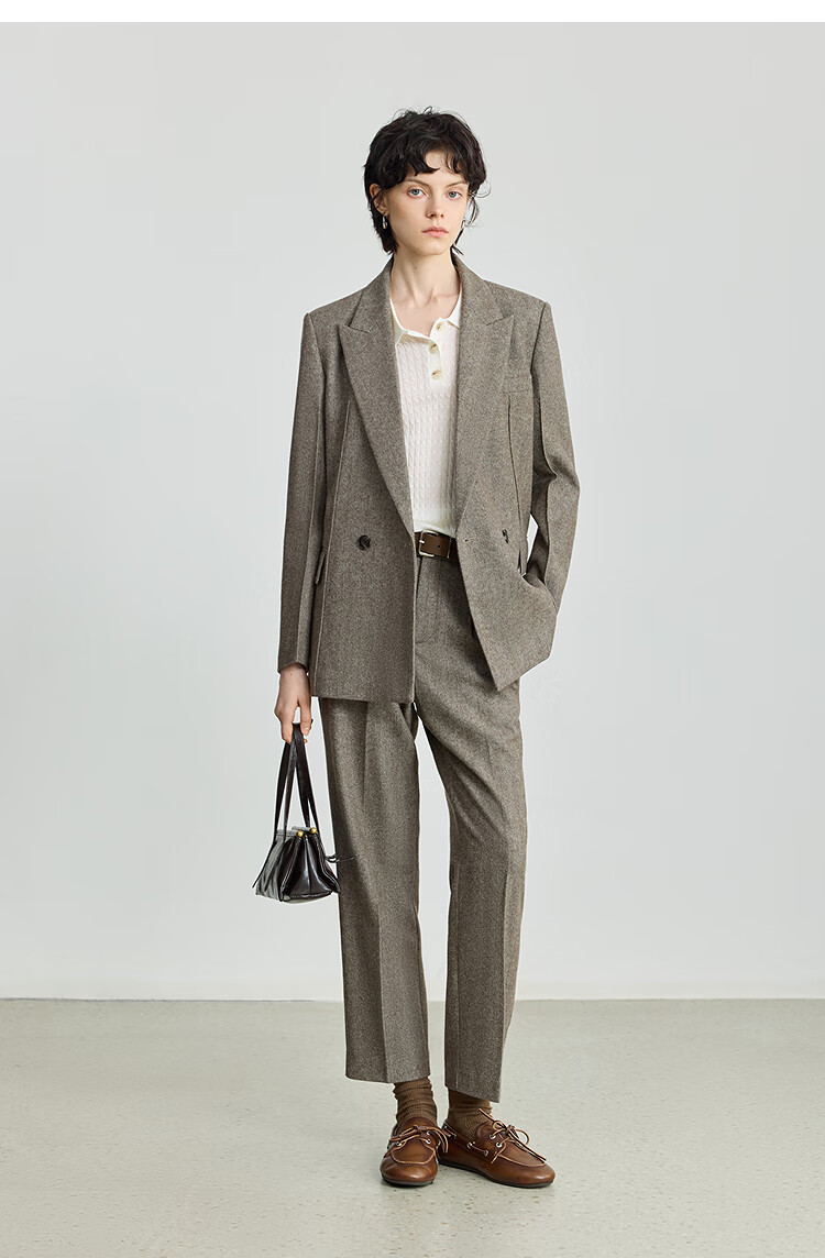 LILY2025 new winter women's wool blended old money style herringbone pattern commuter khaki suit jacket 717 Khaki M