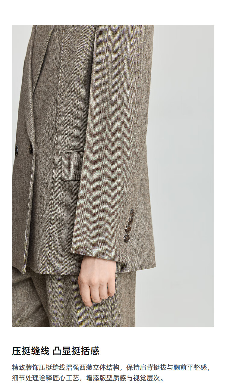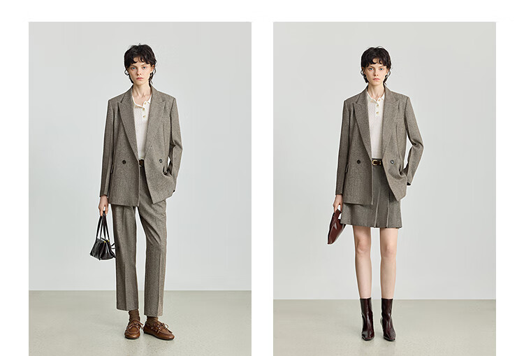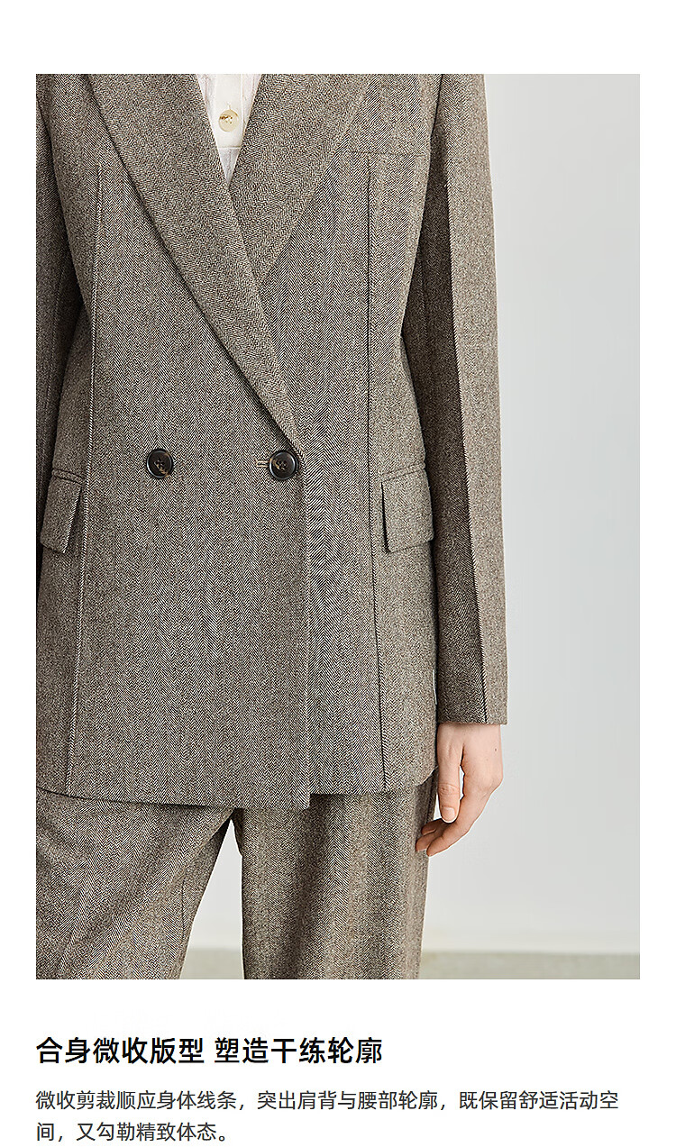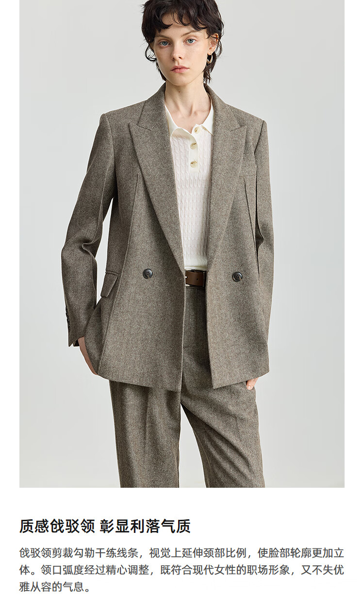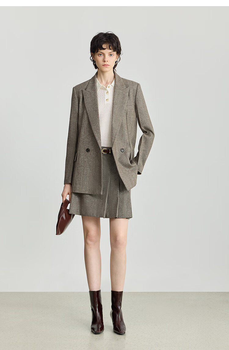 LILY2025 new winter women's wool blended old money style herringbone pattern commuter khaki suit jacket 717 Khaki M