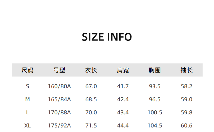 China(cm) 72-76 76-81 81-87 87-93 93-98