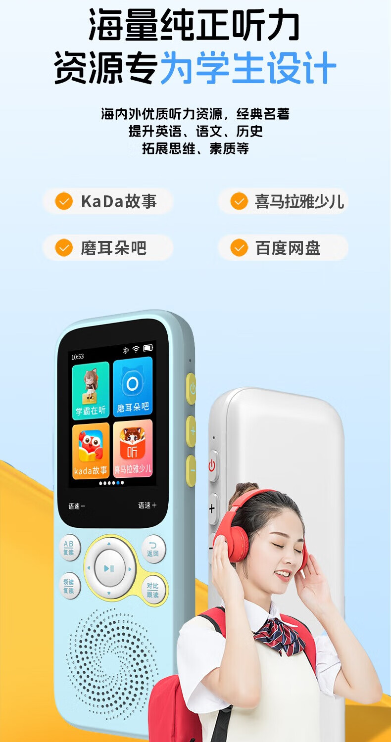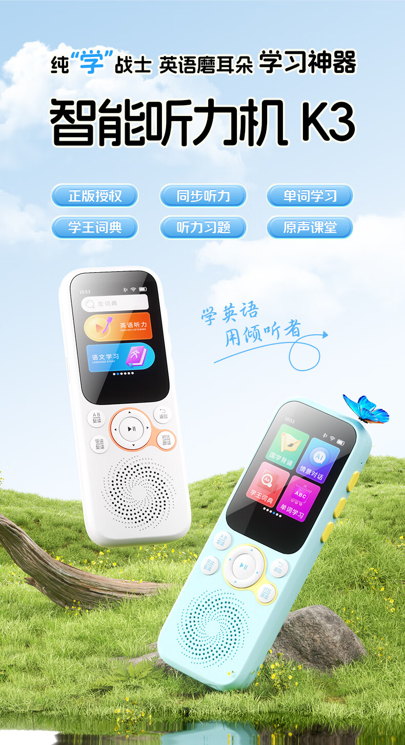Listener Hearing Treasure K3 repeater 128G English listening AI Hearing Treasure Walkman ear-sharpening new teaching materials portable learning machine English learning postgraduate entrance examination artifact K3 classic white 128G