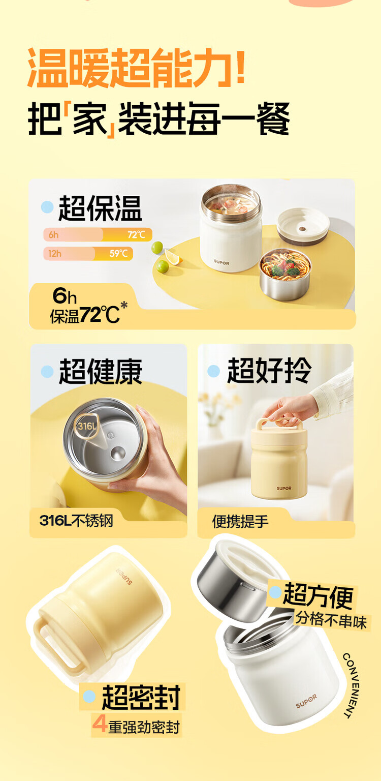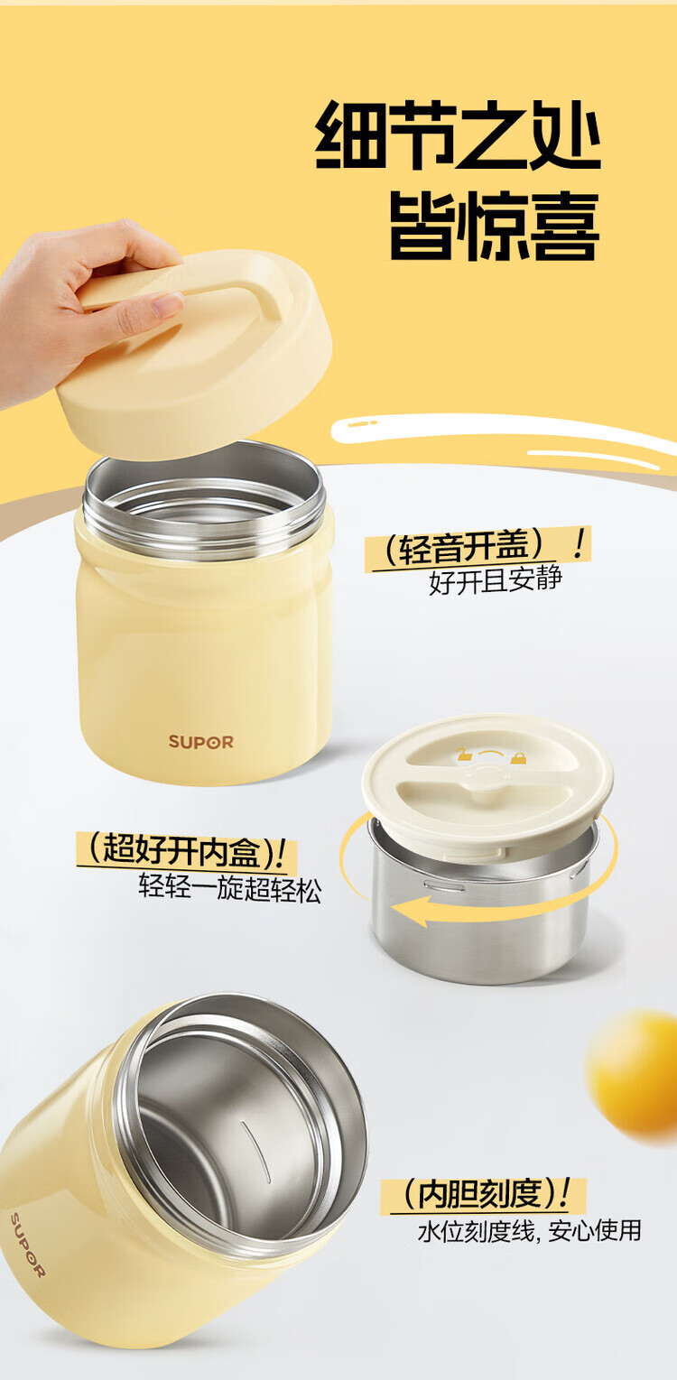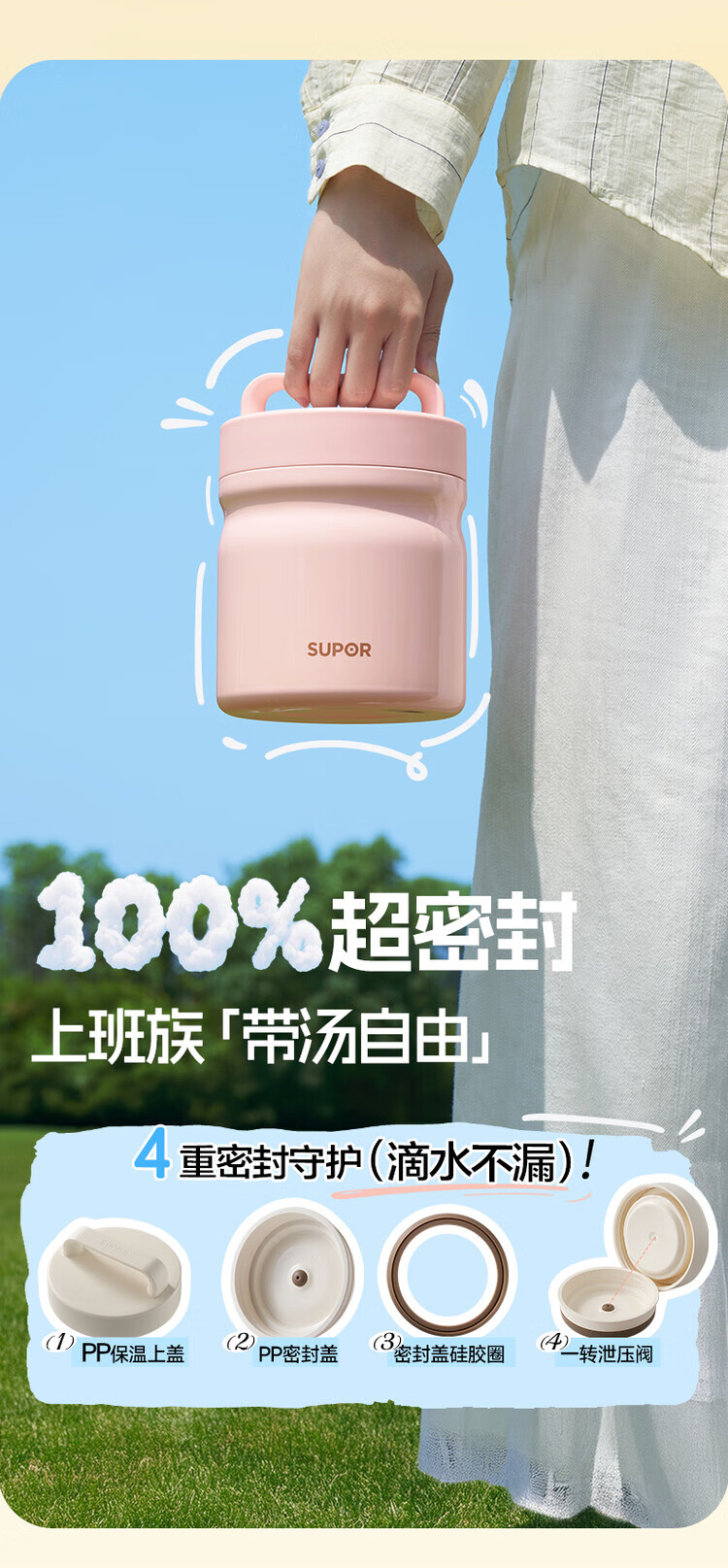 SUPOR Insulated Lunch Box for Office Workers and Female Students with Rice Stainless Steel 24-Hour Extra Long Insulated Bucket 2025 New Style Undivided 1000mL Pearl White Super Insulated Super Sealed Warranty