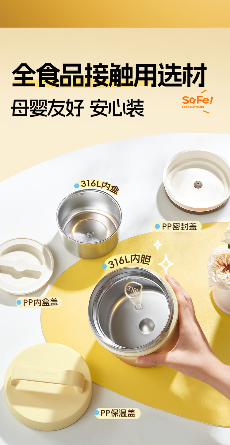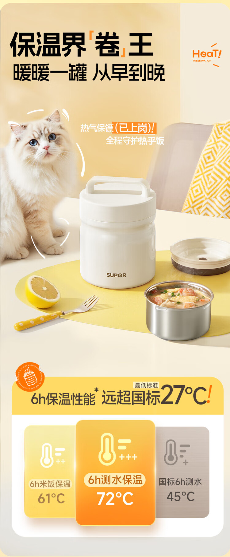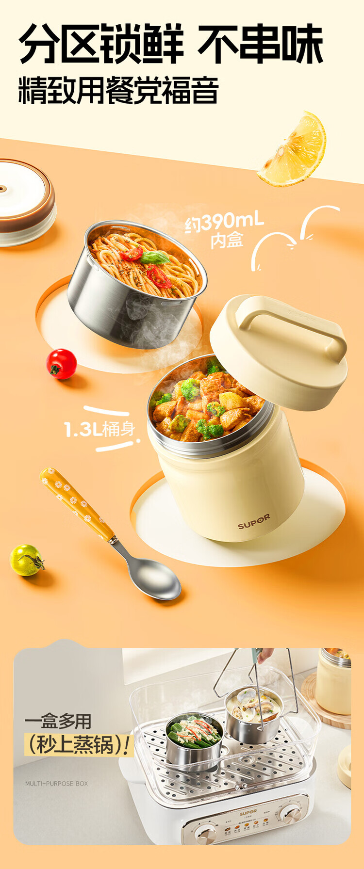 SUPOR Insulated Lunch Box for Office Workers and Female Students with Rice Stainless Steel 24-Hour Extra Long Insulated Bucket 2025 New Style Undivided 1000mL Pearl White Super Insulated Super Sealed Warranty
