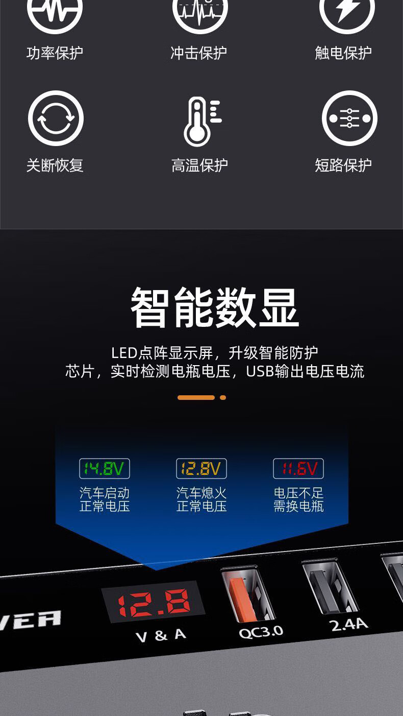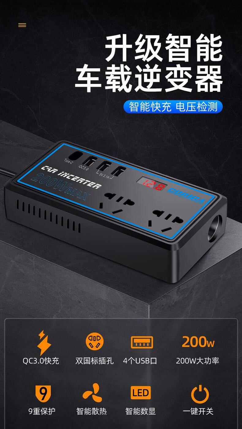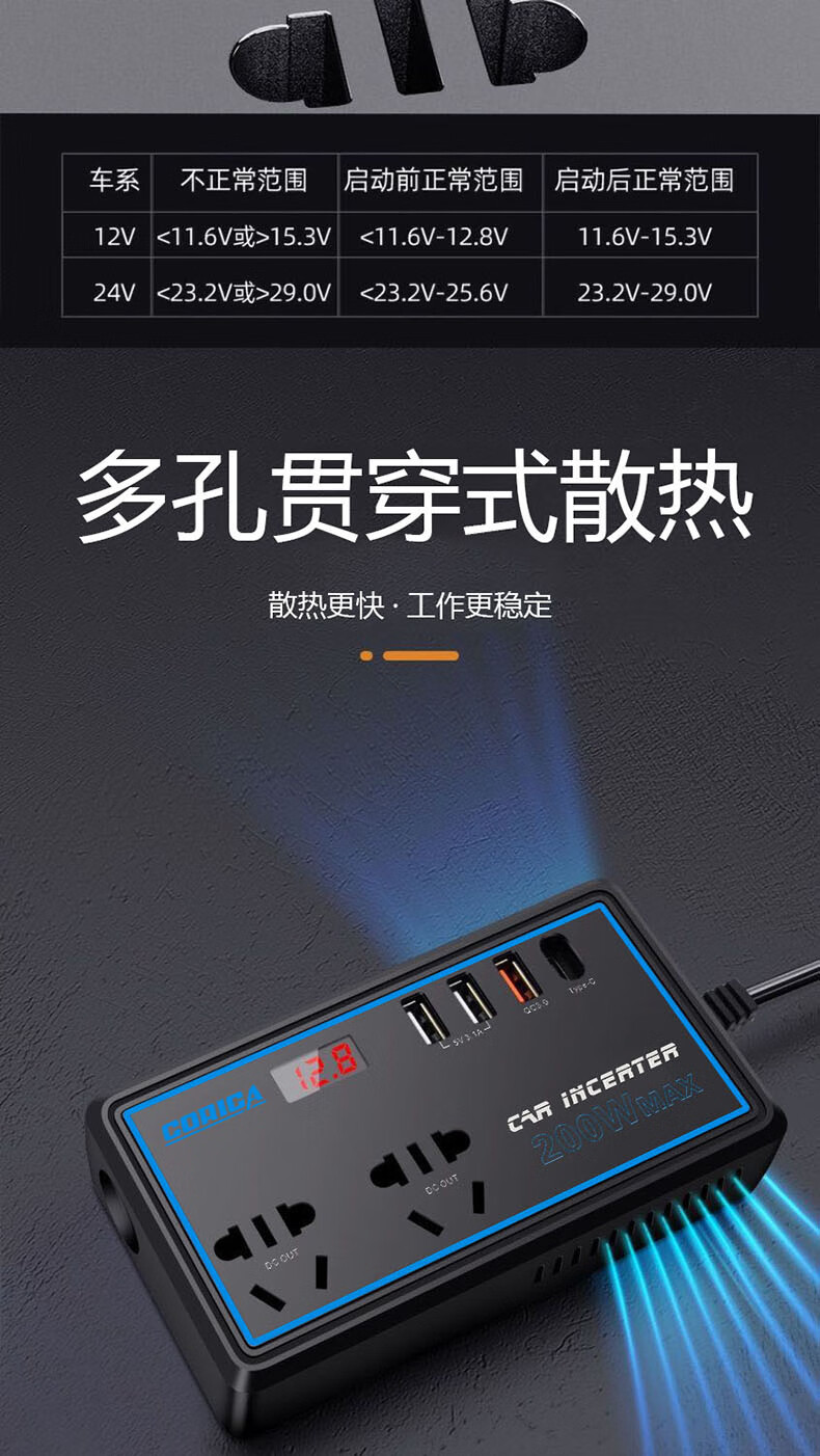 Car inverter high power 12v24v universal cigarette lighter truck transformer multi-function power converter 12v24v universal 200w inverter