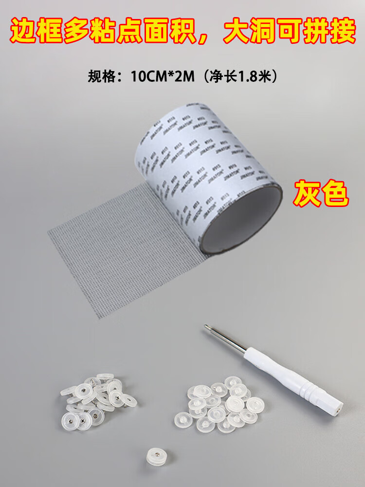 Fengxi screen window edge frame repair patch repair subsidy repair window screen holes screen mesh sewing to prevent mosquitoes 10cm*1.85m gray mesh + about 40 locking nails