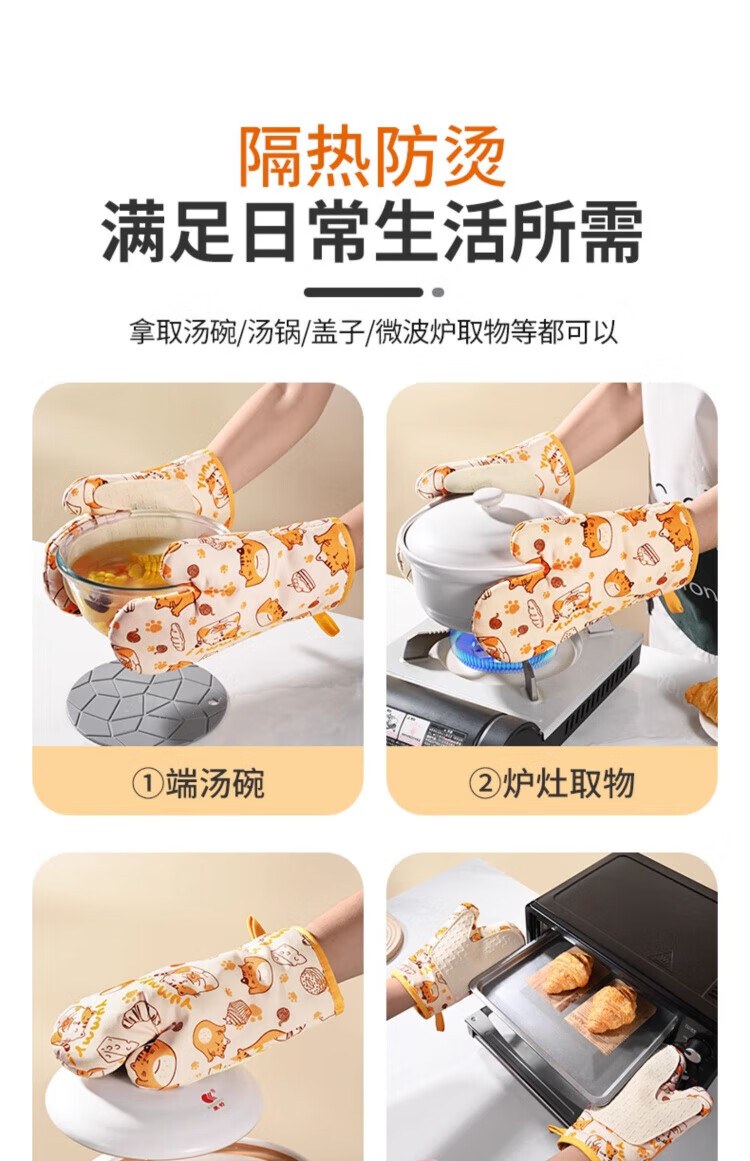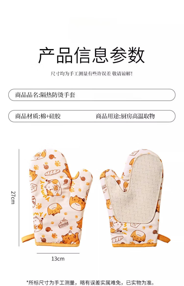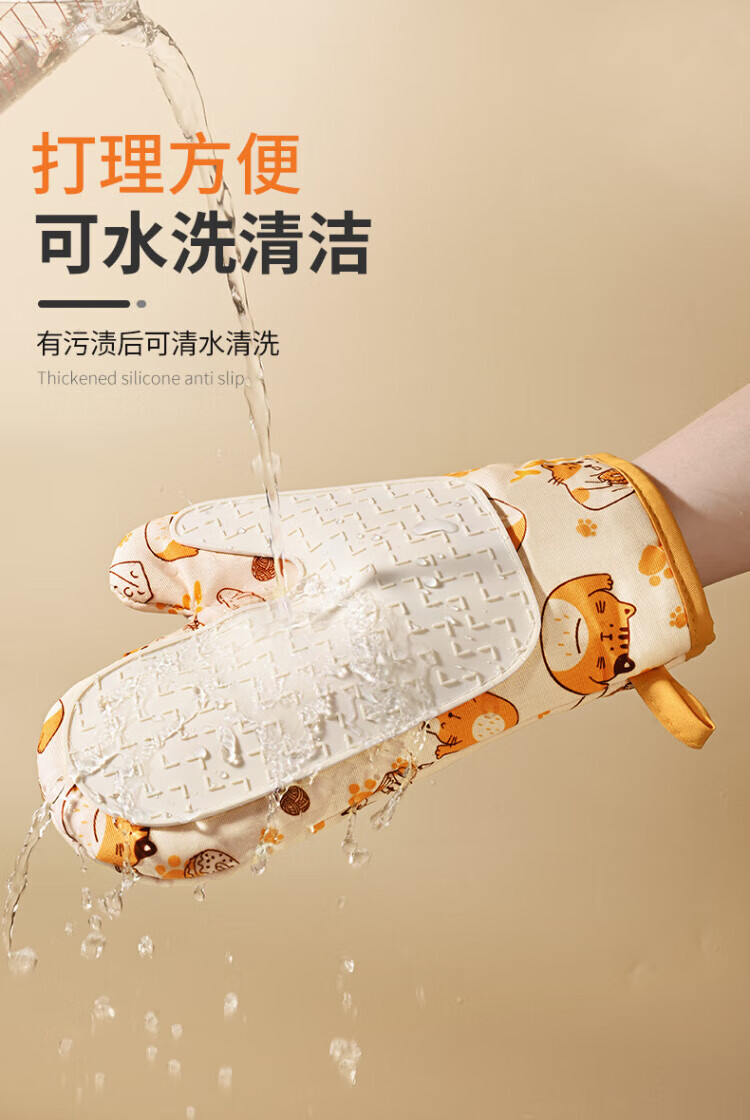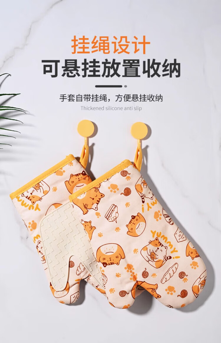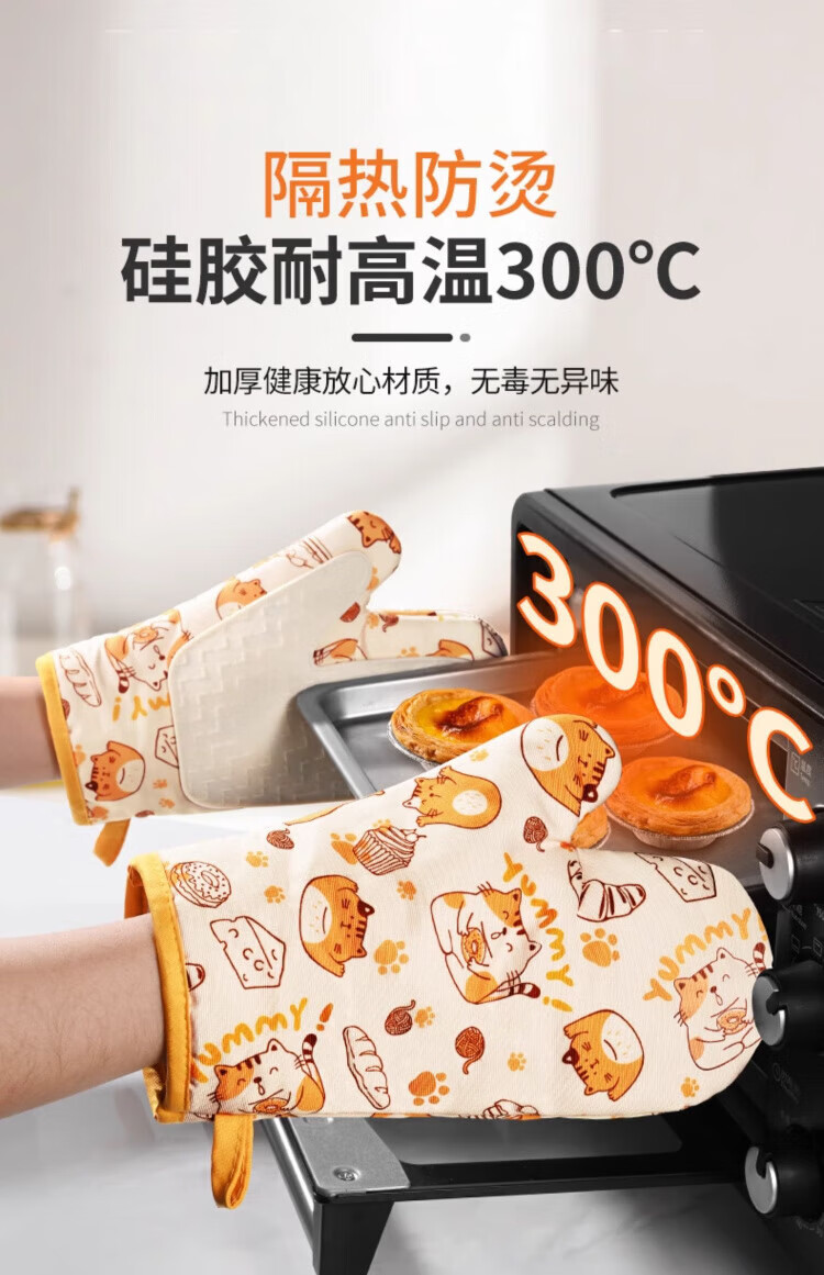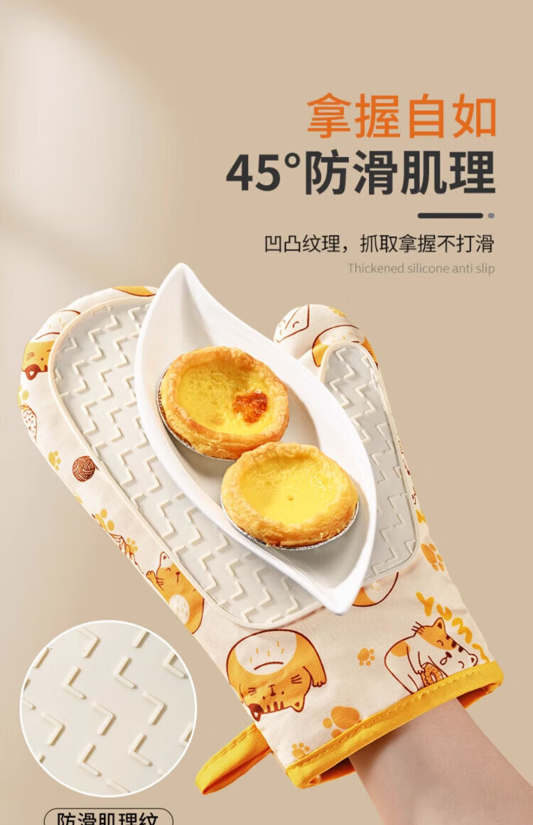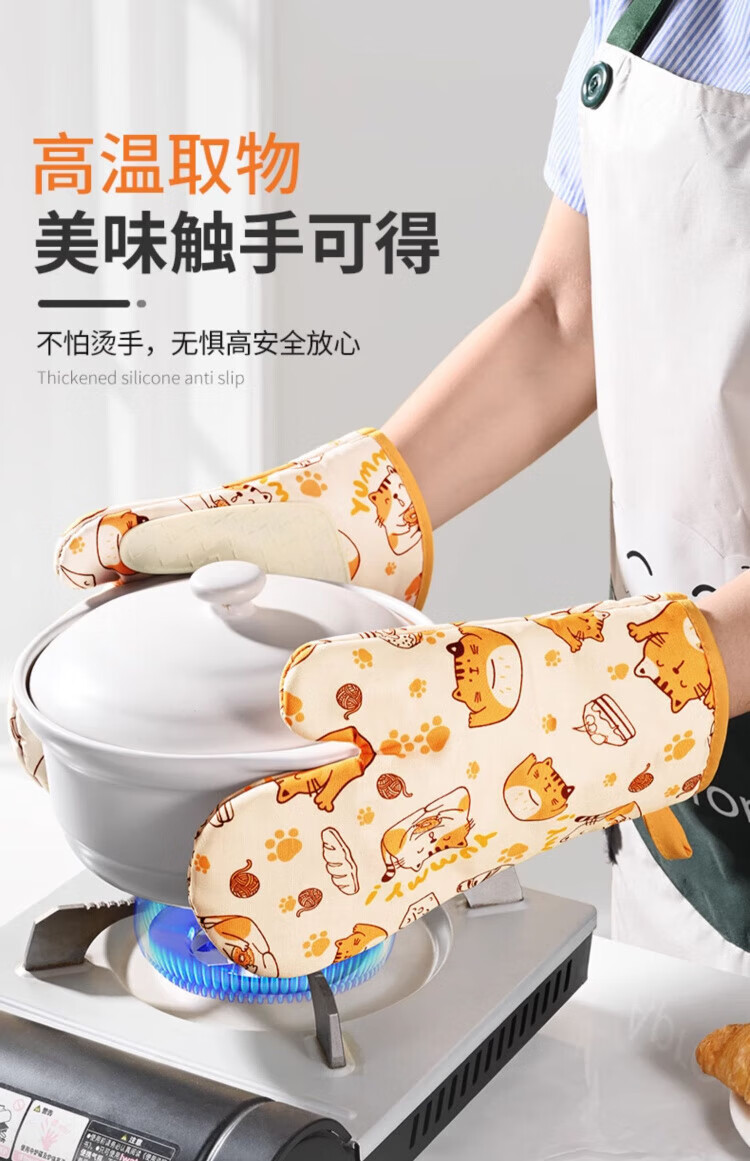Pomelo insulation gloves, high temperature resistant, anti-scalding, thickened silicone kitchen microwave oven special baking casserole non-slip gloves, cat left hand style