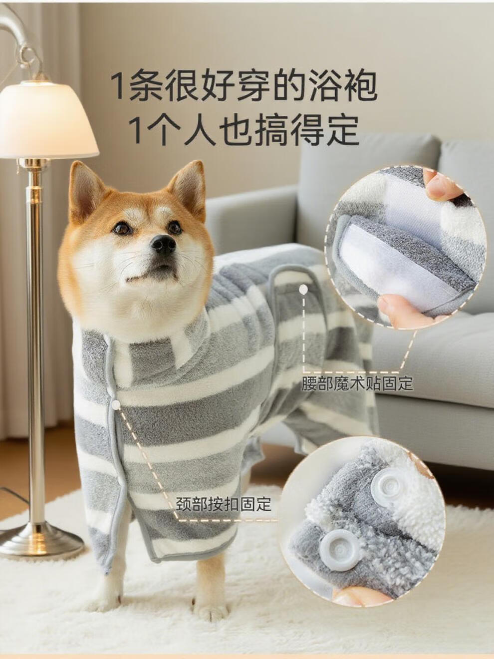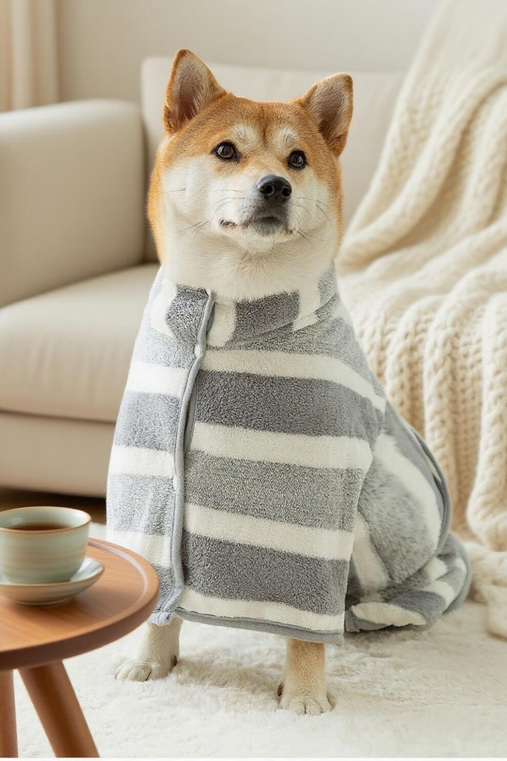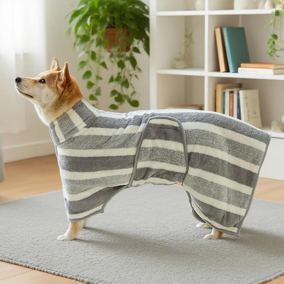 Pet-free dog bathrobe, fully wrapped quick-drying absorbent bath towel, cat Golden Retriever Shiba Inu bath towel, pet quick-drying towel, L size, gray and white stripes (60-90 Jin Jin equals within 0.5 kg), universal for dogs and cats
