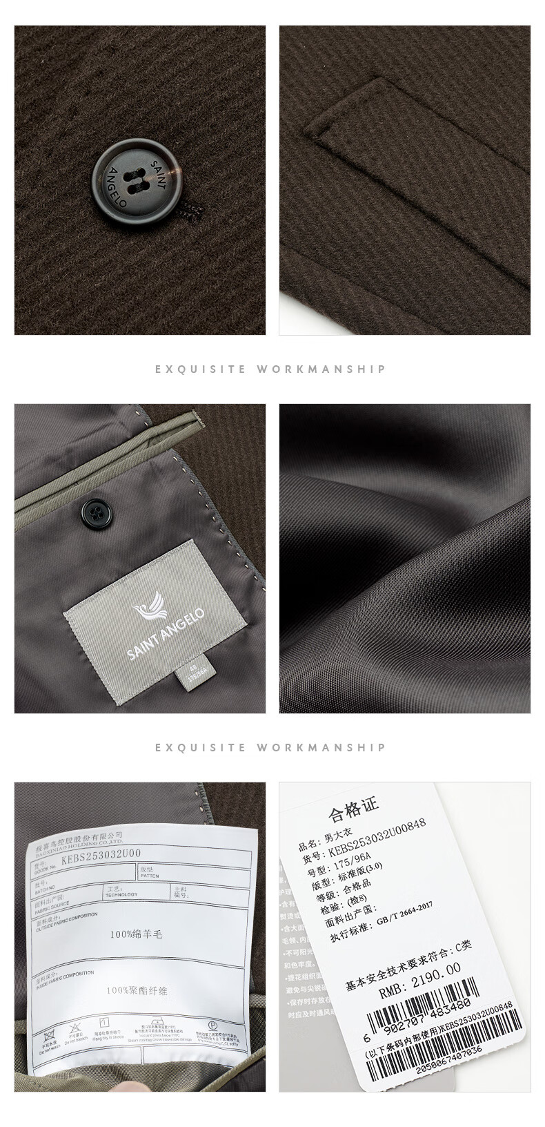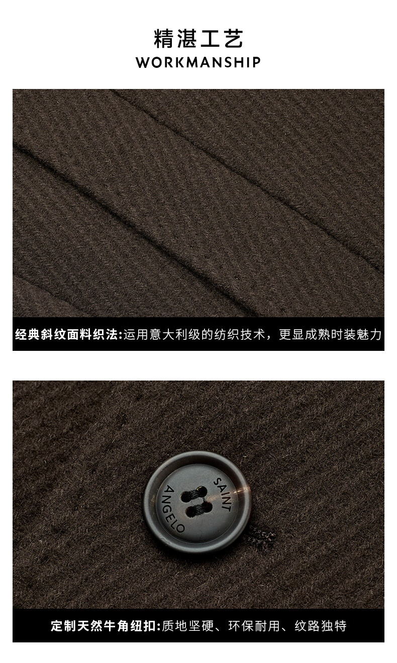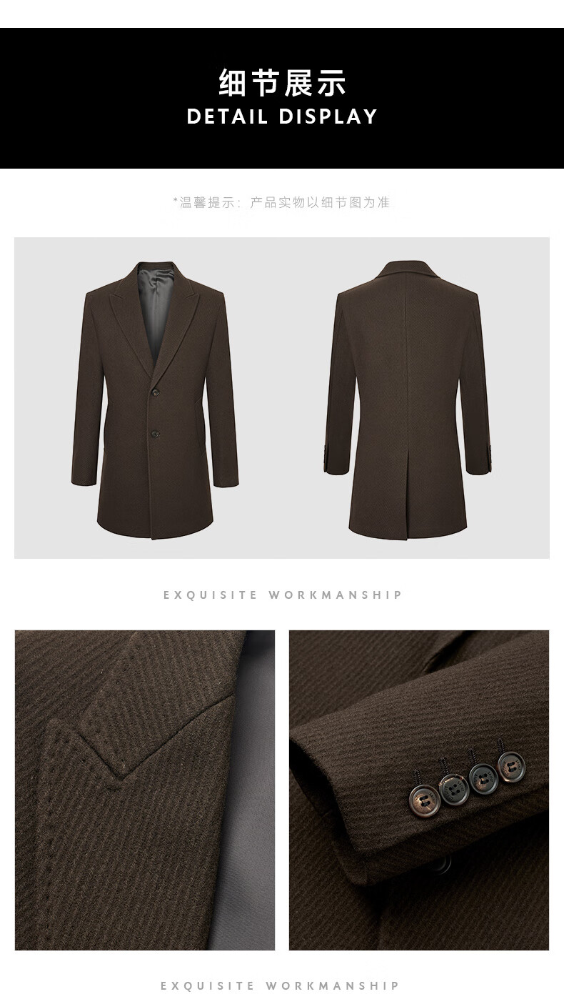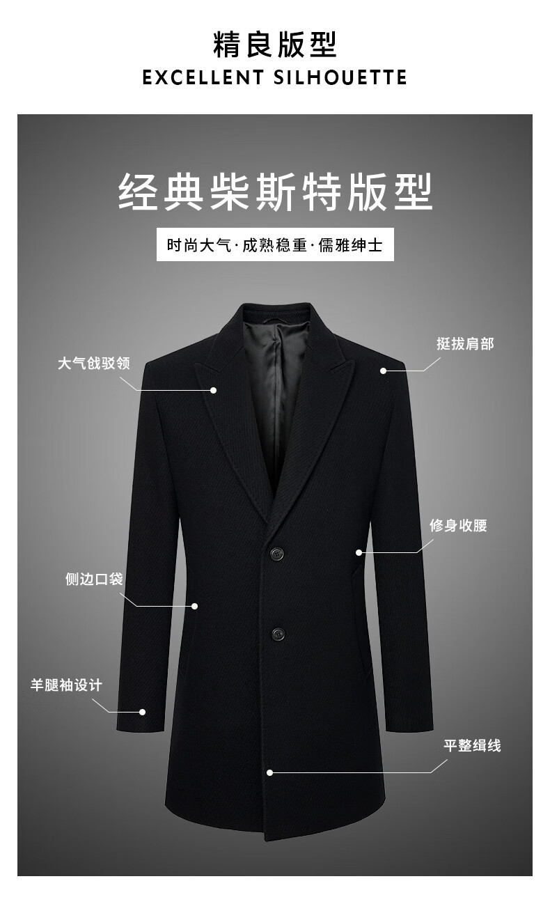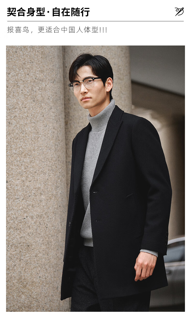 Angel Bird Coat Men's Chester 100% Wool Autumn and Winter Men's Woolen Coat Business Casual Mid-length Jacket Obsidian Black XL -50(180/100)
