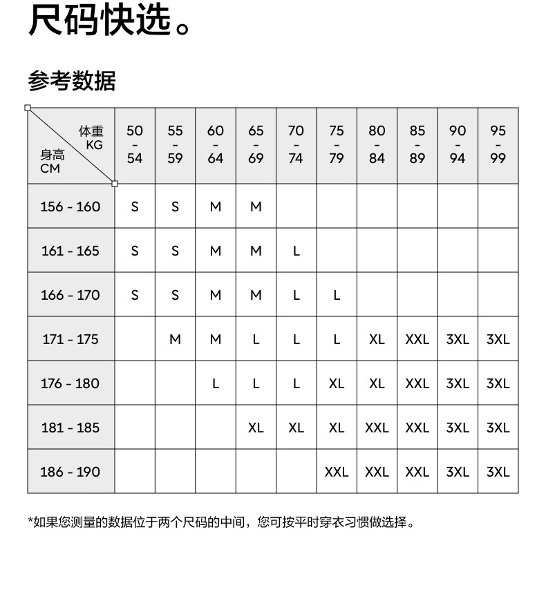 China (cm) 160-165/84-86 165-170 / 88-90 167-172 / 92-96 168-173 / 98-102 170-176 / 106-110