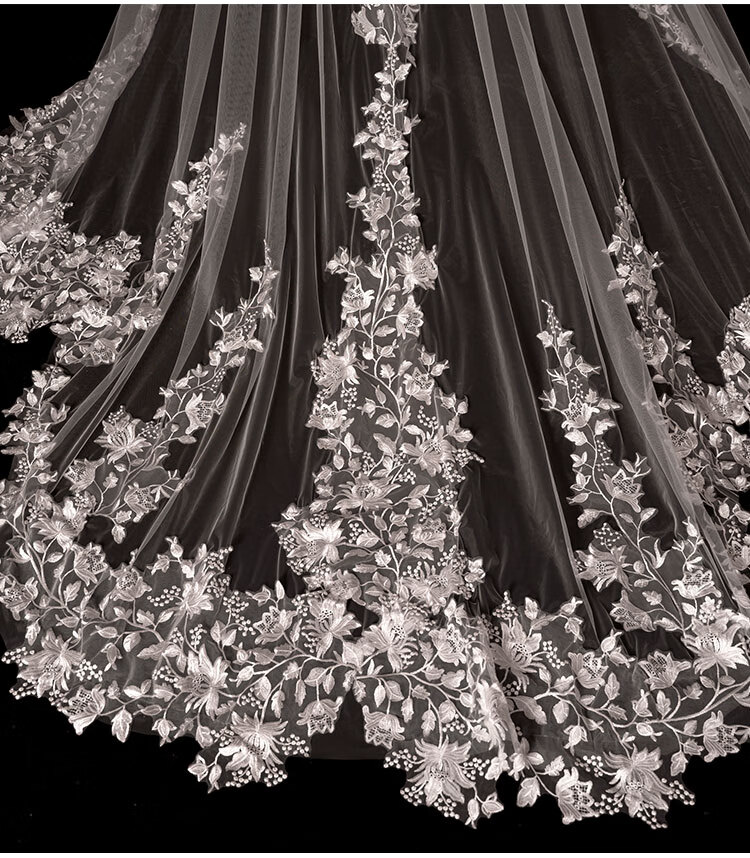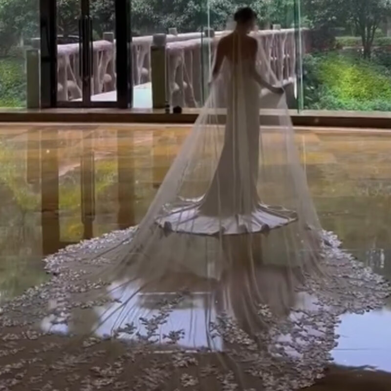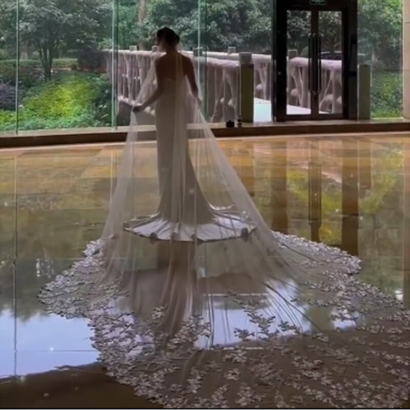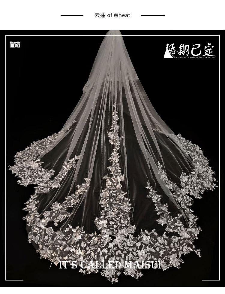 Tongrubi Wedding Bridal Veil Lace Trimmed Long Trailing New Hairdress Forest Style Wedding Super Fairy Big Trailing Shadow White Extra Long Super Fairy Trailing Big Veil YC-617