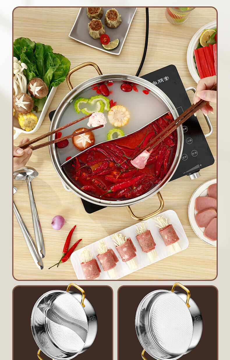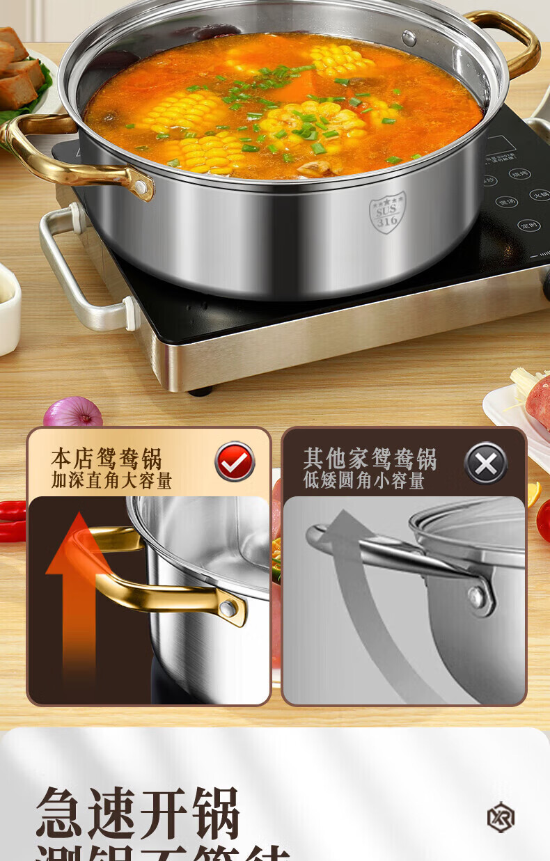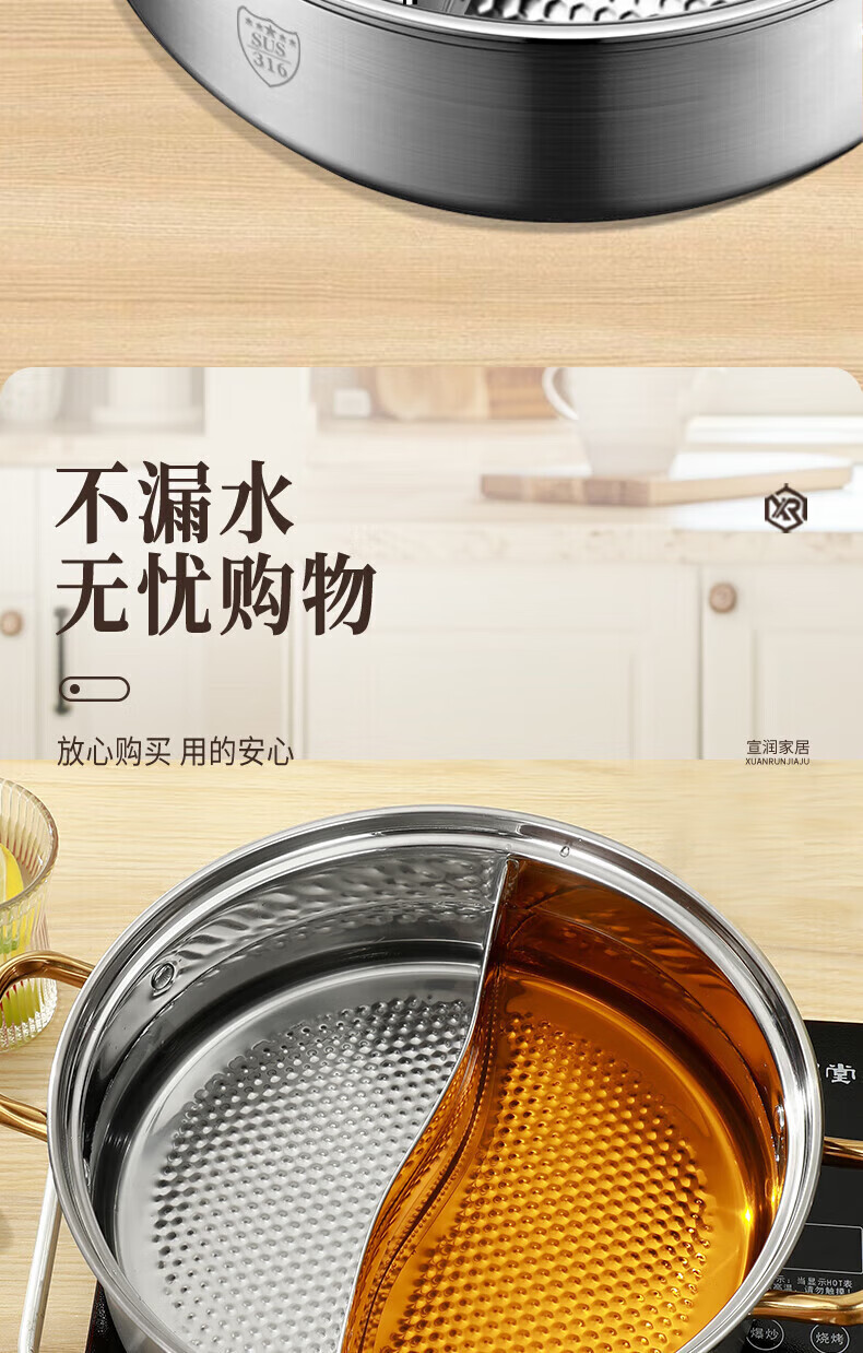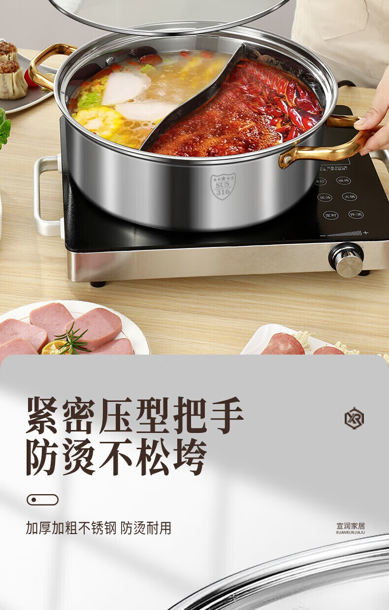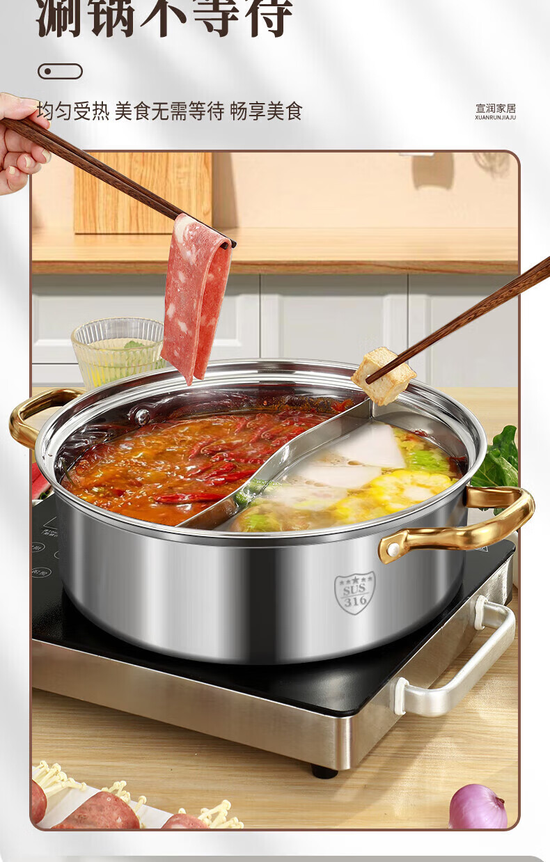 Fat Donglai Food Grade 316 Stainless Steel Yuanyang Pot Hot Pot Household Induction Cooker Special Pot Fat Donglai Same Style Yuanyang Pot 6-10 People Free Soup Spoon Colander_ 32cm
