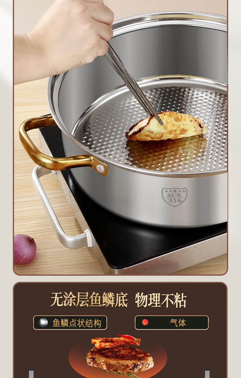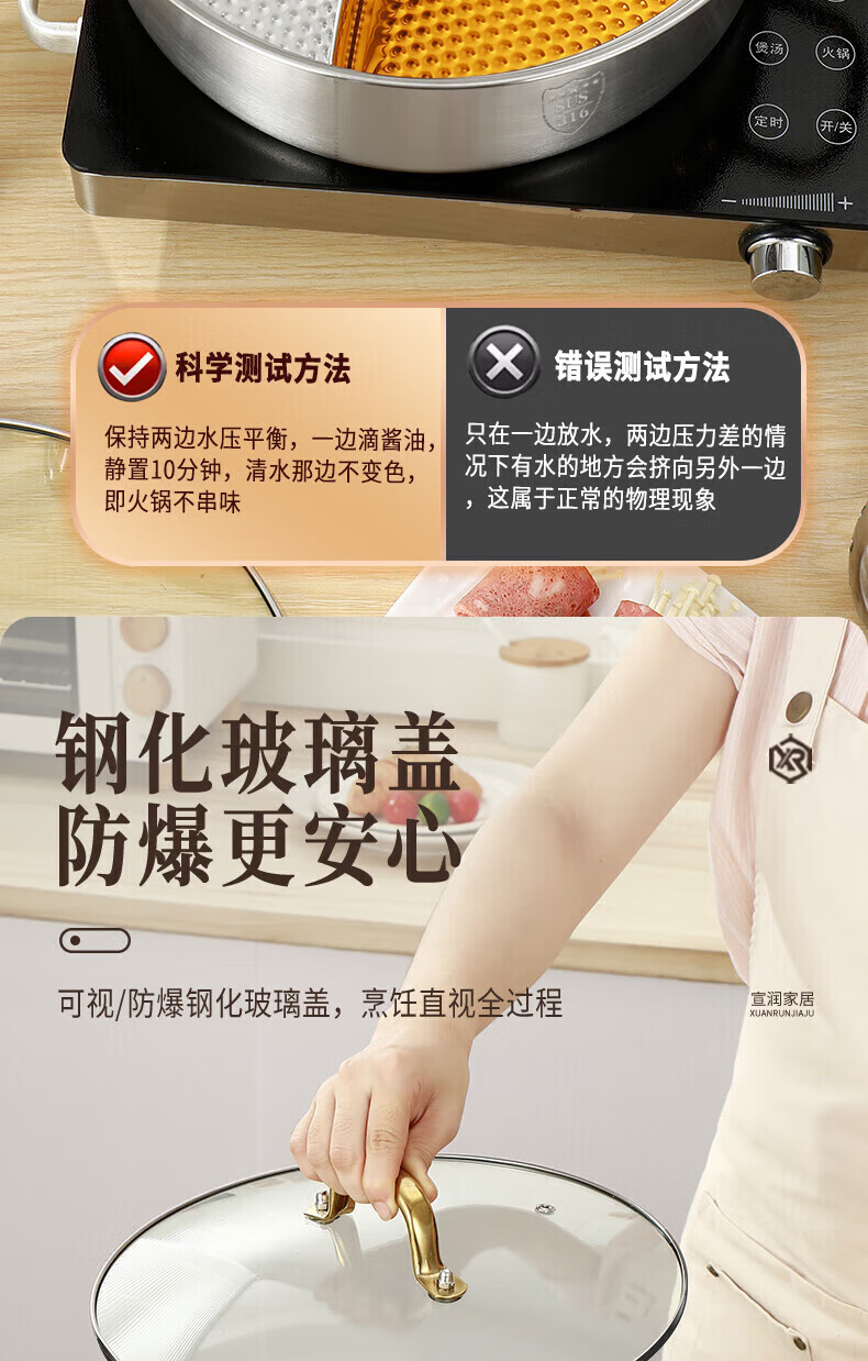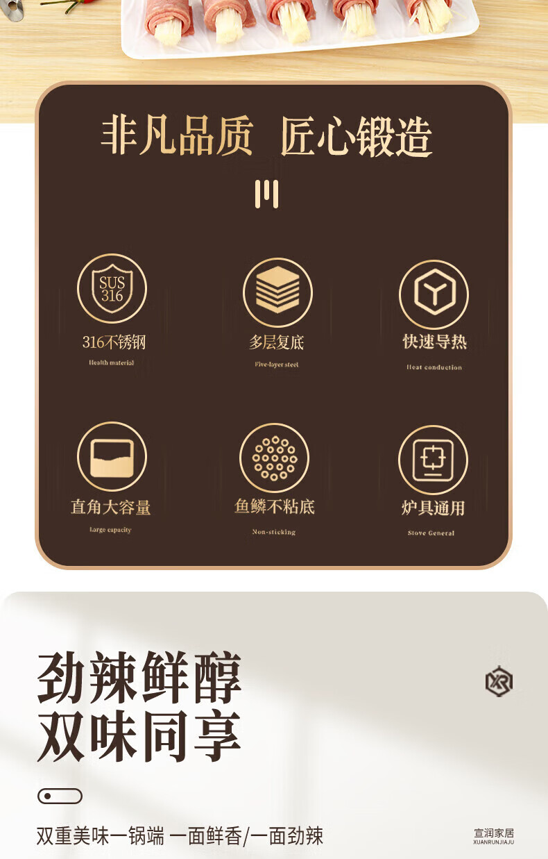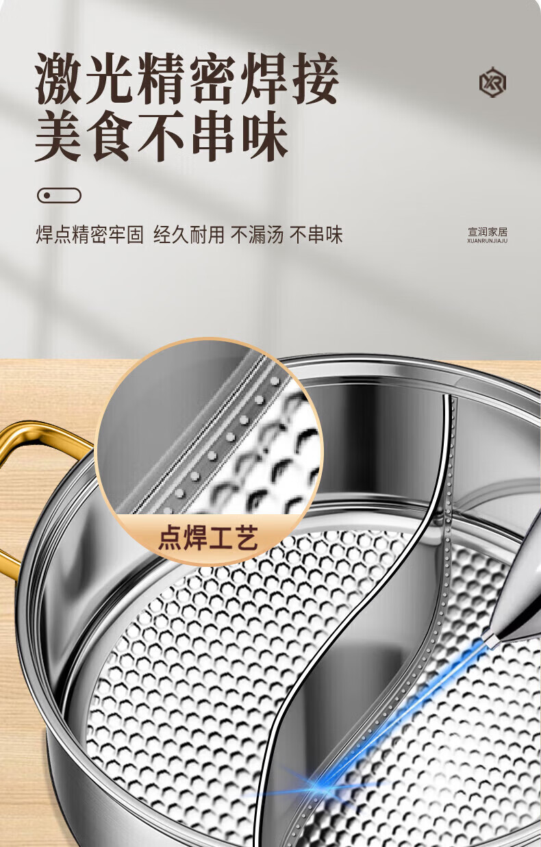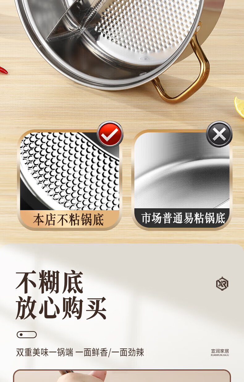 Fat Donglai Food Grade 316 Stainless Steel Yuanyang Pot Hot Pot Household Induction Cooker Special Pot Fat Donglai Same Style Yuanyang Pot 6-10 People Free Soup Spoon Colander_ 32cm