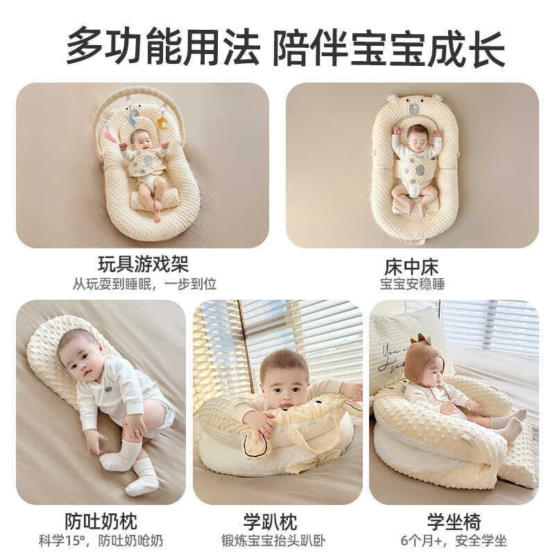 Shanbang Bed-in-Bed Newborn Baby Startled Baby Soothing Anti-Stress Baby Slope Anti-Spitting Magic Tool Sleeping Crib-in-Bed Single Bed Mi Xiaoxiong