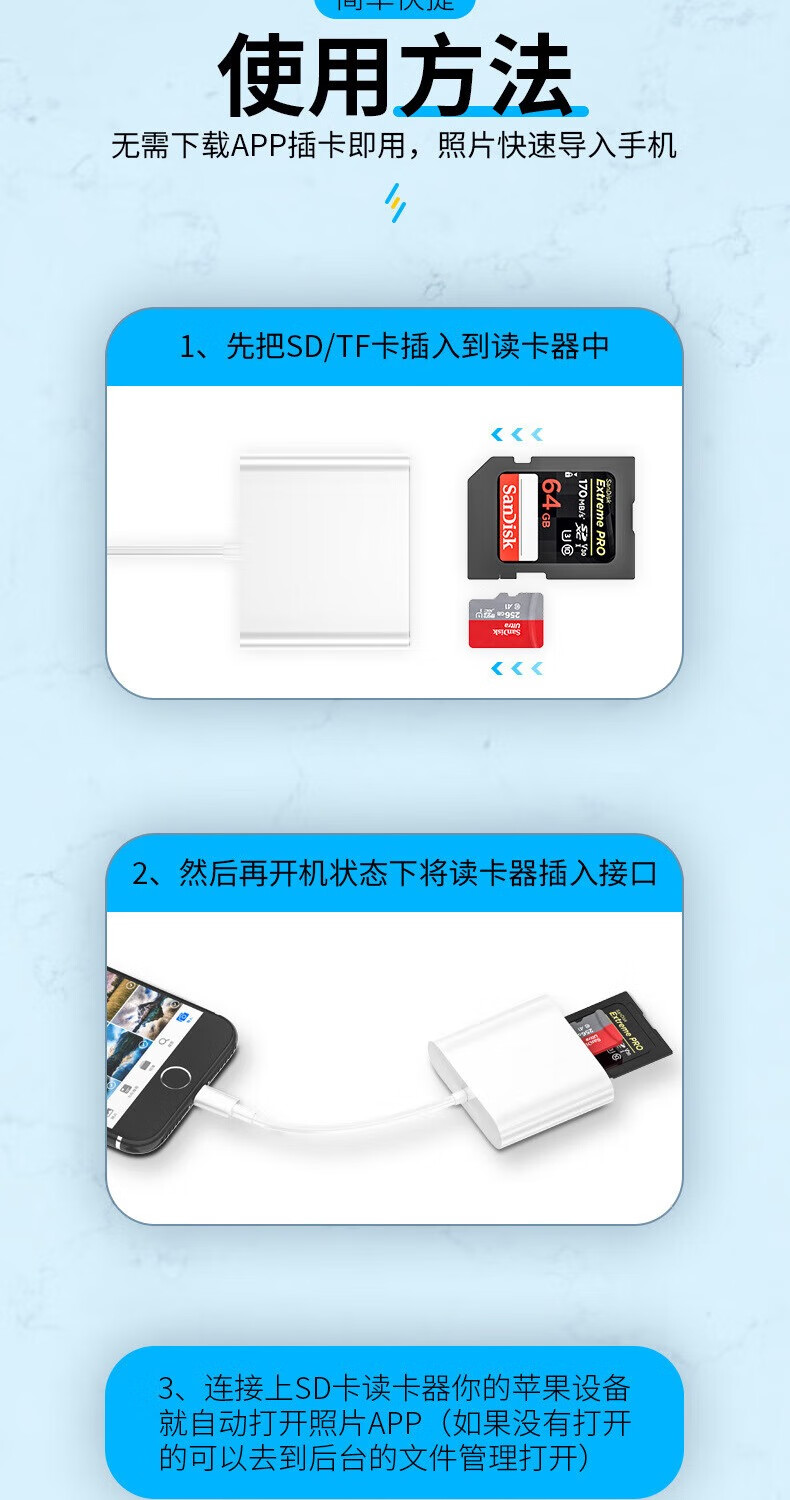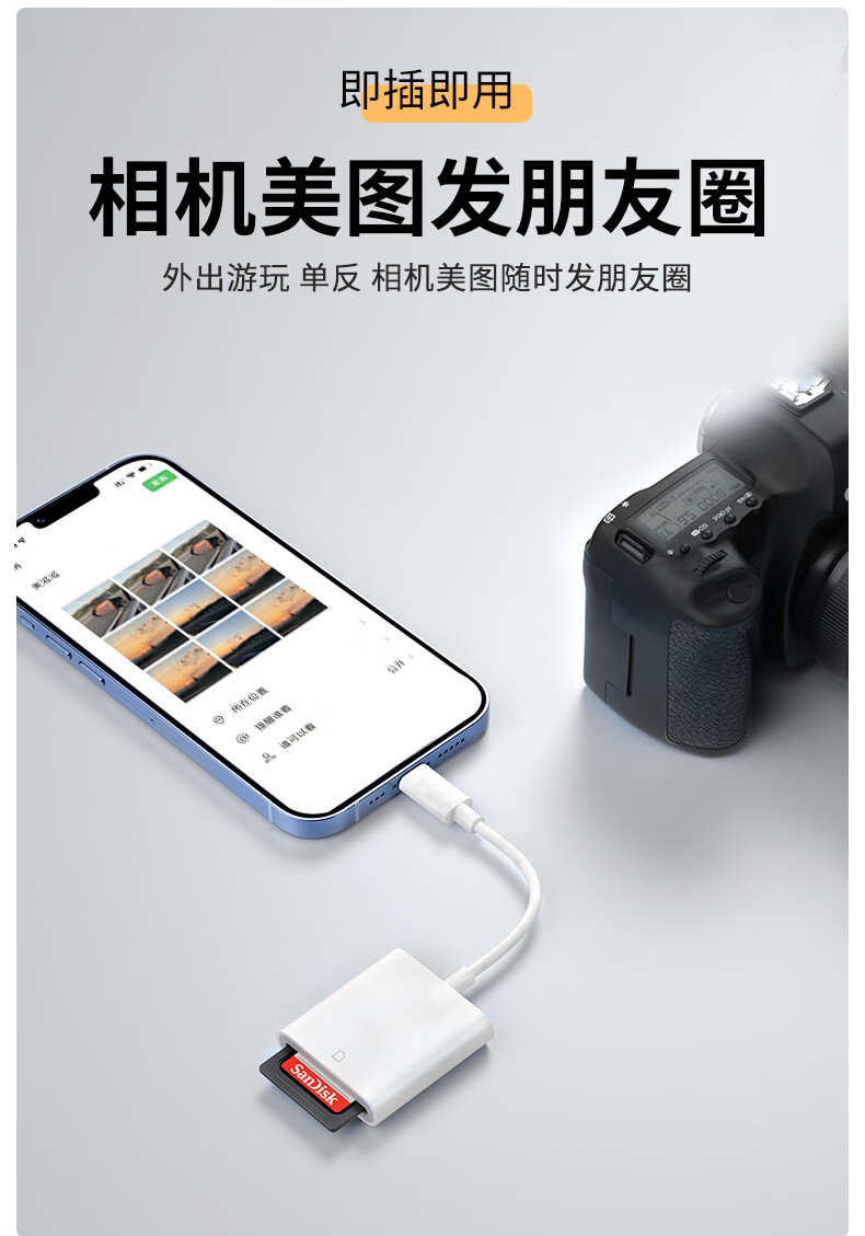 Camera card reader sd card suitable for Apple Huawei mobile phone Sony Canon Nikon connection memory direct OTG transmission line sony conversion typec head iPhone port Type-C interface three-in-one supports SD/TF card/U disk