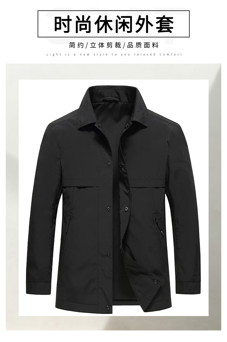 BOSS business casual jacket men's 2025 new autumn single-breasted high-end brand middle-aged men's thin cotton jacket black 4XL 195 suitable for 185-205Jin Jin equals 0.5 kg