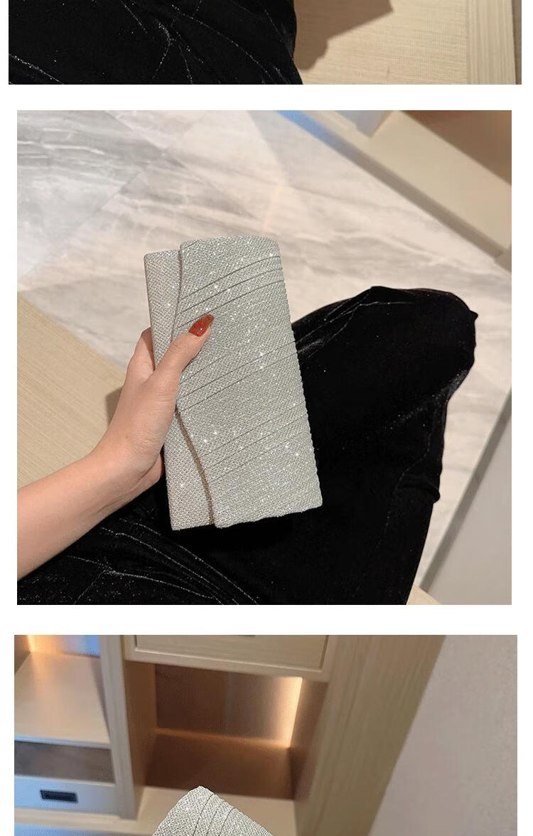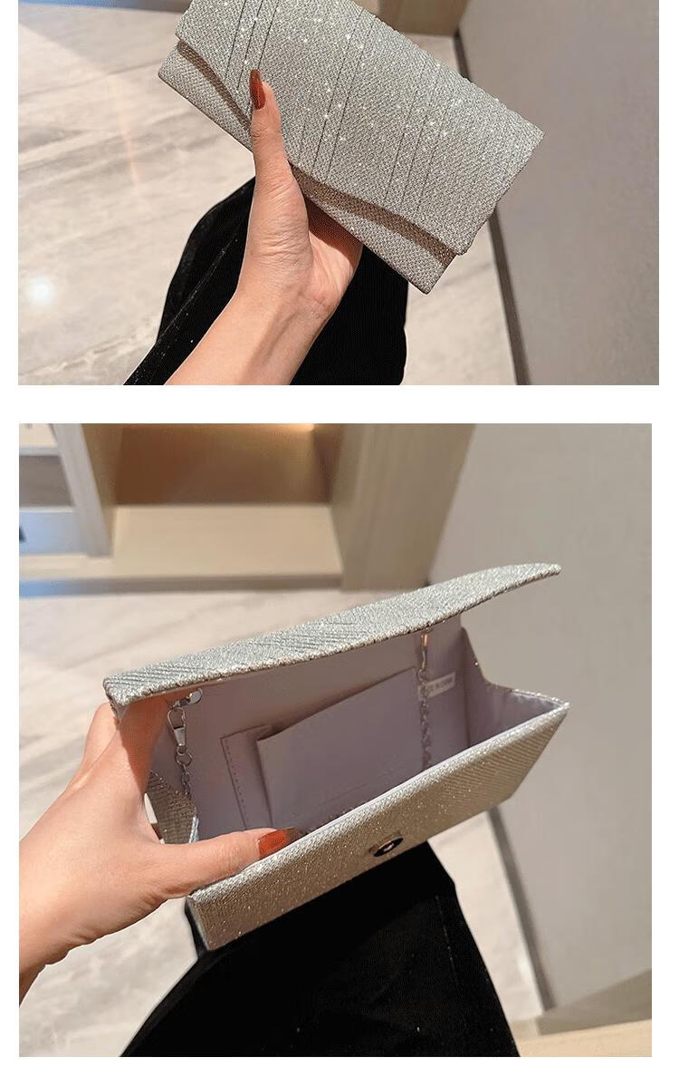 CAMPUSKITTEN new sparkling banquet clutch fashion bag envelope dinner bag dress bag diagonal chain small bag small silver bag