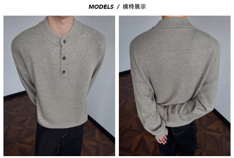 Pugos Henry collar half turtleneck sweater for men in autumn trendy American loose sweatshirt jacket lazy style high-end sweater black XL