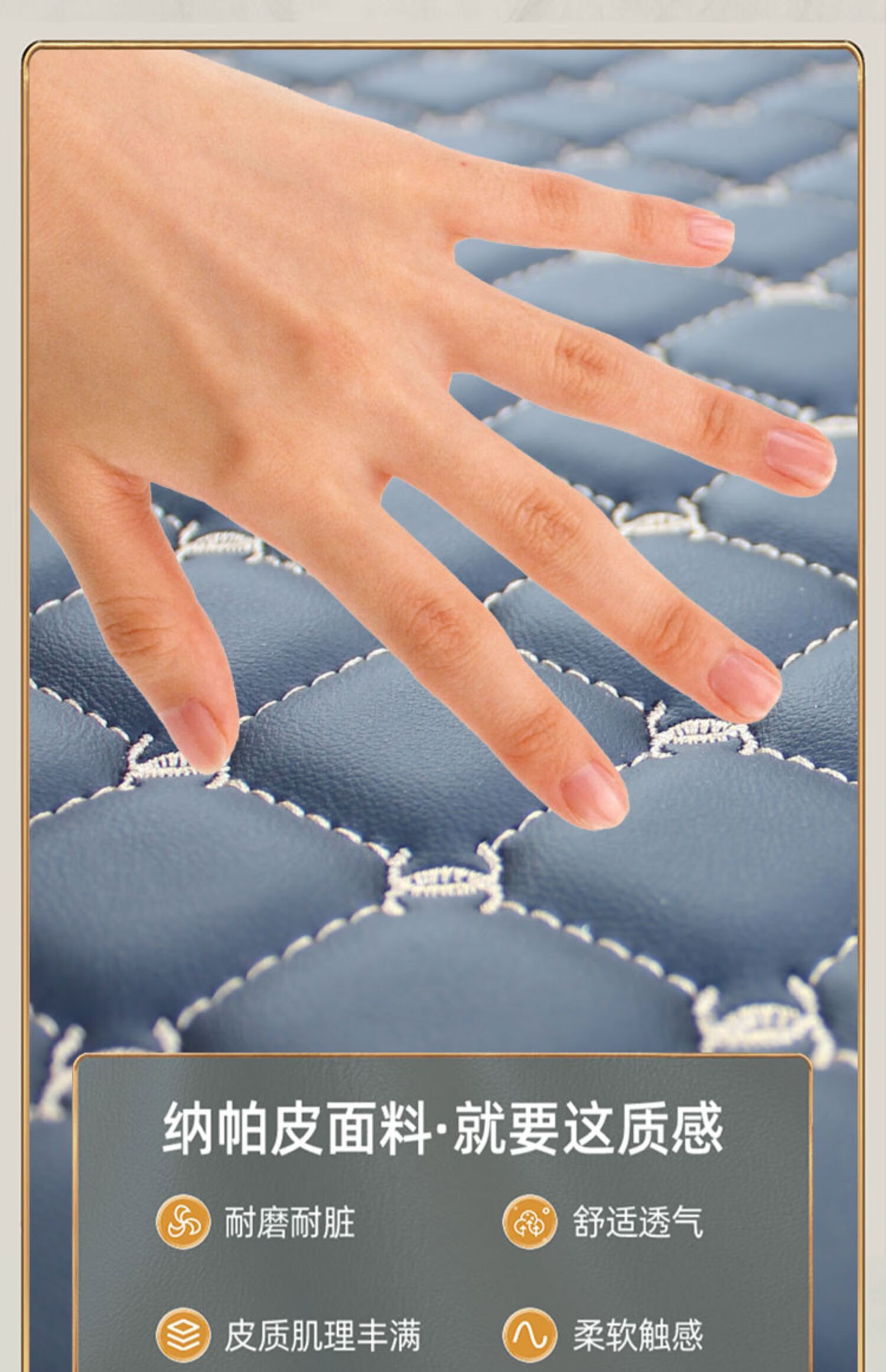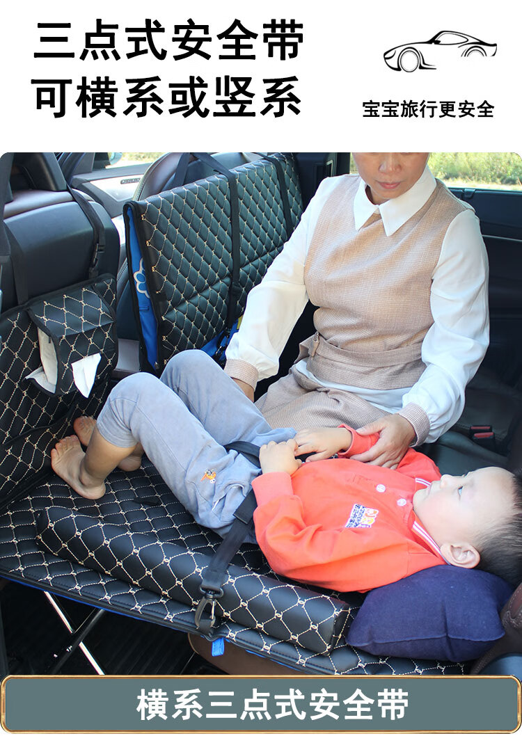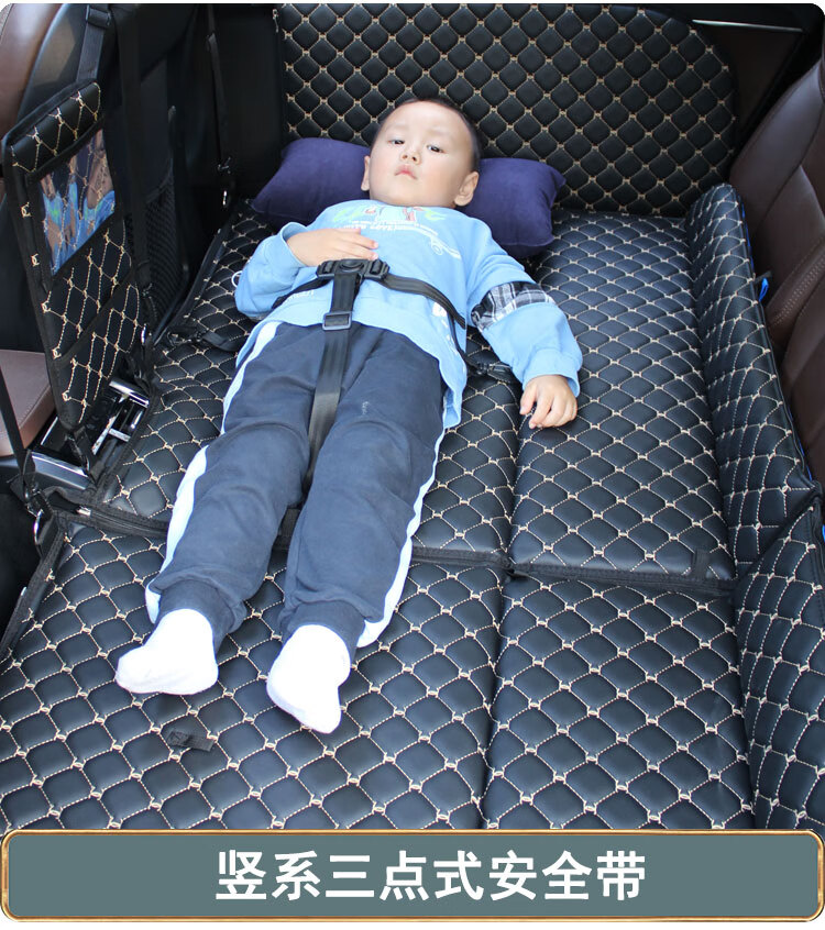 Car rear seat folding bed, car rear sleeping mat, children's car travel mattress, stroller sleeping device, double-sided standard model, French classic leather black/blue fat