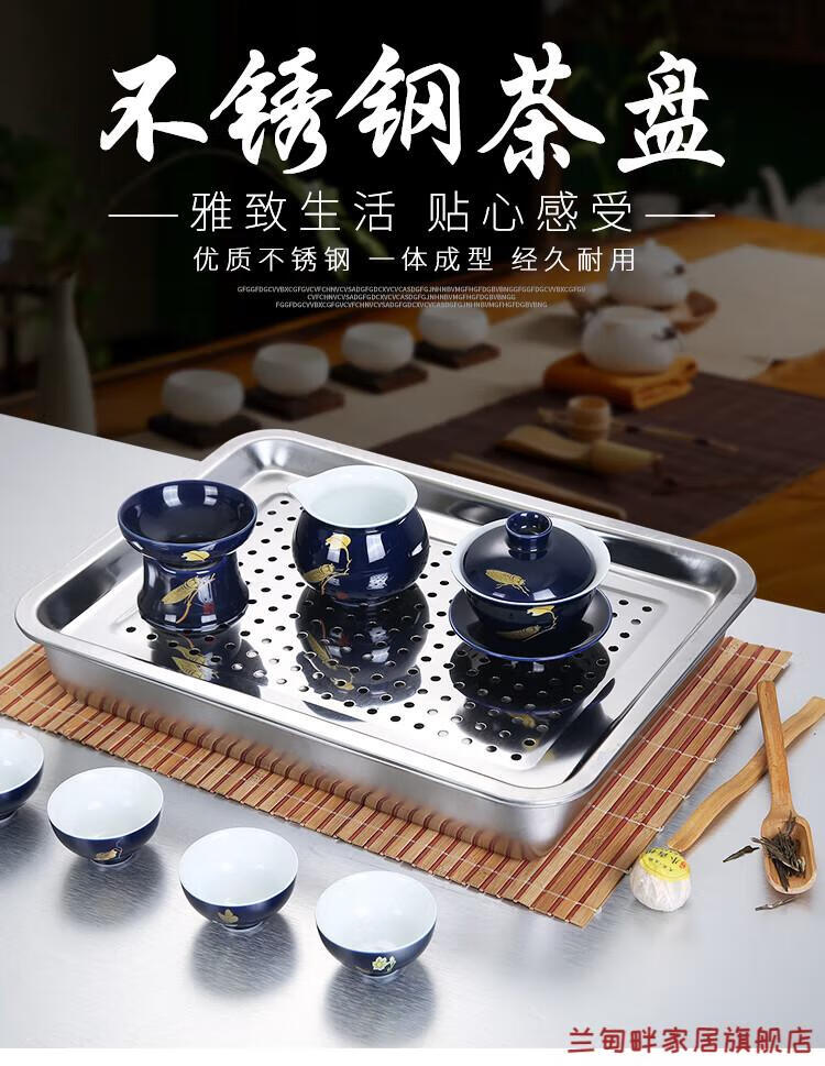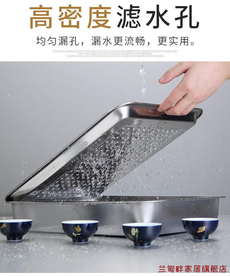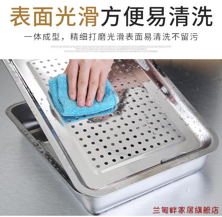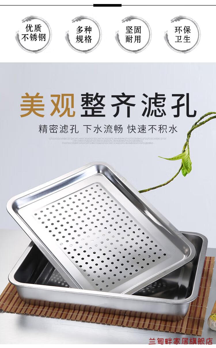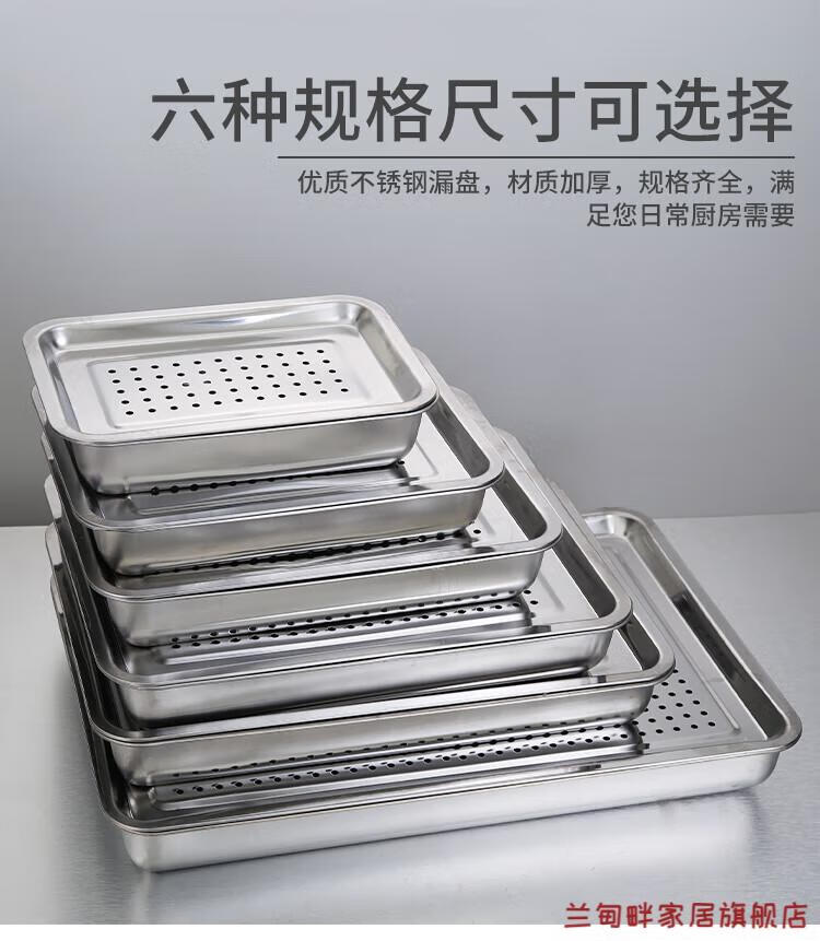 Lu Xuju stainless steel leaking tray rectangular tea tray household dumpling draining tray oil leaking tray filter leaking water draining 7cm40*30 shallow draining tray + deepening chassis set