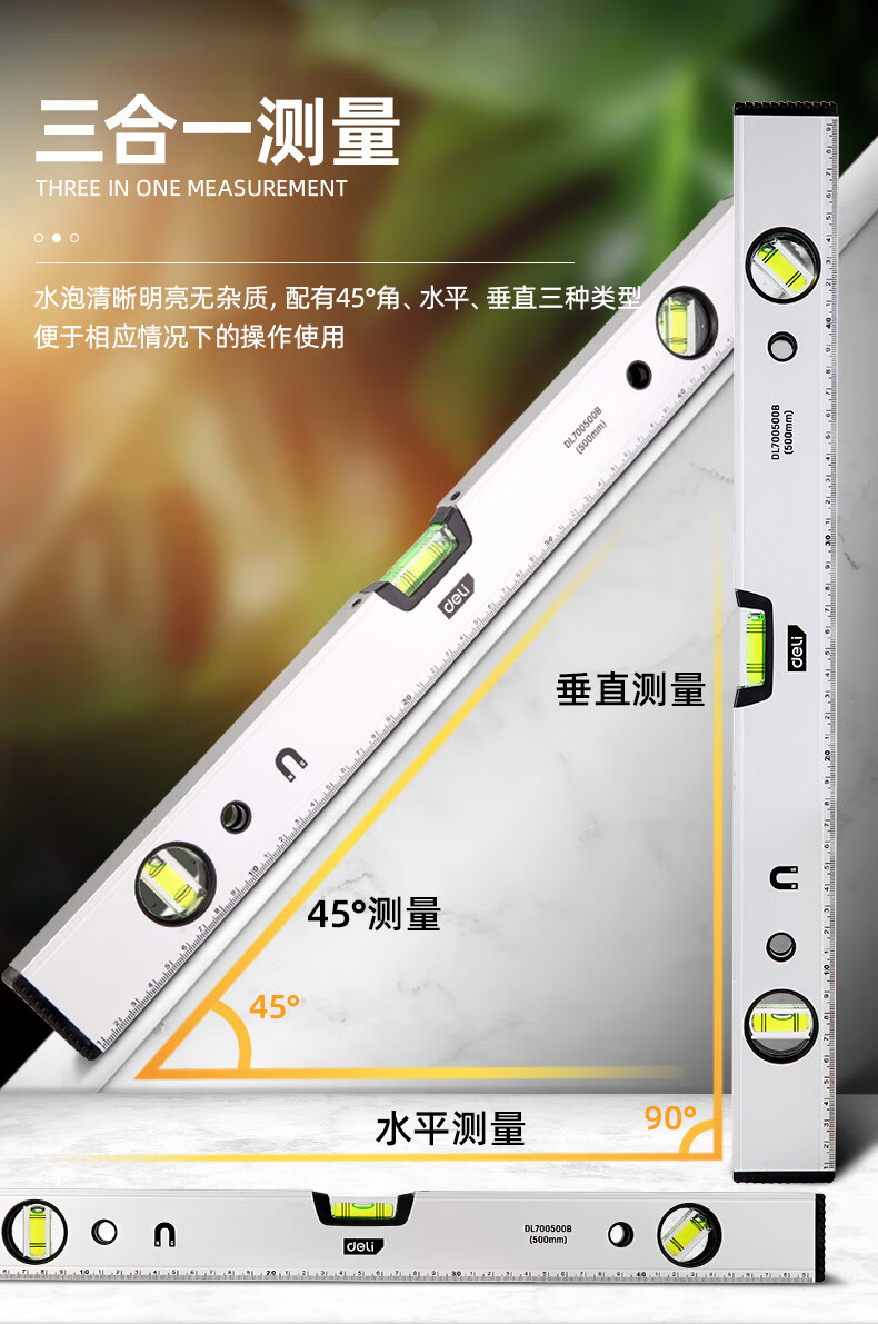 Deli Deli precision milling bottom mini level ruler high-precision flat horizontal balance ruler magnetic level fan small household electronic digital display 600mm