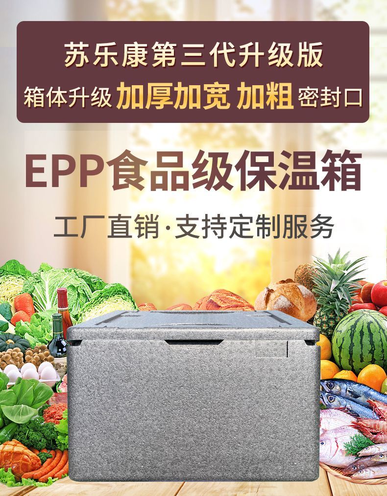 Sulekang epp food-grade take-out insulated foam box extra-large commercial fast food stall delivery 62L gray thickened new model (bare box) with lid