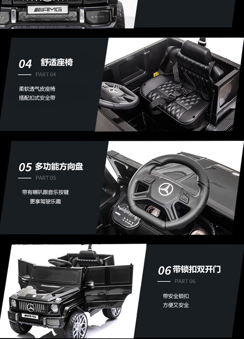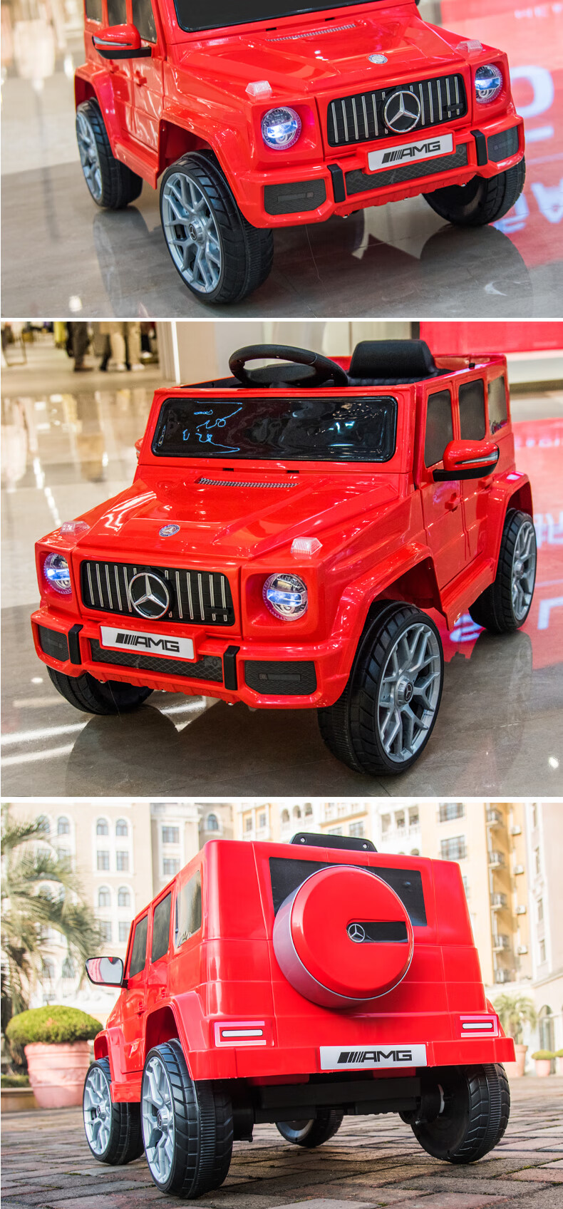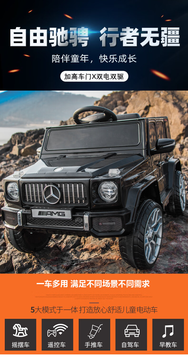 Children's electric car four-wheel toy car can sit on four-wheel drive off-road vehicle for boys, girls and babies with remote control car red + dual drive + leather seat + heightened double doors on both sides remote control + swing
