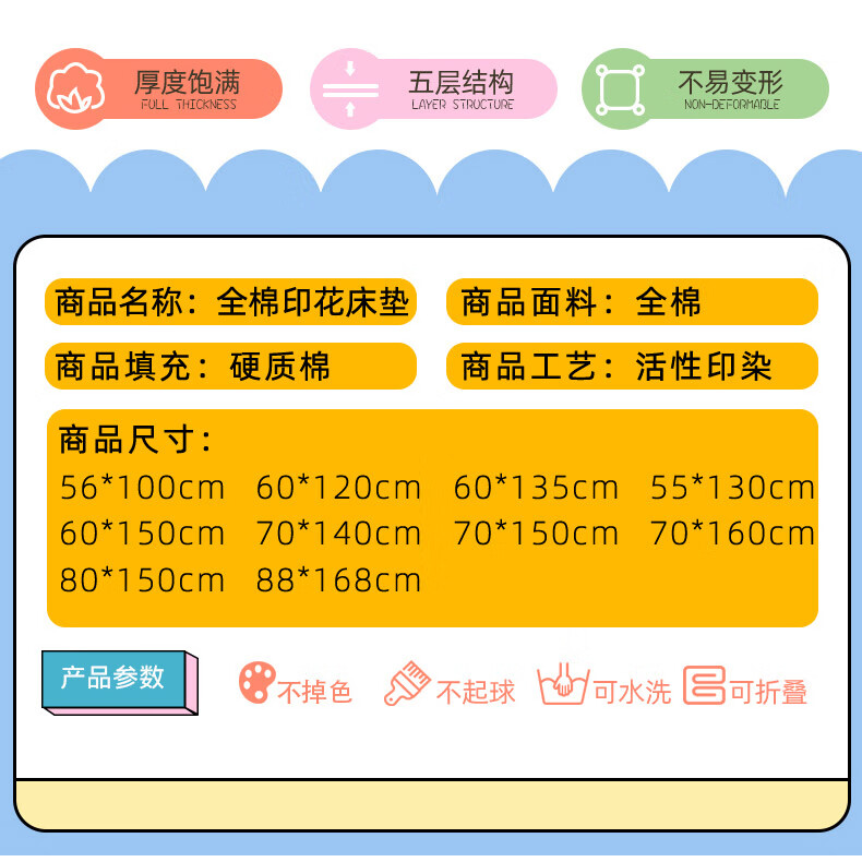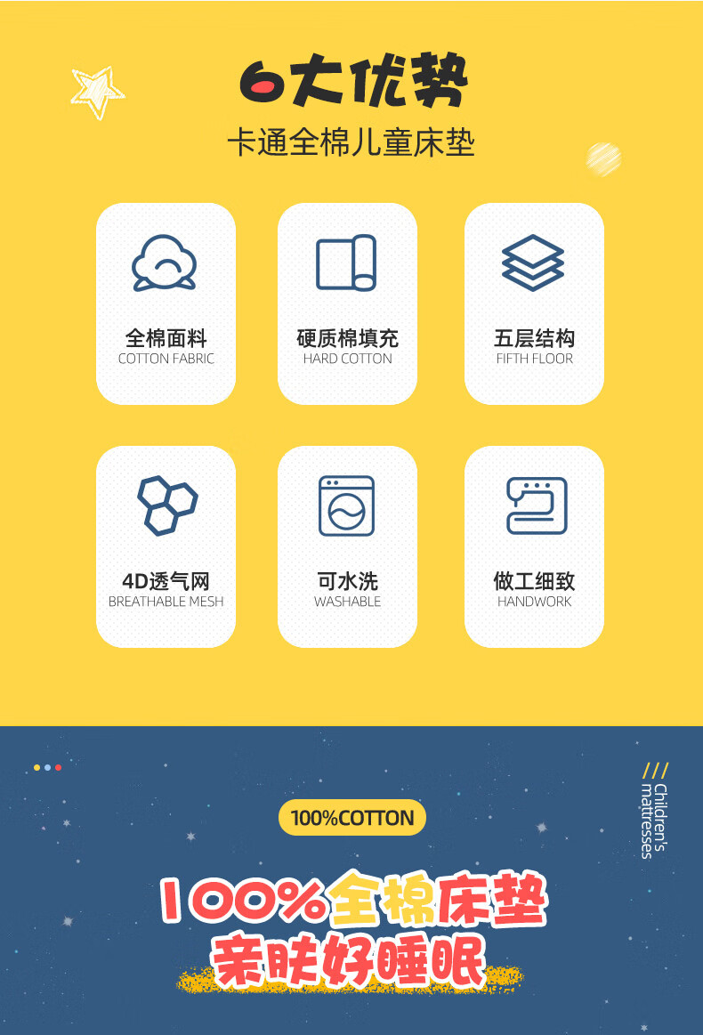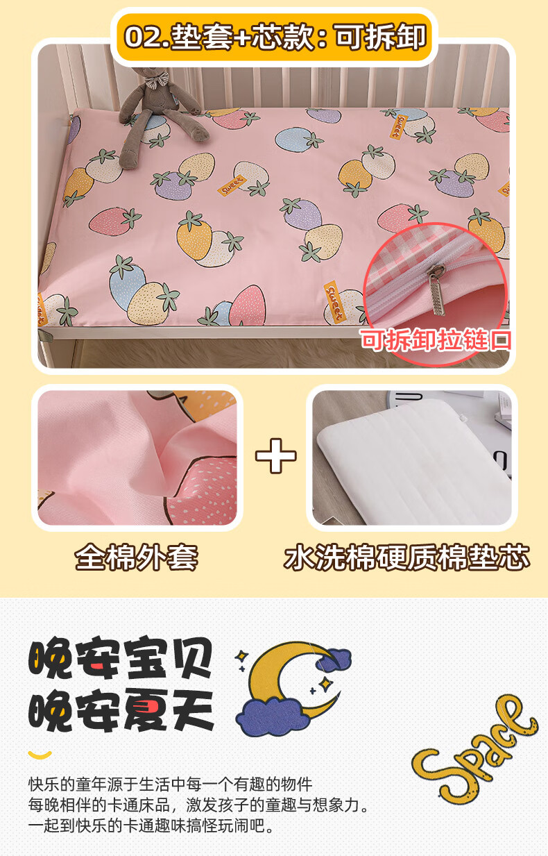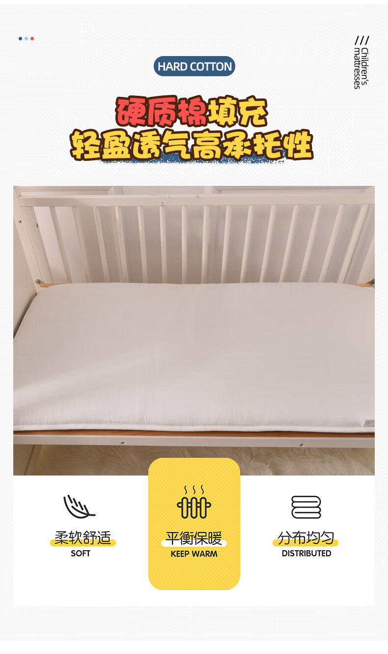 Removable and washable 100% cotton kindergarten children's thickened mattress baby nap crib tatami mat quilt mattress mattress Xinghai baby-removable model 100% cotton filling width 60x length 120 recommended size for kindergarten