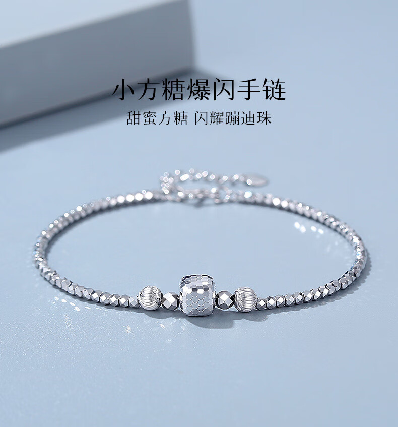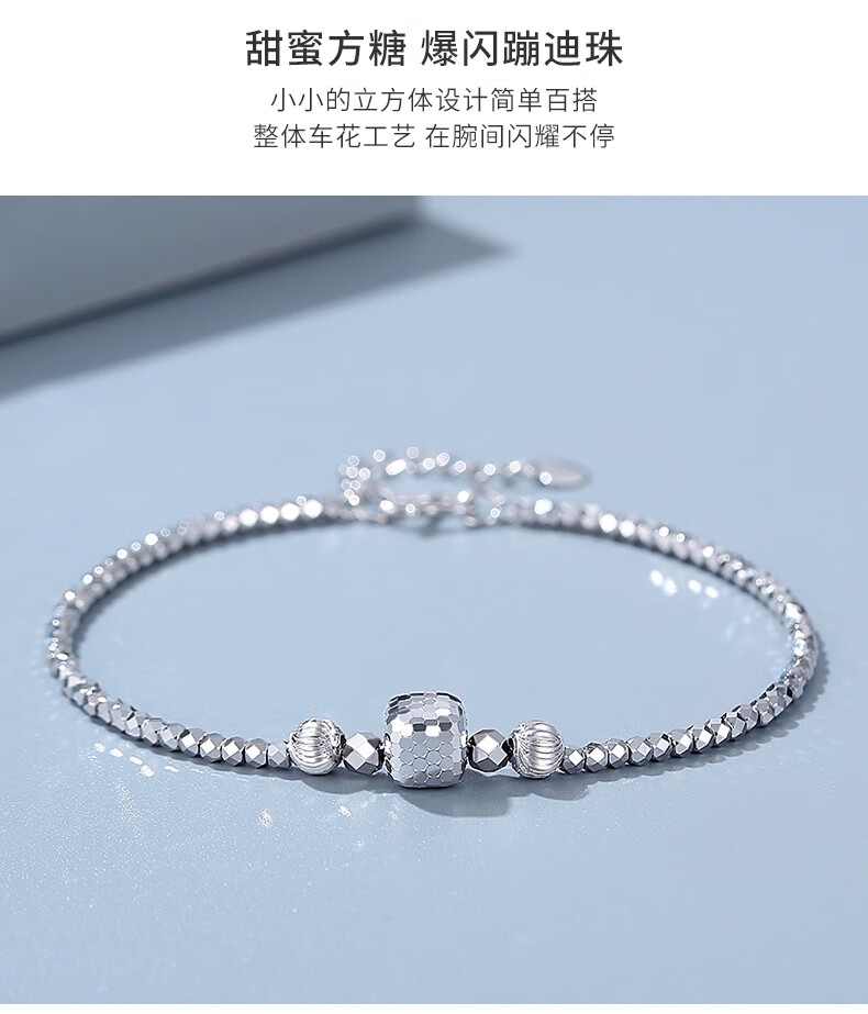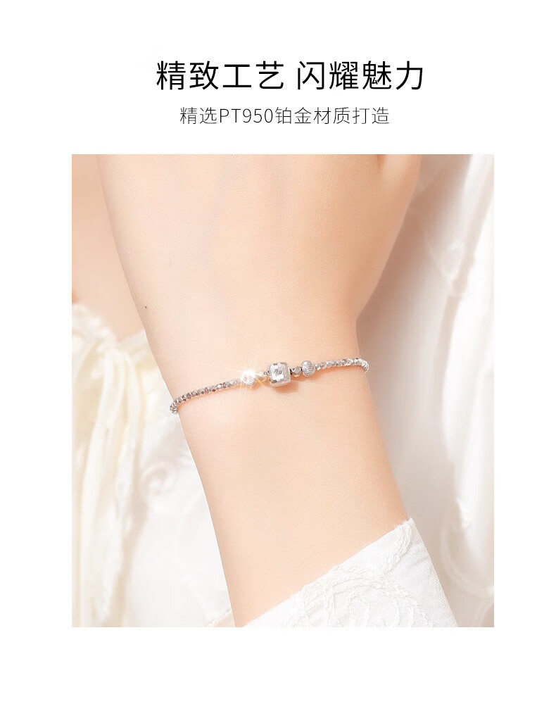 TTMIX fashion honeycomb platinum bracelet pt950 platinum bracelet shiny bouncy bead bracelet birthday gift 4.9-5.1g 16+2cm thick 2.0mm