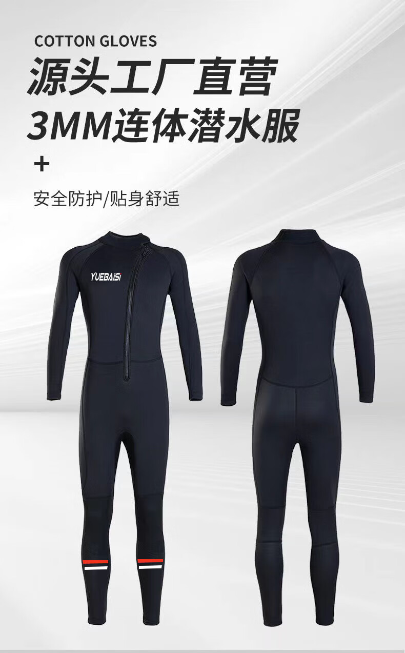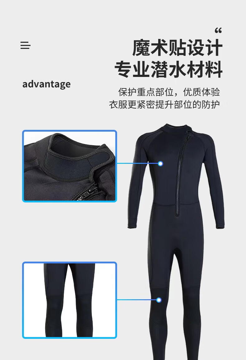 Big Tuan Xiaoyuan 3MM one-piece wetsuit with front zipper to keep warm, cold-proof and scratch-proof, autumn and winter swimming, deep diving, surfing and diving upgrade 3MM black front zipper, 3XL size (164-176Jin Jin is equal to 0.5kg)