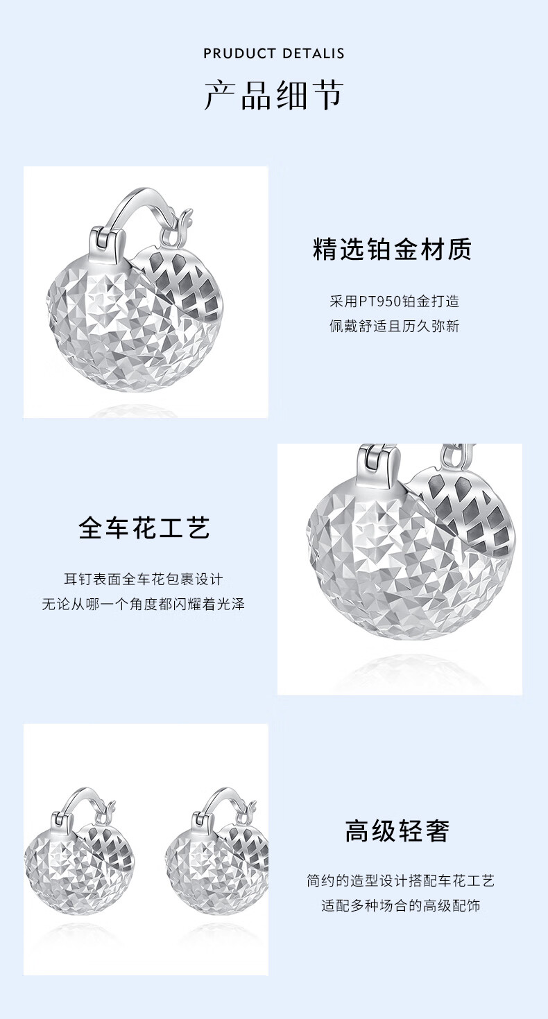 TTMIX shiny pine cone earrings platinum earrings pt950 platinum earrings women's platinum earrings birthday gift 6.3-6.5g,