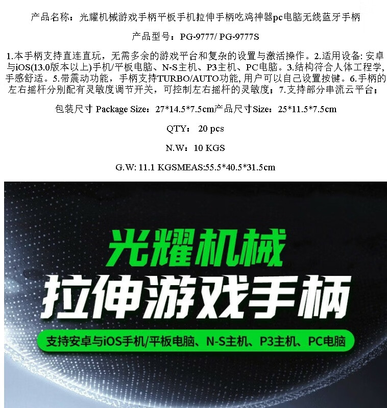Qinluo Guangyao Mechanical Game Controller Tablet Phone Stretch Controller Eating Chicken Artifact PC Computer Wireless Bluetooth 9777S Main Picture Model Only Supports Android Phones