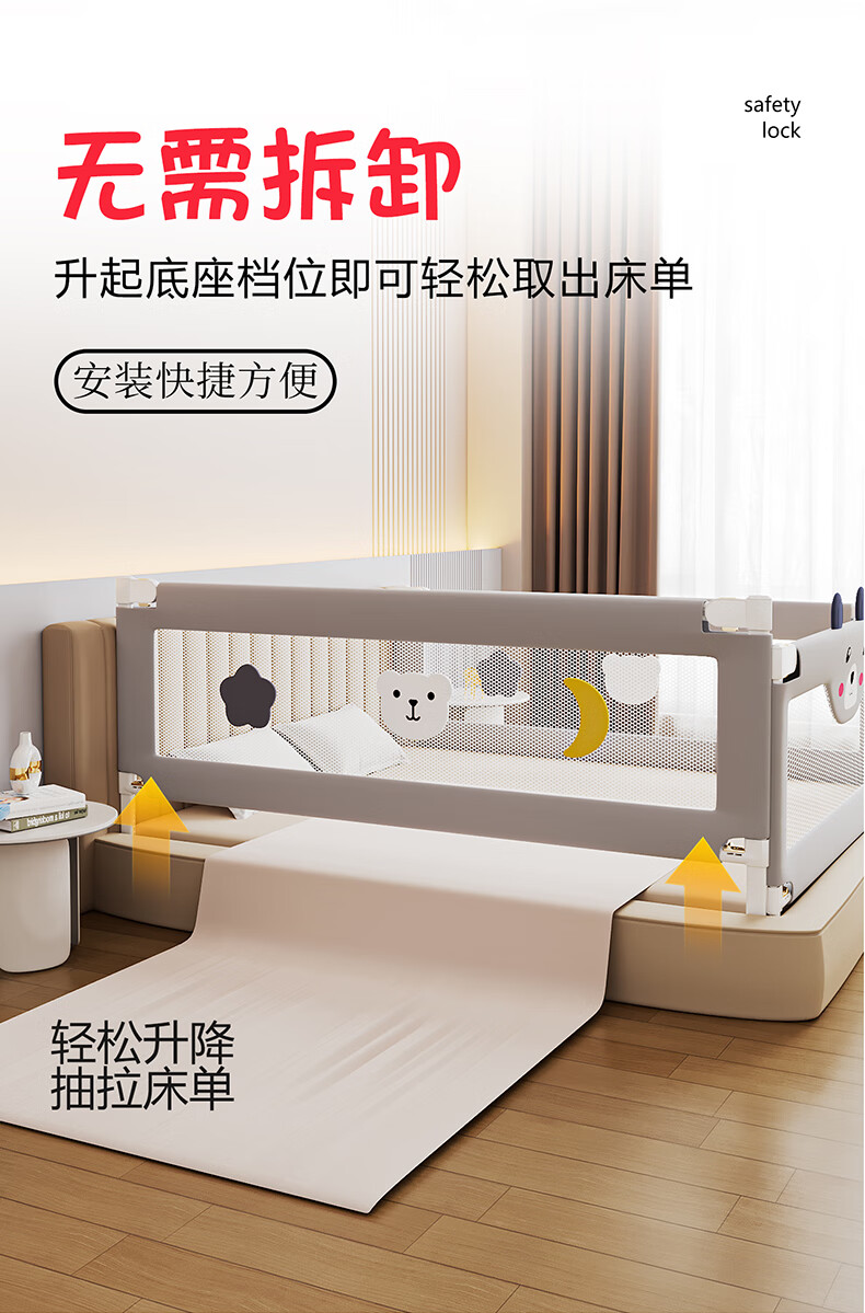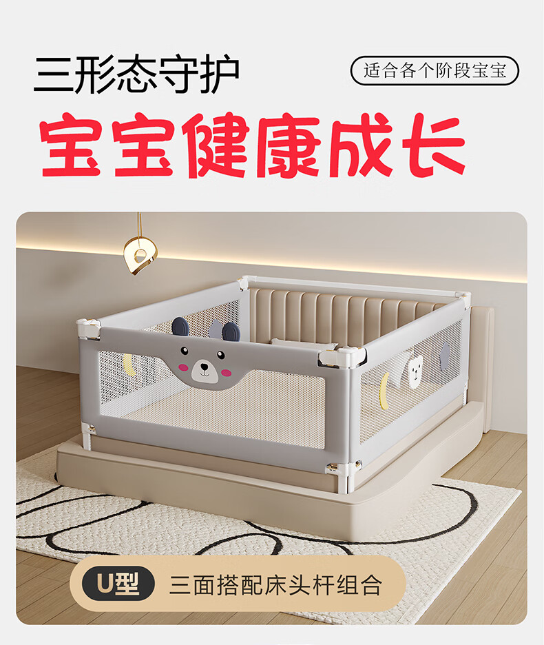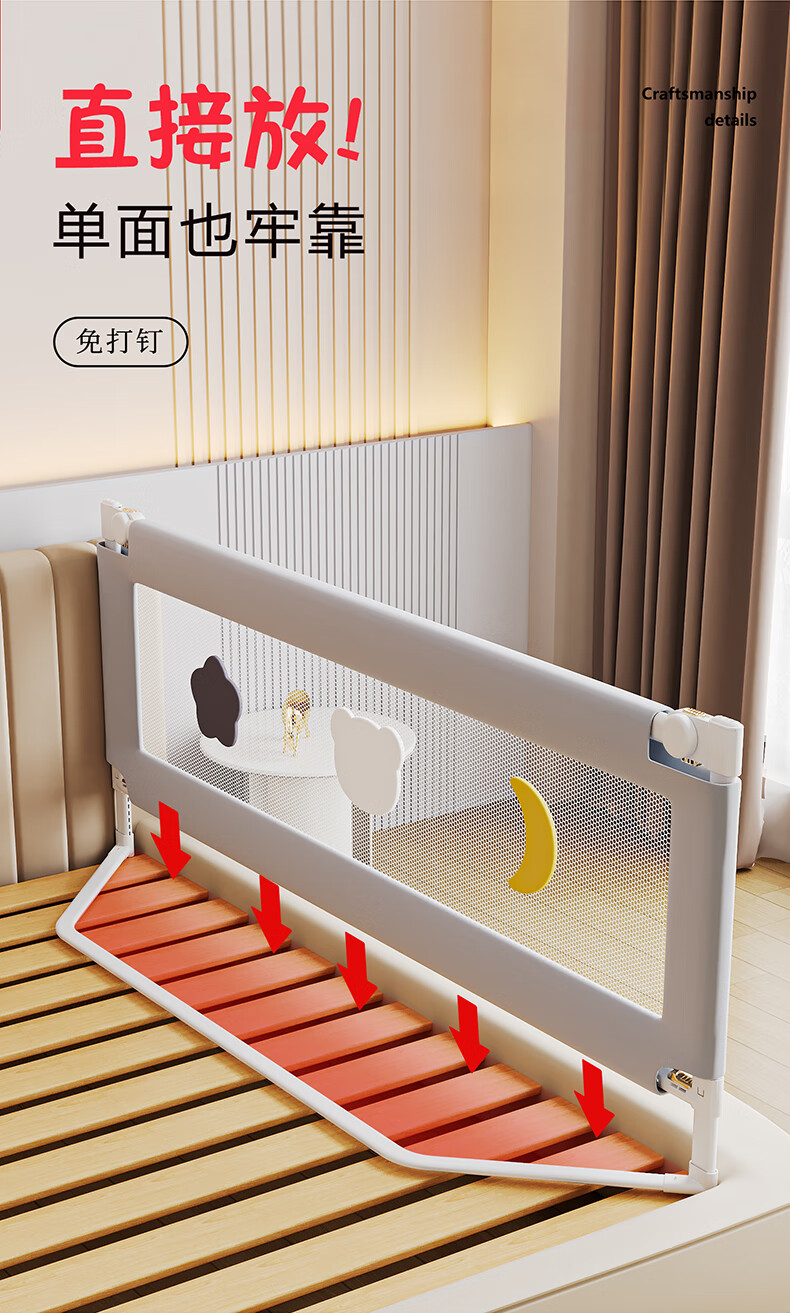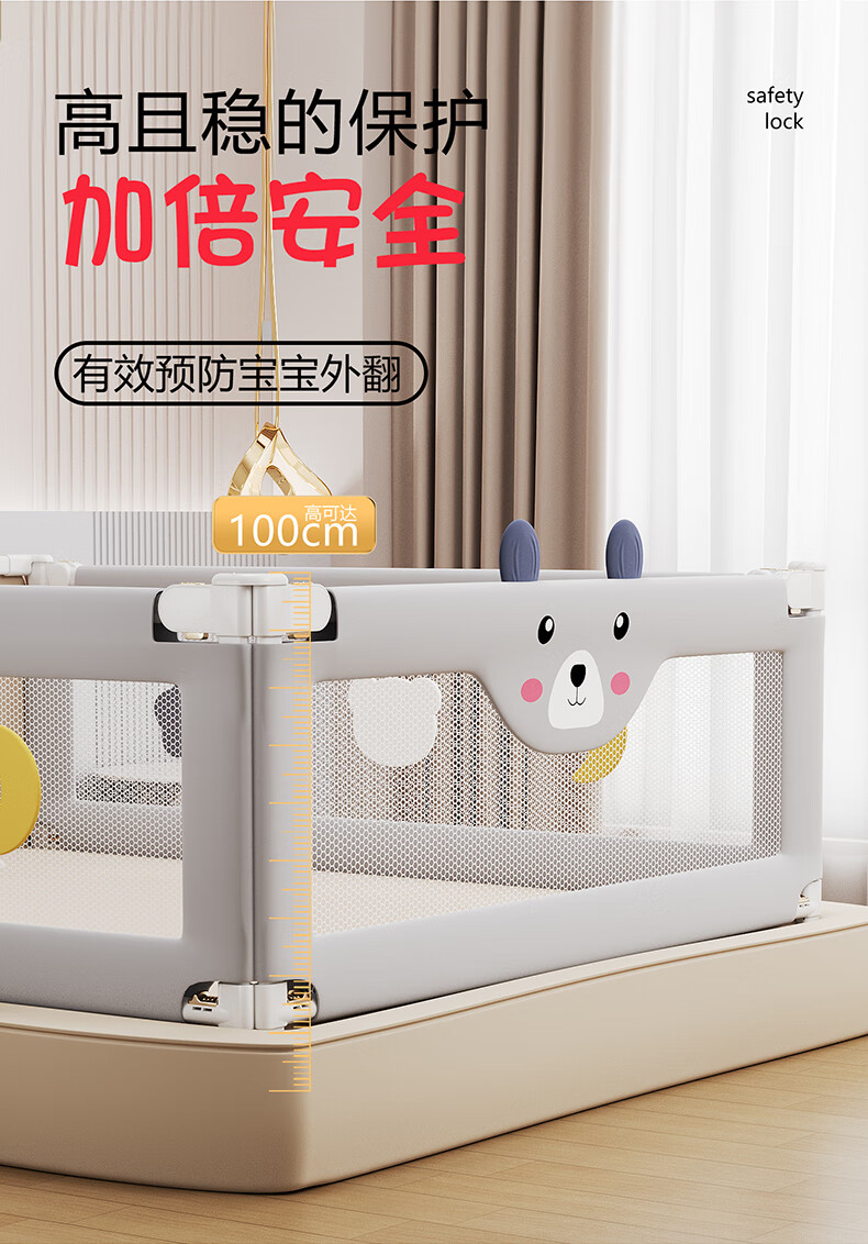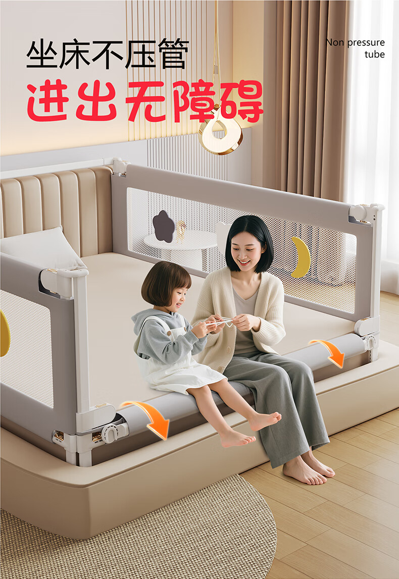 Xiyoumi bed fence guardrail bed anti-fall bed fence safety no punching baby bedside baby baffle three-sided installation 1.8+2+2 meters comes with bedside pole + U-shaped no punching