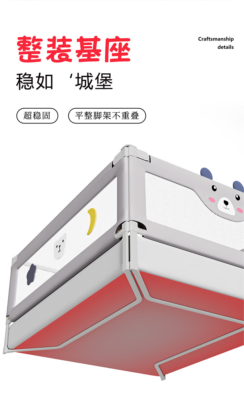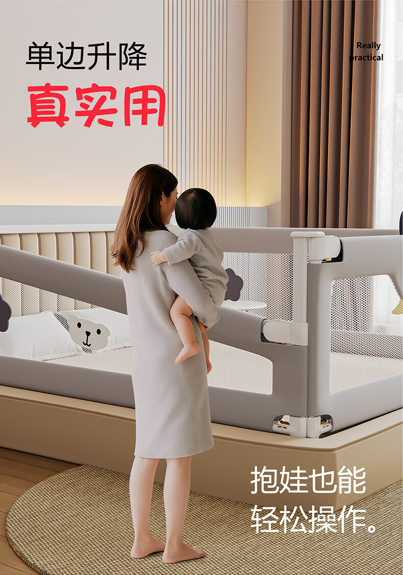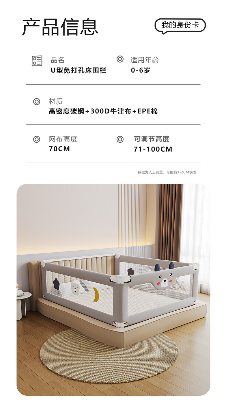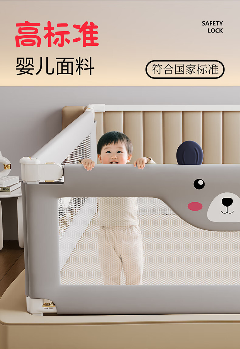 Xiyoumi bed fence guardrail bed anti-fall bed fence safety no punching baby bedside baby baffle three-sided installation 1.8+2+2 meters comes with bedside pole + U-shaped no punching